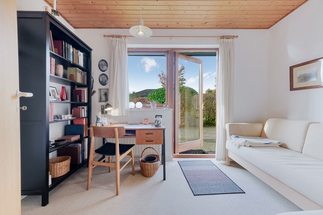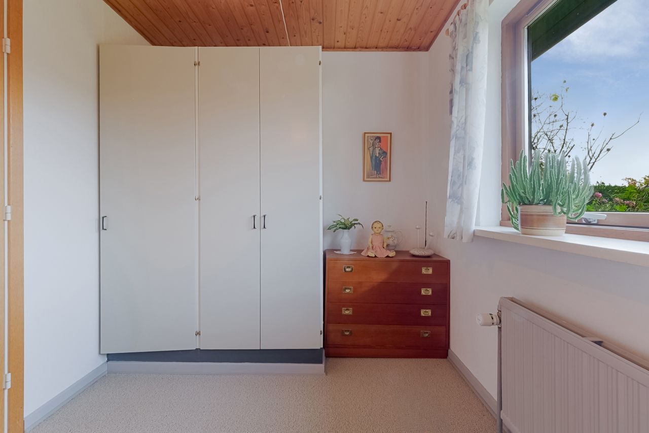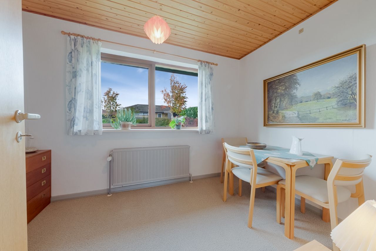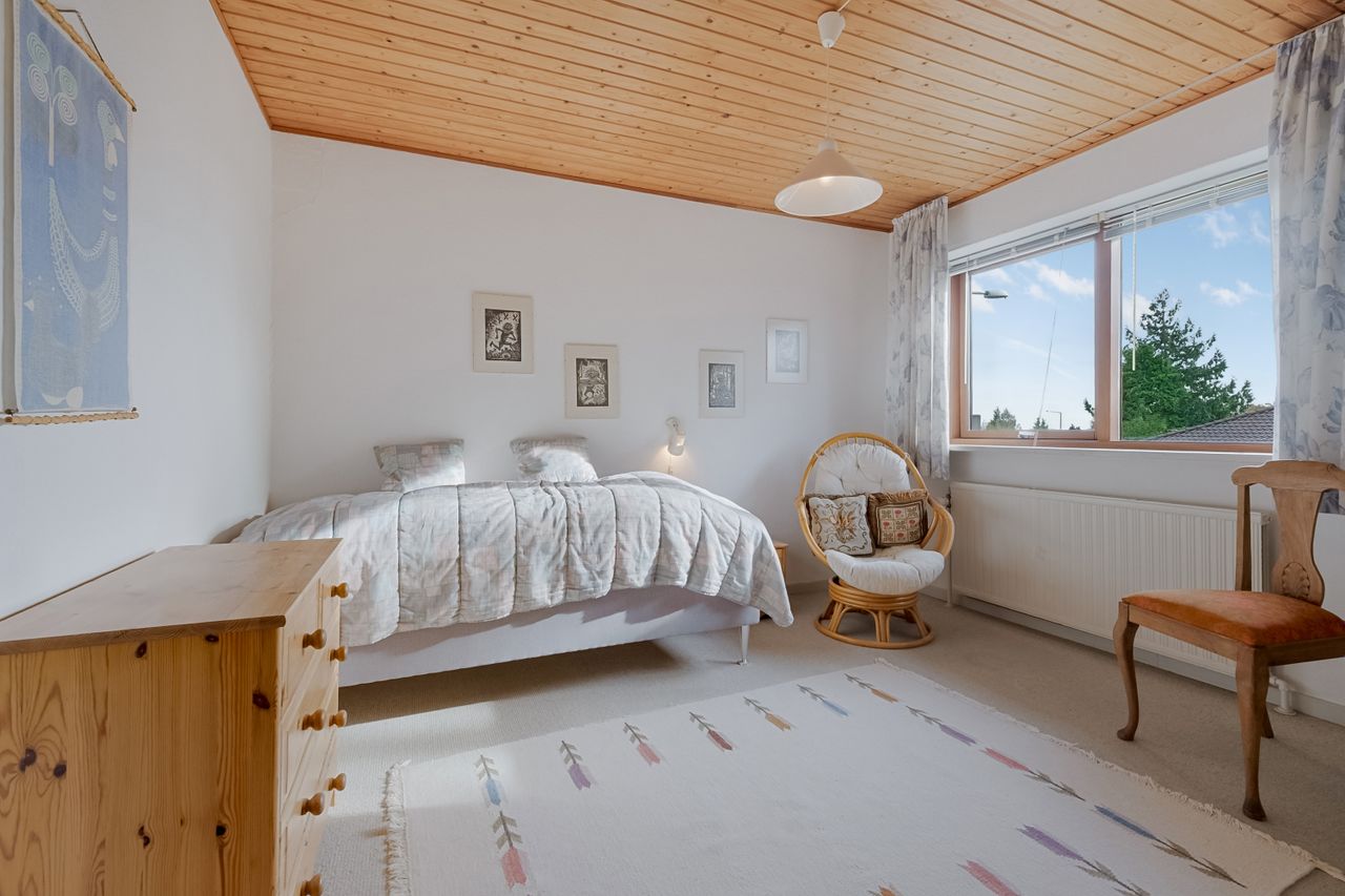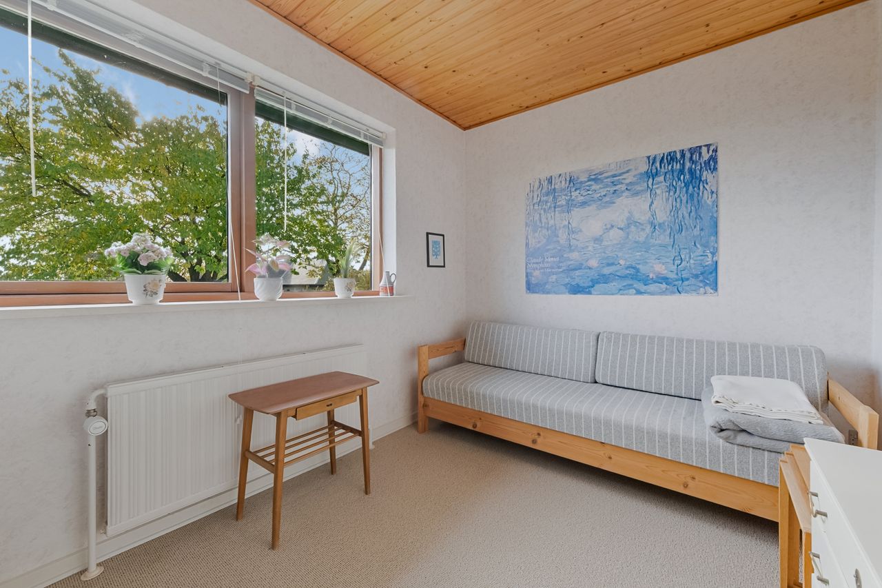 Værelser og soveværelser fremstår lyse og indbydende med gulvtæppe, der giver en hjemlig og hyggelig stemning. Alle rum er gode i størrelsen og kan fungere som soveværelse, kontor eller børneværelse. Ét af værelserne har desuden direkte udgang til terrassen.