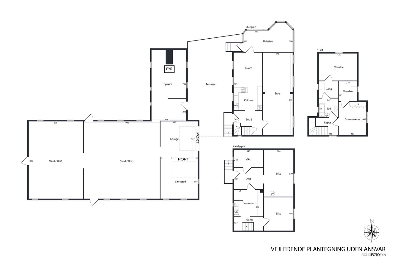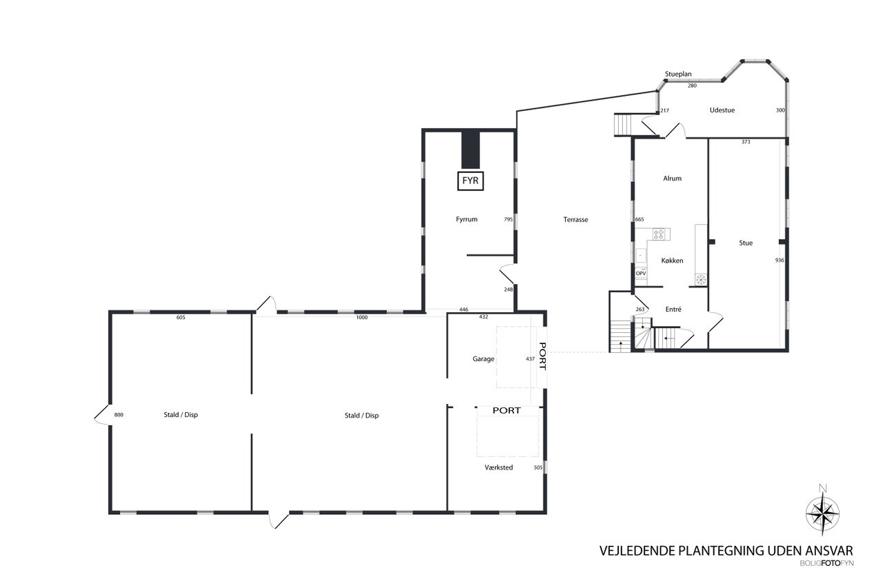 Til ejendommen hører desuden flere gode udhuse/staldbygninger, der bl.a. rummer garage, værksted og flere disponible rum – ideelt til både opbevaring, hobbyprojekter eller små dyrehold.