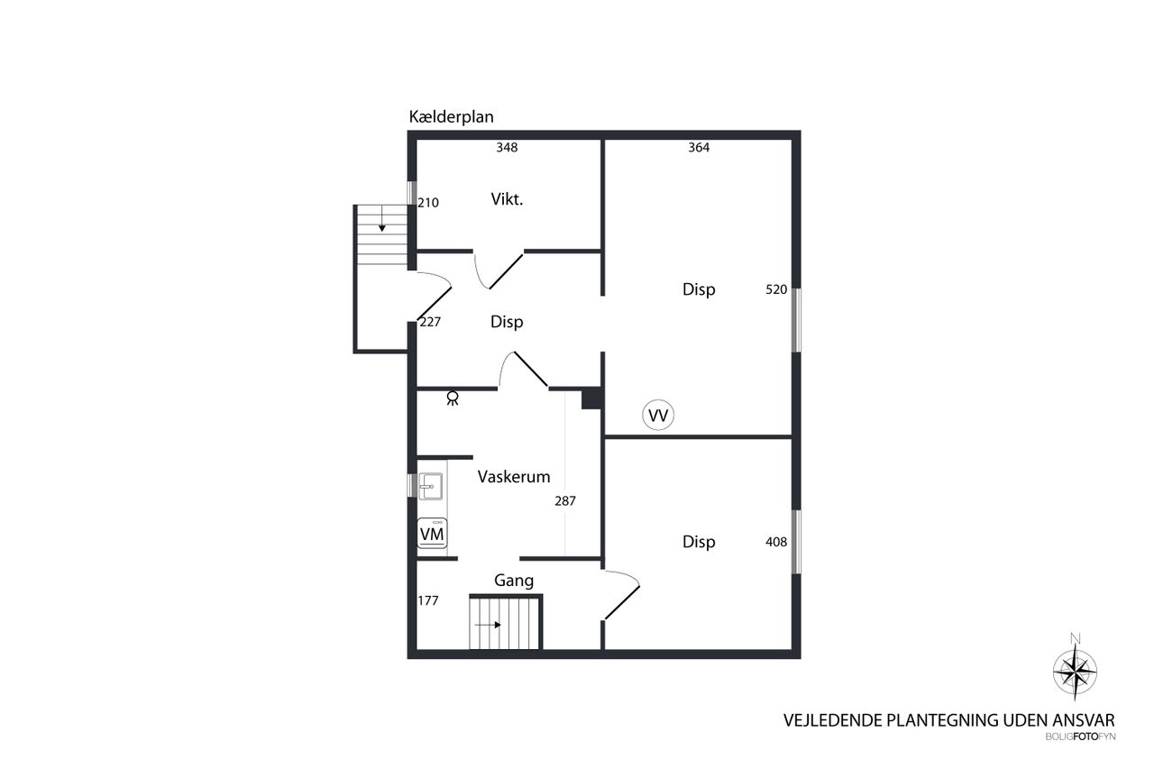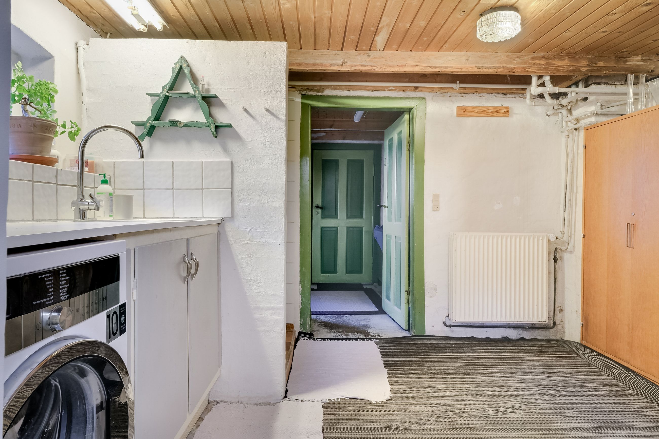 Kælderen rummer tre disponible rum, et viktualierum og et vaskerum – oplagt til både opbevaring, hobby eller praktiske funktioner.