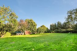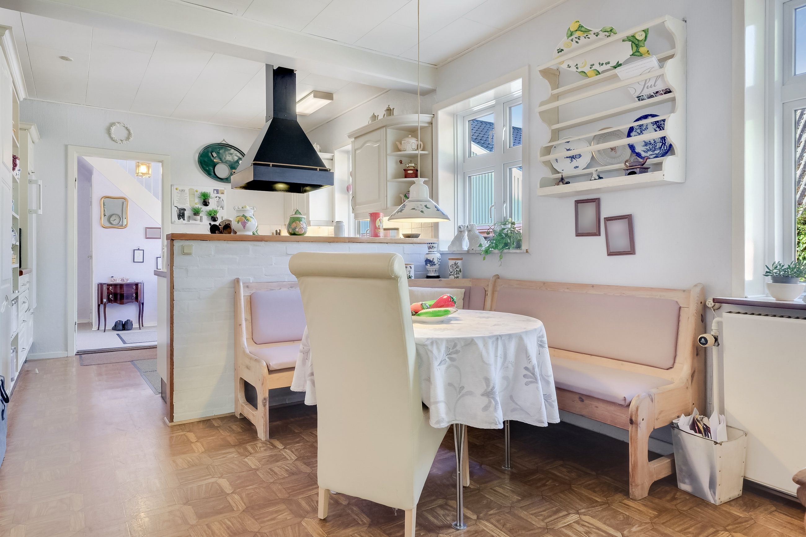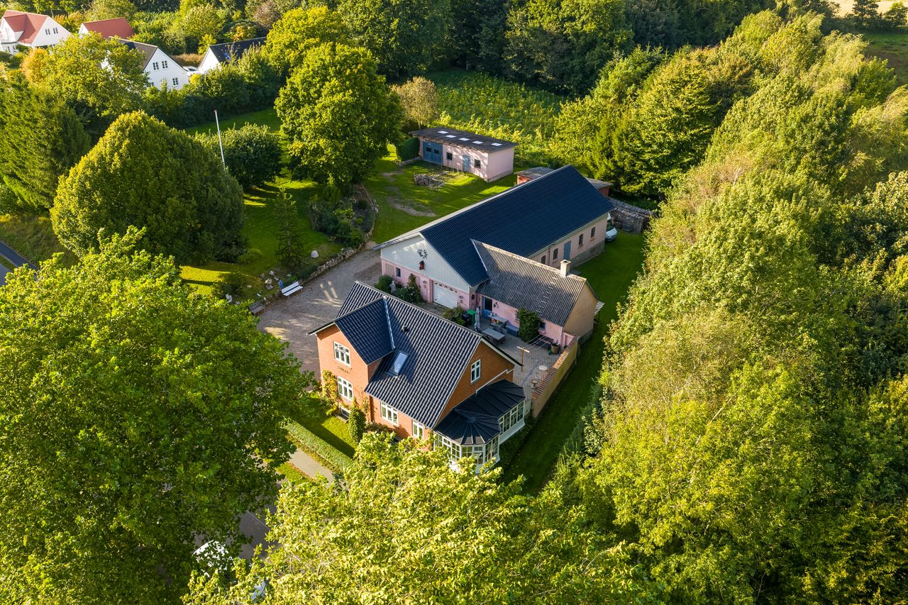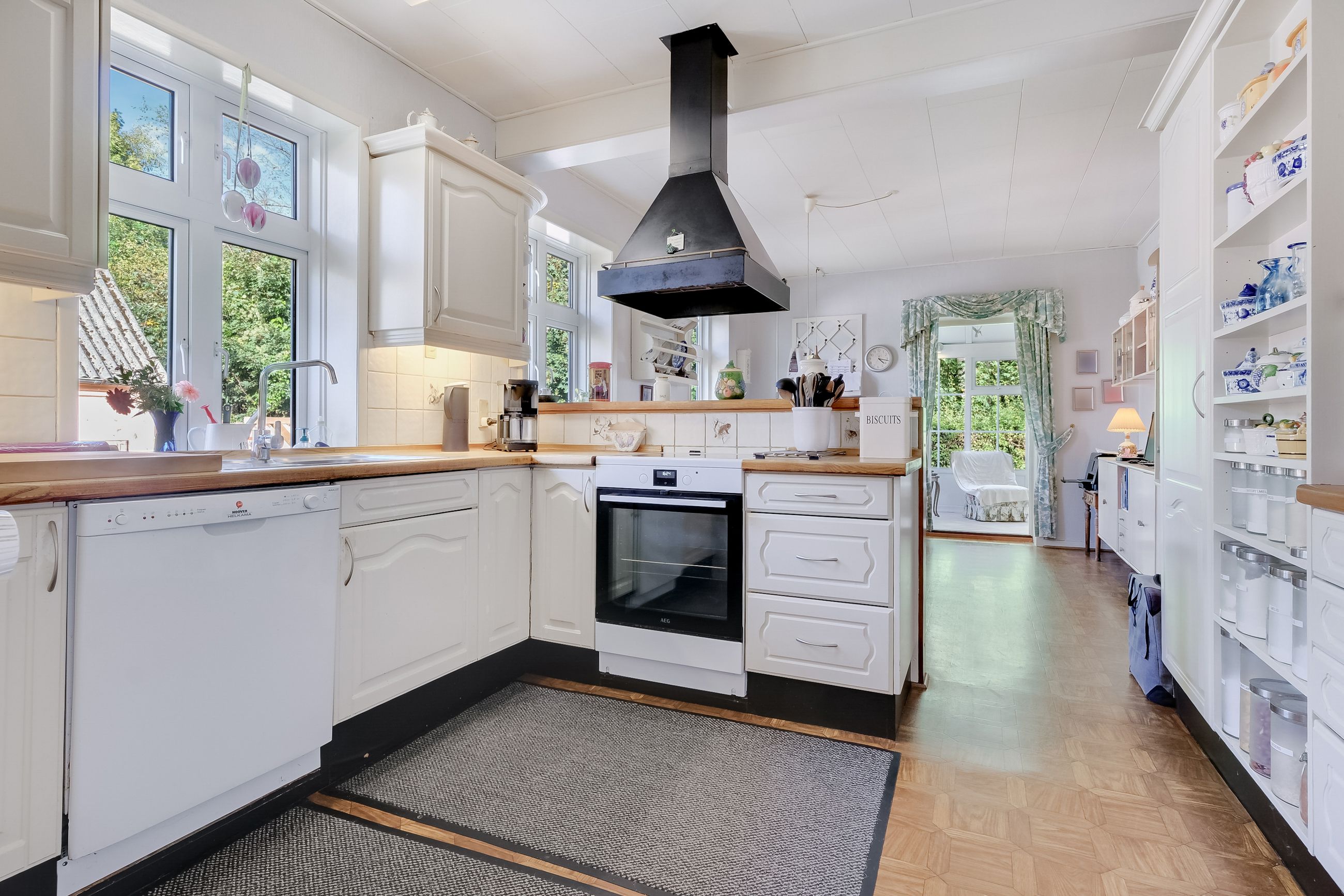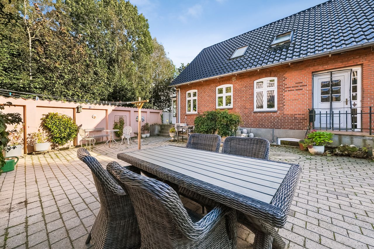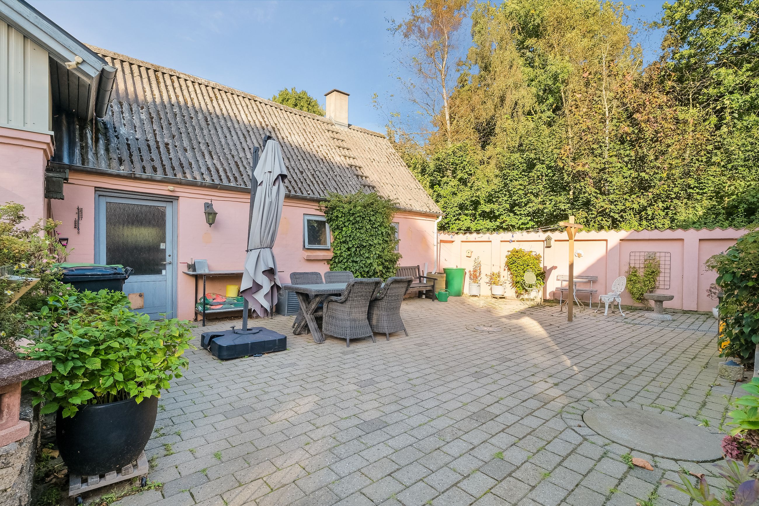 Fra udestuen kan du fortsætte direkte ud i haven, hvor et stemningsfuldt gårdhavemiljø kan danne rammen om hyggelige måltider og rolige stunder. Grunden på omtrent én tønde land byder på græsarealer, områder med vilde blomster, gamle træer, buske, frugttræer og små kroge, hvor du kan nyde solen eller finde skygge.