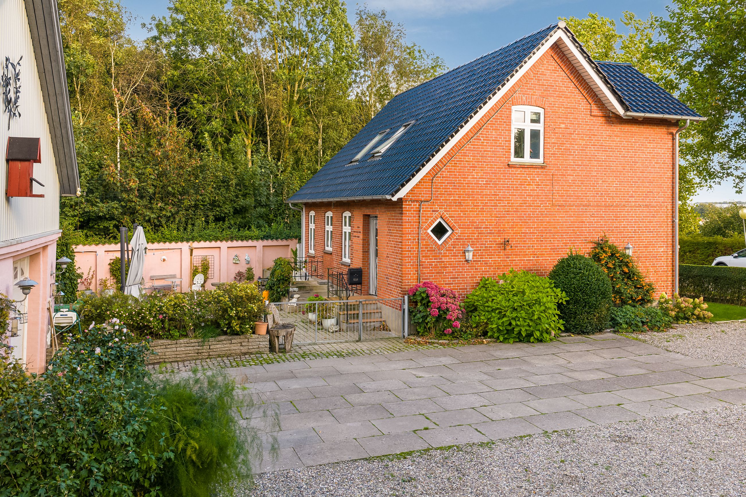 Allerede udefra fornemmer du husets charme. Den rødstensvilla, der møder dig, prydes af en elegant forhave, som emmer af hygge og byder dig varmt velkommen.