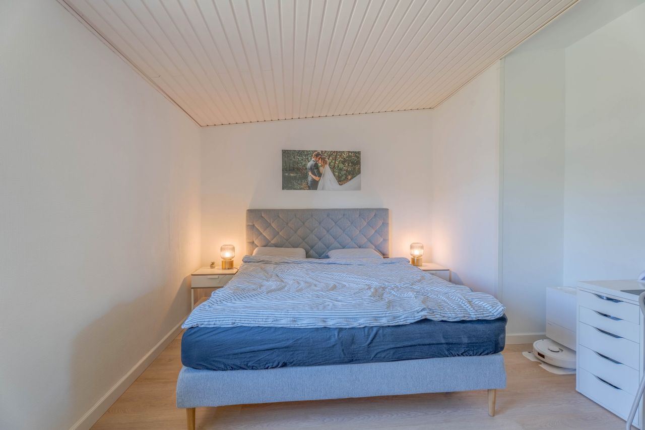 Den flotte villa, byder på 148 veldisponerede boligkvadratmeter, i et plan og er opført i 1961 med tilbygning fra 1971. I 2022 gennemgik boligen en omfattende renovering, hvor blandt andet elinstallationer, vinduer, døre, køkken og lofter i størstedelen af huset blev fornyet. I 2022 blev der desuden lagt parketgulv i stuen, samt et mindre stykke ind mod køkkenet, mens der i 2024 blev lagt vinyl klikgulv i størstedelen af den øvrige del af boligen. Resultatet er en moderne og indflytningsklar bolig med en gennemtænkt planløsning og et behageligt lysindfald.