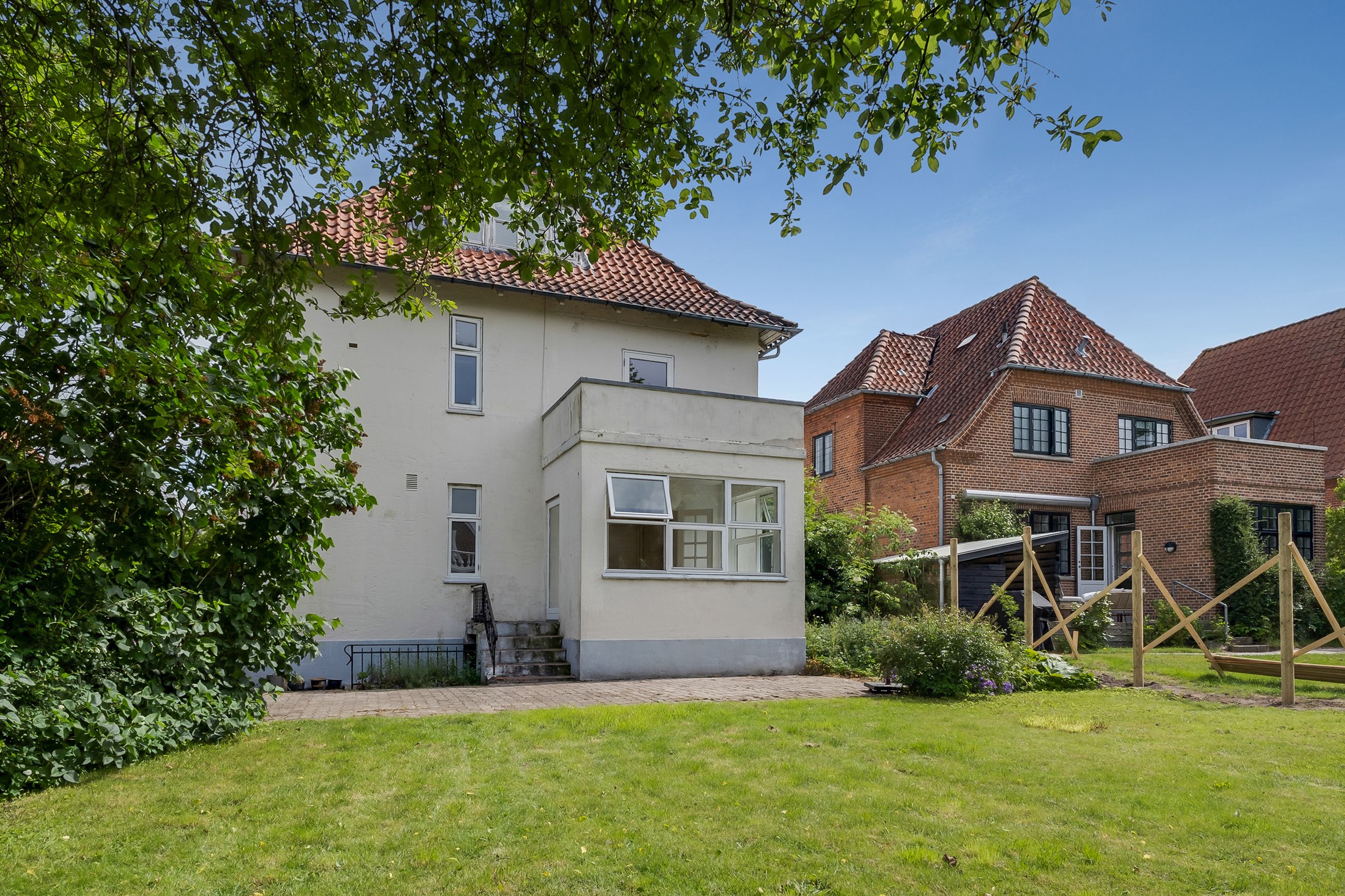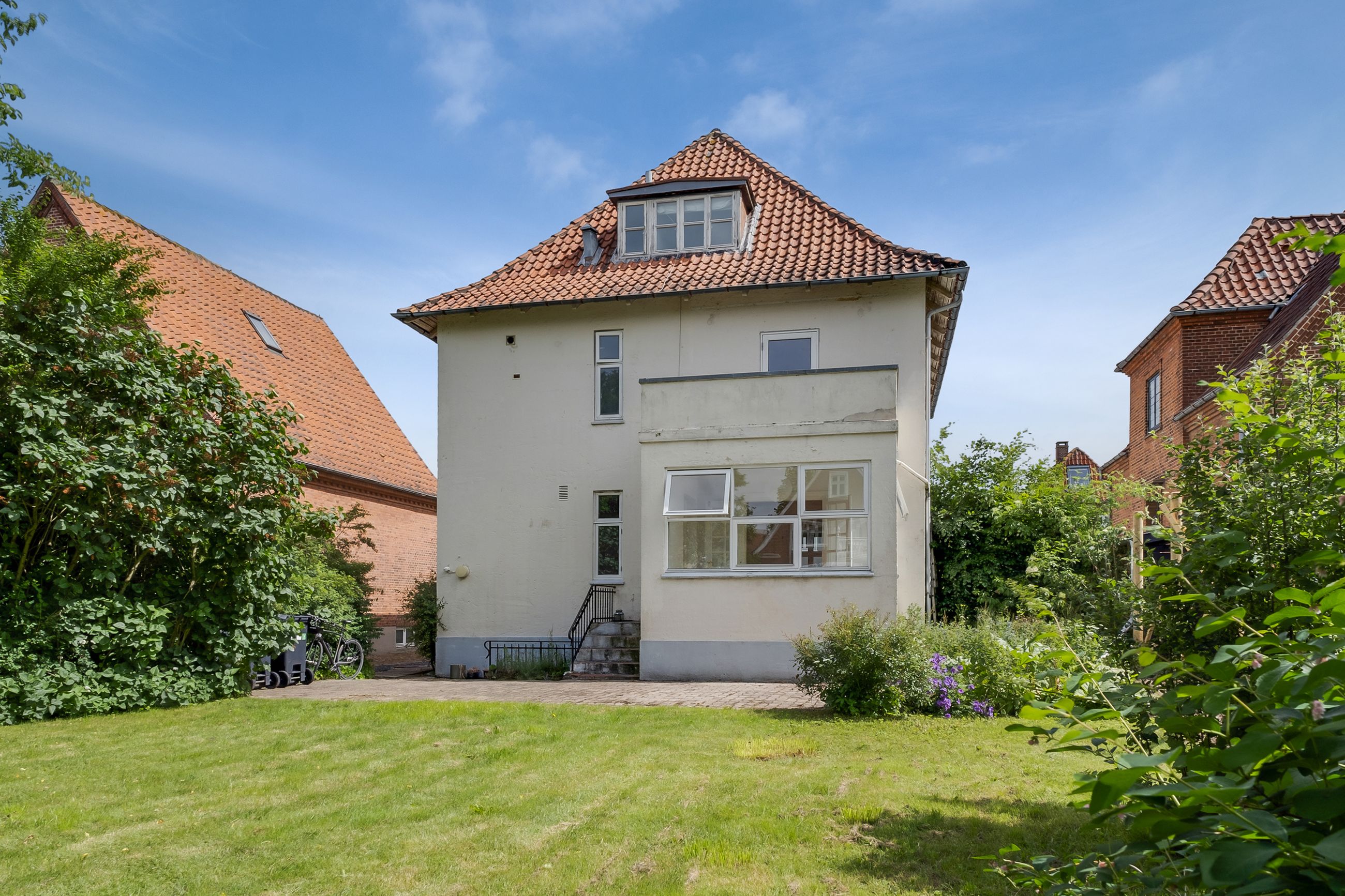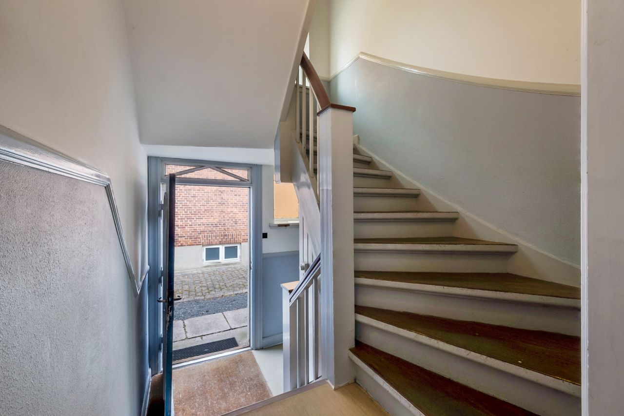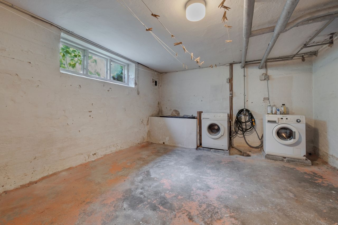 Der er en fælles kælder med eget kælderrum og et fælles vaskerum. I den grønne fælleshave finder du en stenterrasse og en dejlig græsplæne med plads til afslapning eller leg. På anden sal er der også et værelse som hører til lejligheden, samt fælles badeværelse og toilet.