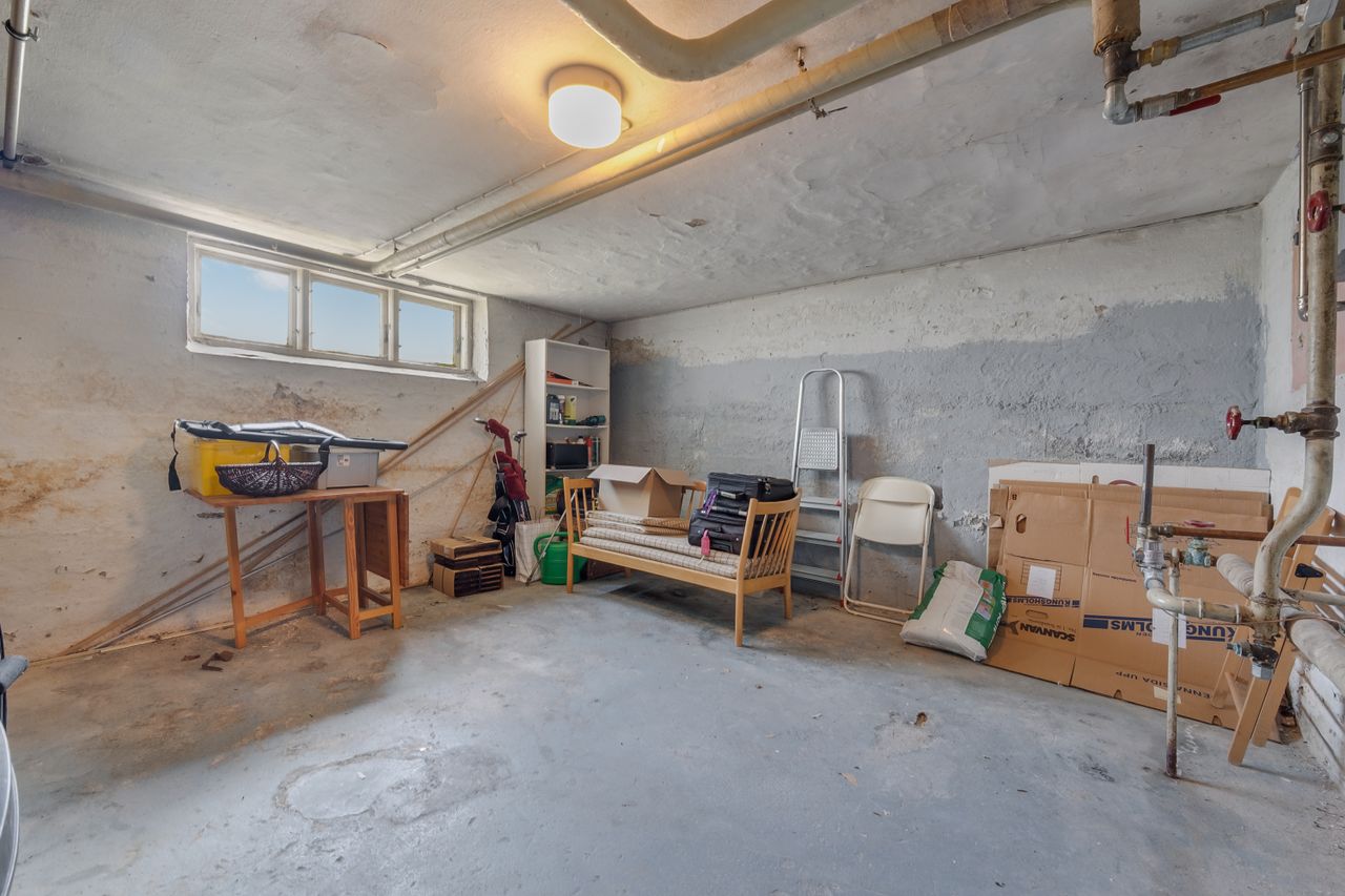 Der er en fælles kælder med eget kælderrum og et fælles vaskerum, og i den grønne fælleshave finder