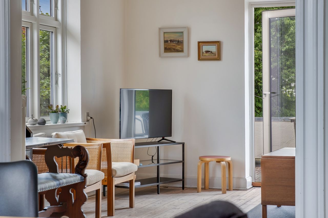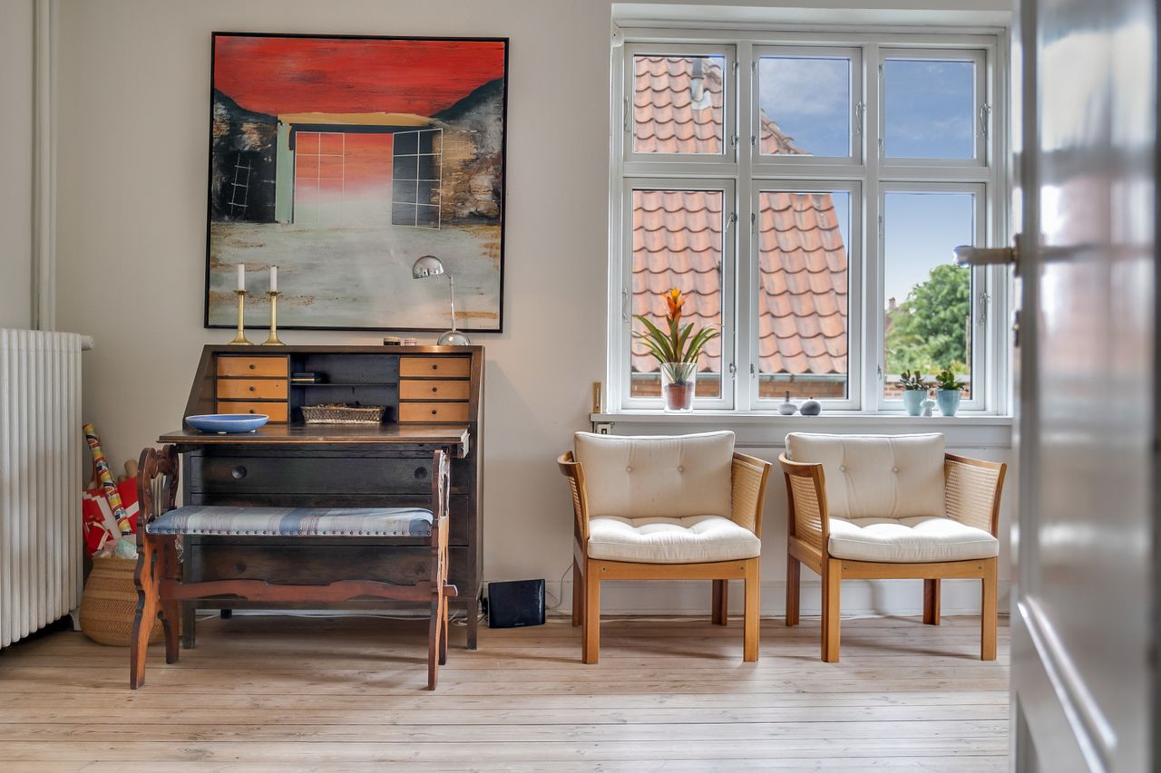 De to stuer en suite byder på et dejligt lysindfald takket være de store vinduer på alle ydervæggene. De