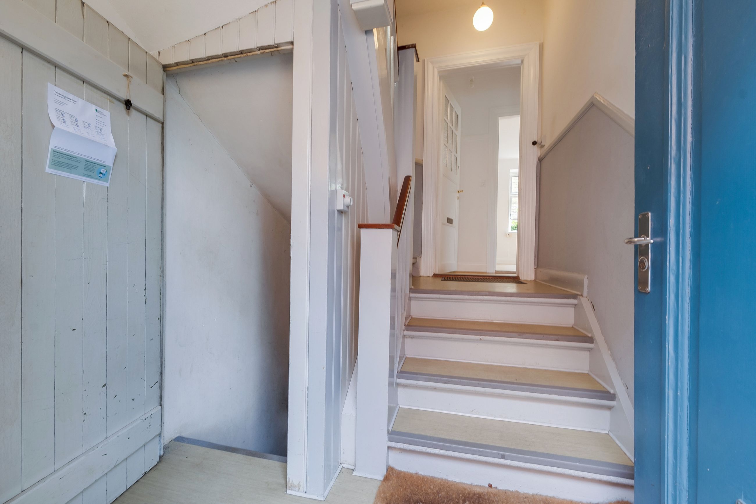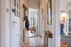 træder ind i lejligheden på 1. sal, mødes du af en fordelingsgang med plads til overtøj. Mod højre finder