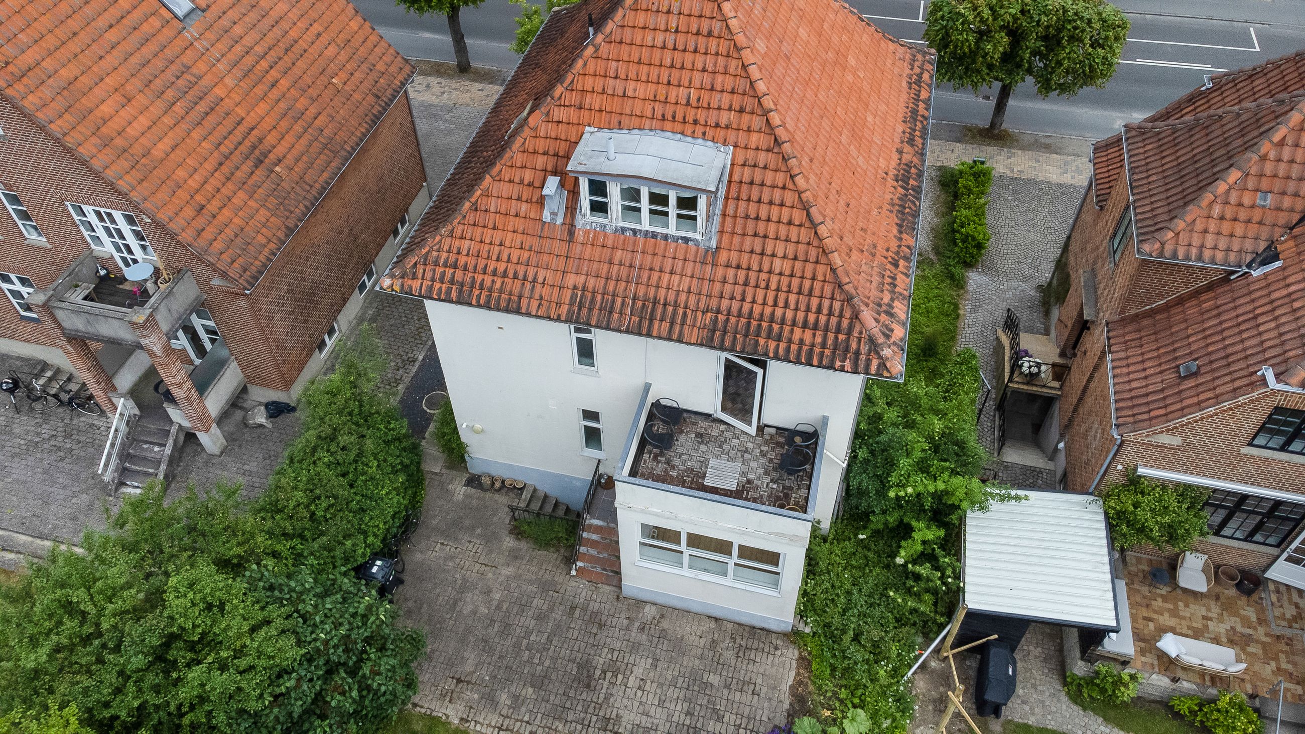 Der er en unik mulighed for at erhverve sig hele ejendommen, da begge villalejligheder er til salg. Her får