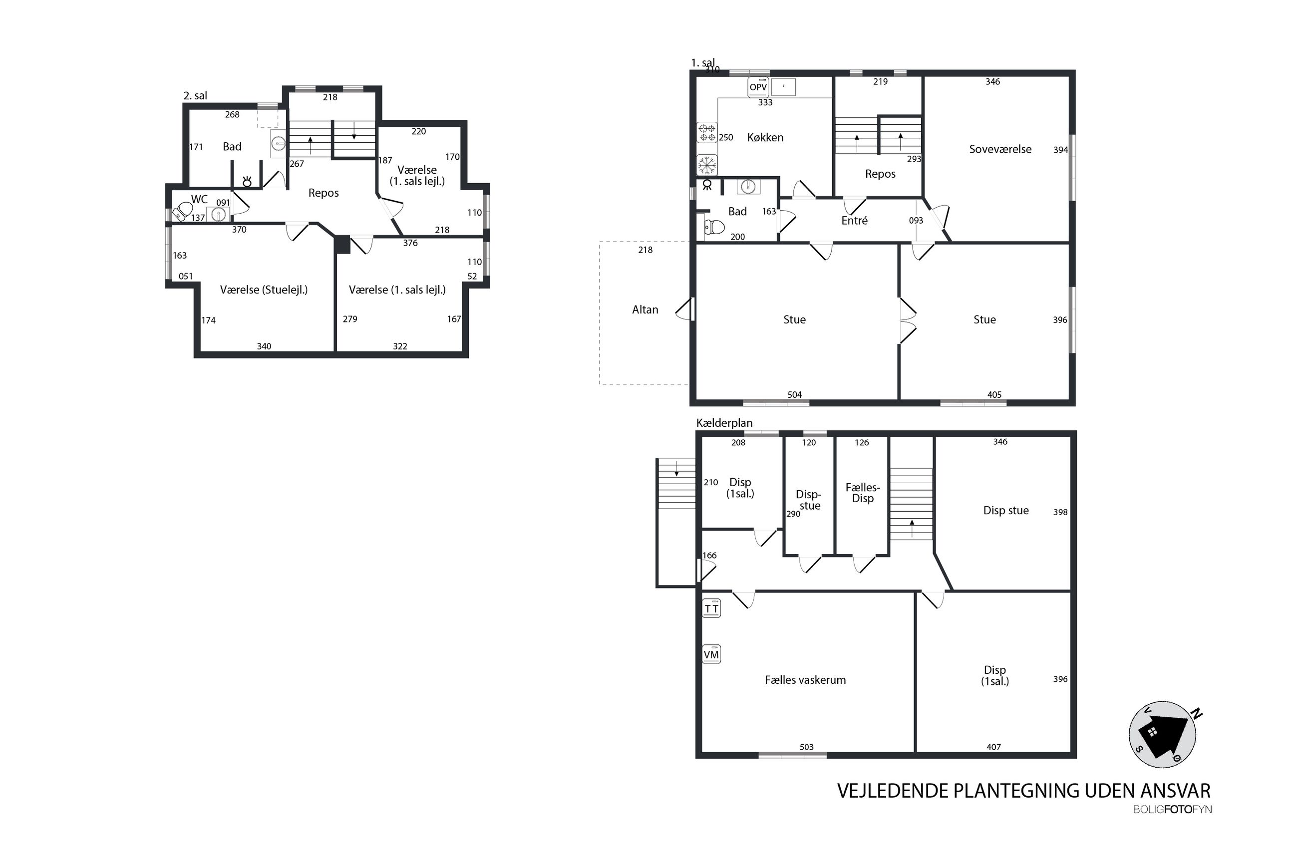 værelser som hører til lejligheden samt fælles badeværelse og toilet.
