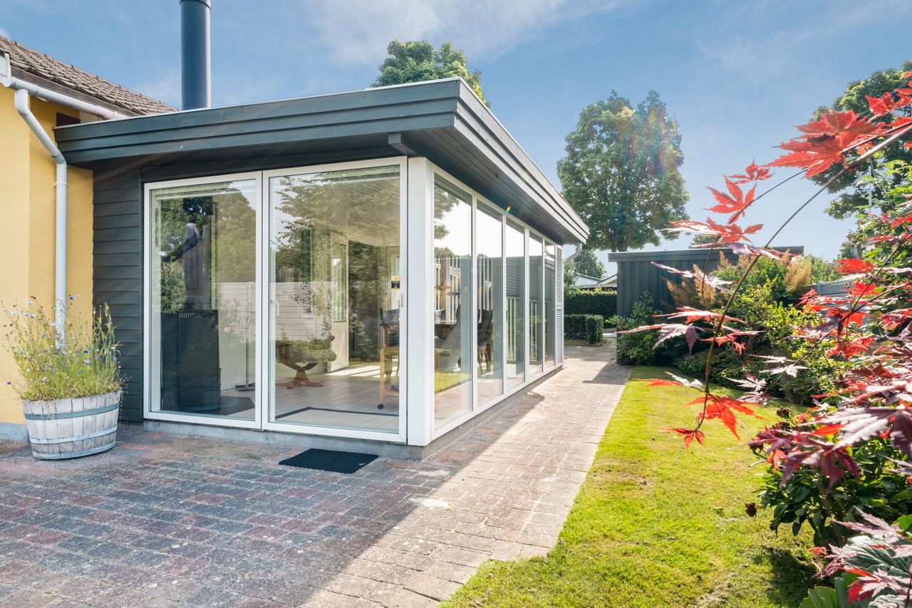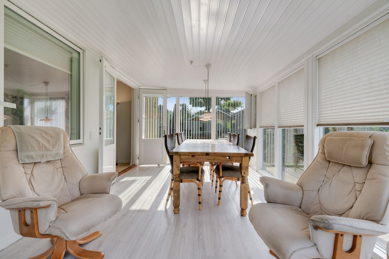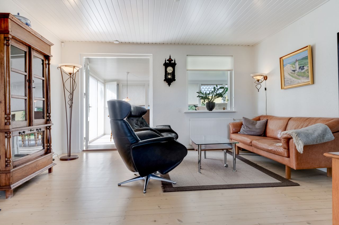 Her får du en indflytningsklar villa med god plads, fleksibel indretning og en udestue, der føles som en ekstra stue – perfekt til dig, der ønsker fredelige omgivelser tæt på byens liv.