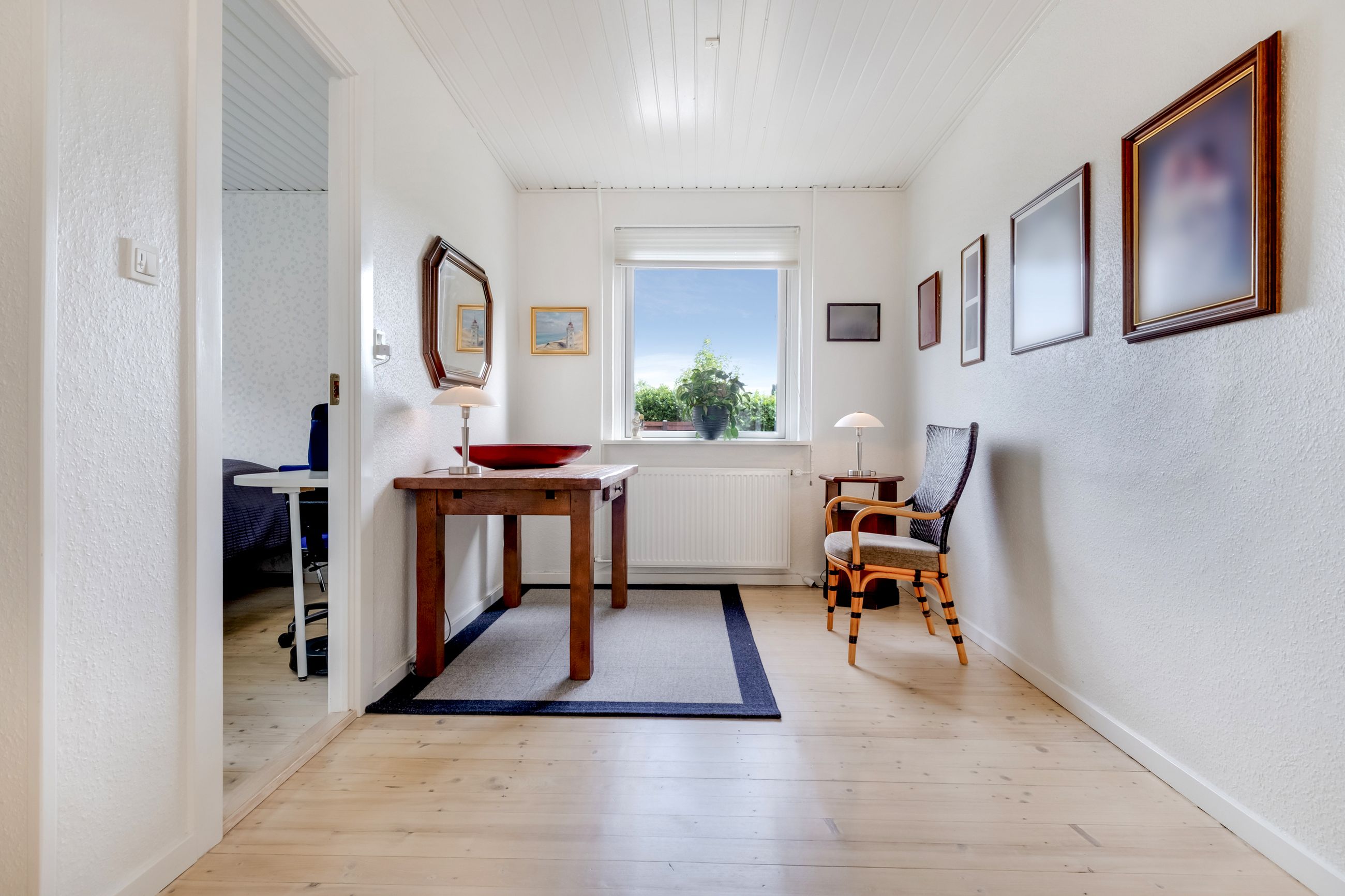 Fra stuen er der adgang til yderligere to værelser. Det ene værelse har indbyggede skabe og begge har en god størrelse.