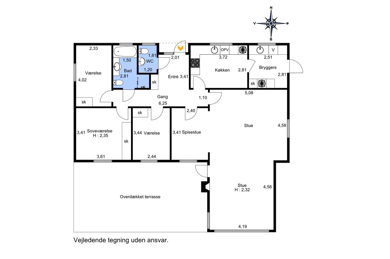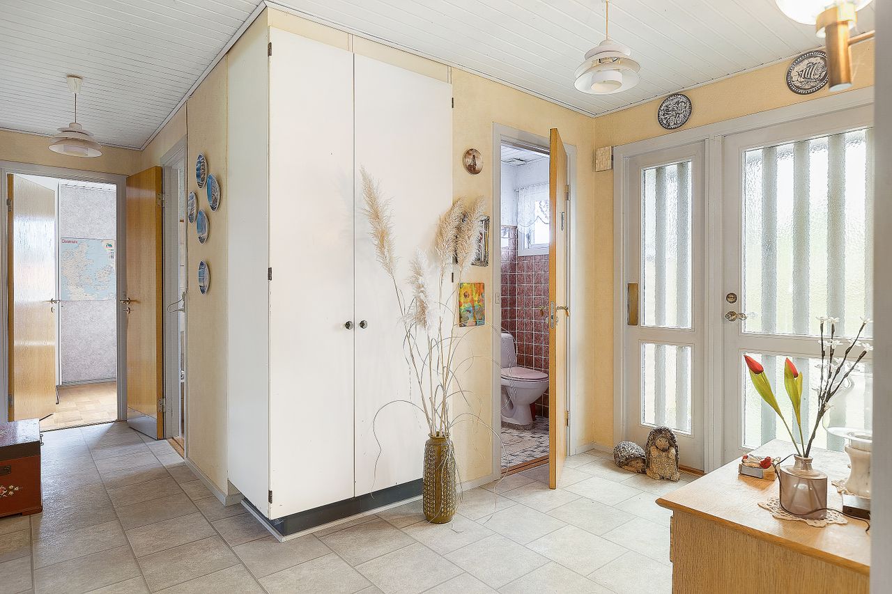 Planløsningen er særdeles funktionel med 3 gode og regulære værelser, et badeværelse, et separat gæstetoilet, et rummeligt bryggers og en bred fordelingsgang, der binder hjemmet flot sammen.