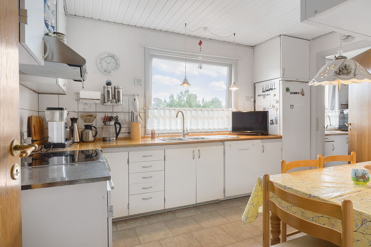Fra indkørslen kan du nemt hoppe ind med dine vare, da bryggers er gennemgangen ind til køkkenet. Her bor du kun 300 meter fra vandet, med stisystemer, natur og gode indkøbsmuligheder inden for kort afstand. En ideel bolig til familien, der ønsker både plads, tryghed og mulighed for at forme deres næste hjem. Boligen ligger også tæt på den lokale skole.