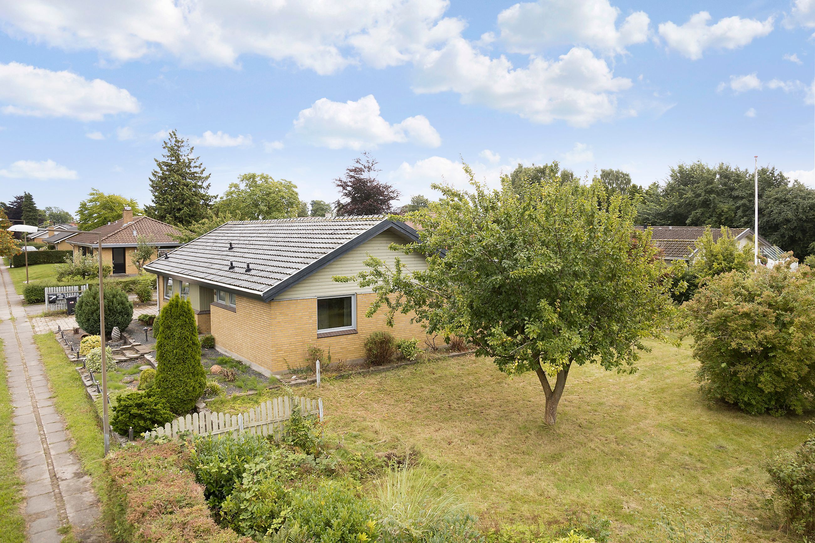 Velkommen til Grønningen 2 – en sjældent udbudt 70’er-villa i ét plan, placeret på en attraktiv hjørnegrund på hele 1.147 m2 i et fredeligt og eftertragtet kvarter i Munkebo.
