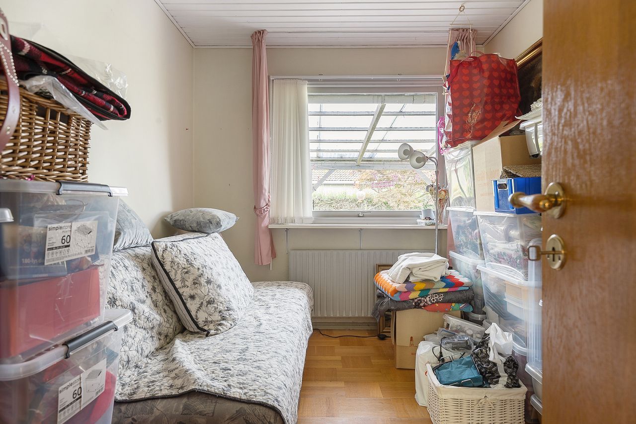 Huset rummer 136 m2 og byder på en stor, lys stue med skønt kig til haven og mulighed for at åbne ind mod køkkenet og skabe et moderne køkken-alrum. Man har også mulighed for at lave et værelse mere inde i stuen.