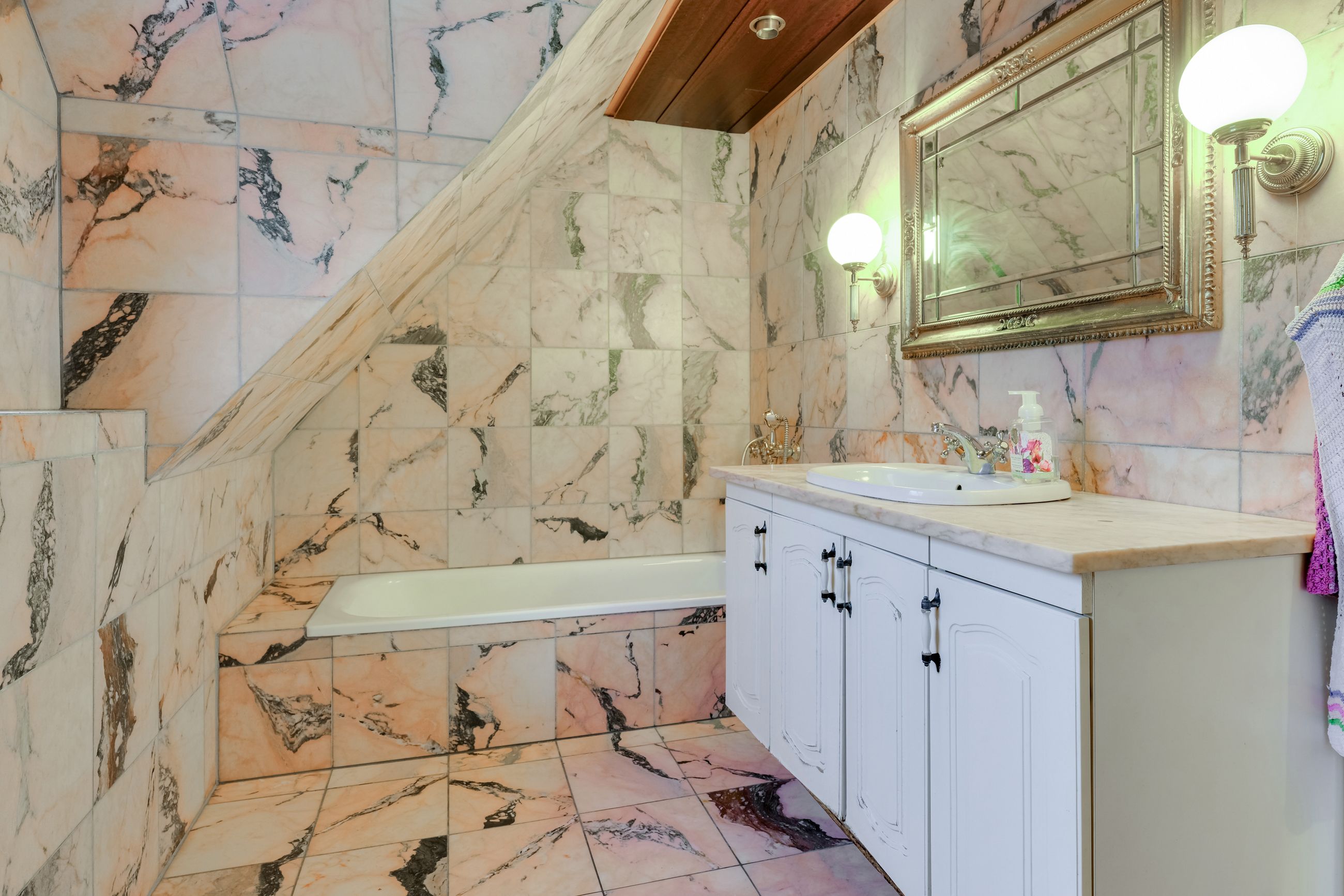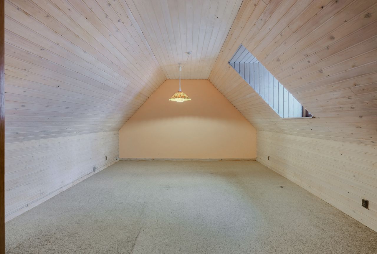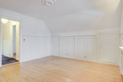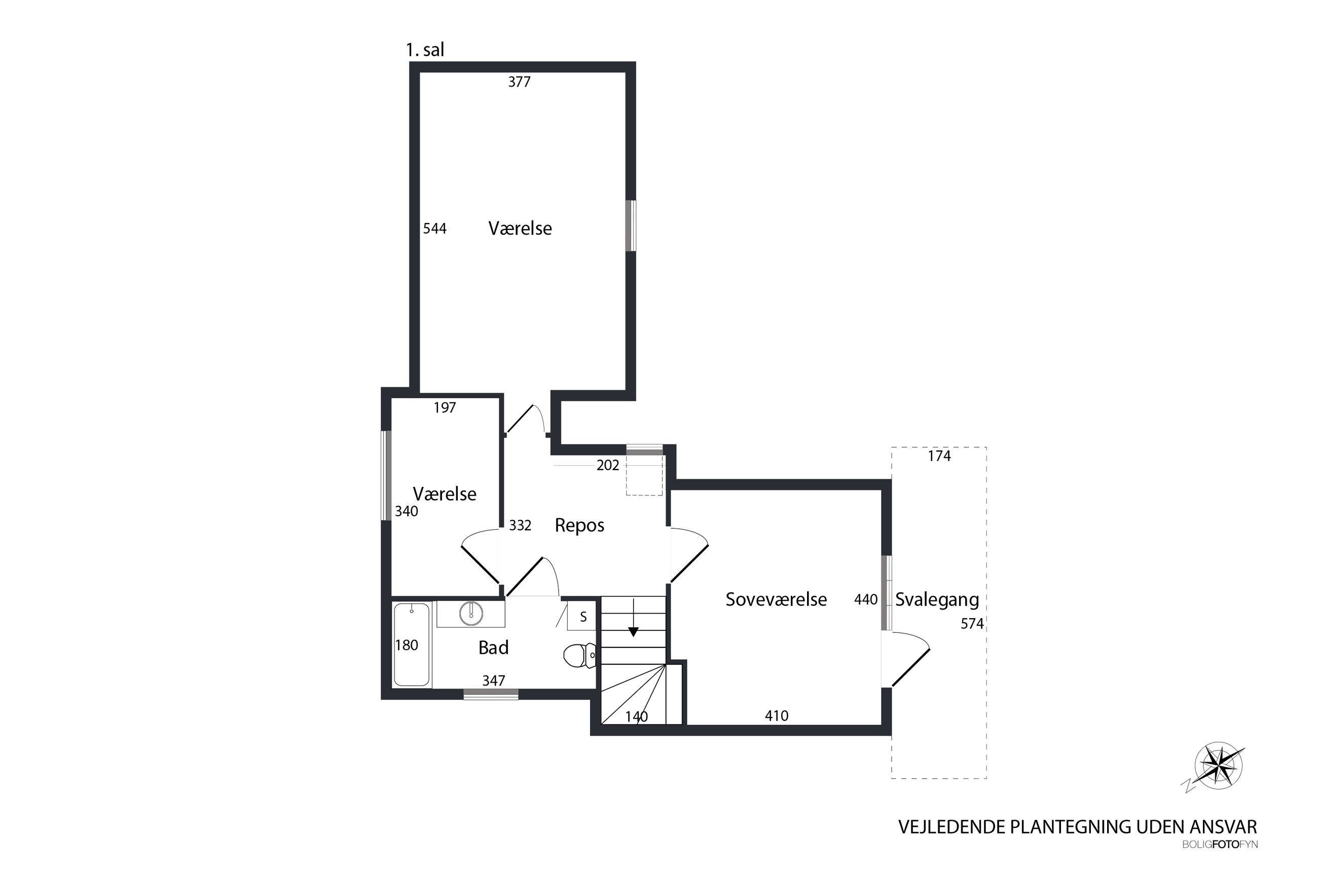 Fra entréen fører trappen både til førstesalen og til kælderen. På førstesalen finder du to gode værelser, et mindre værelse og et badeværelse med badekar. Det ene værelse har smukke plankegulve, elegante paneler og udgang til en overdækket altan.