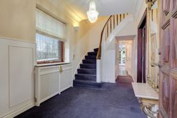 Ved ankomst kan bilen nemt parkeres i den dobbelte garage - med varme - hvorfra der kun er få skridt til hoveddøren og den rummelige entré, der byder dig velkommen. Huset fremstår med en særlig charme med høje paneler på væggene, stuk i lofterne og blyindfattede ruder i dørene til stuerne, som tilsammen skaber en elegant og klassisk atmosfære. Med lidt kærlighed og håndværksmæssigt snilde, kan huset igen bringes tilbage til sin fulde pragt.