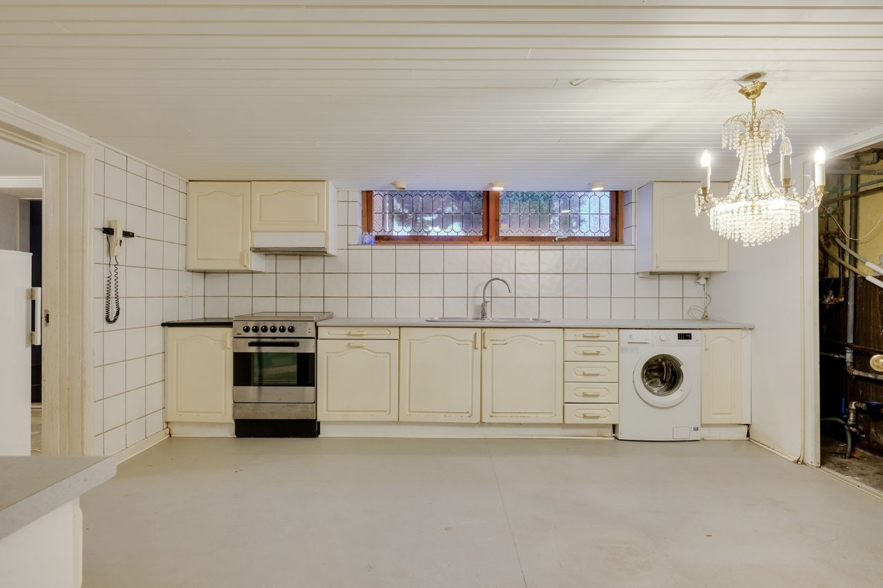 I kælderen får du tre disponible rum, et stort bryggers med køkken og vaskefaciliteter, et badeværelse samt en rummelig fordelingsgang. Her er rig mulighed for hobbyaktiviteter, værksted eller ekstra opbevaring.