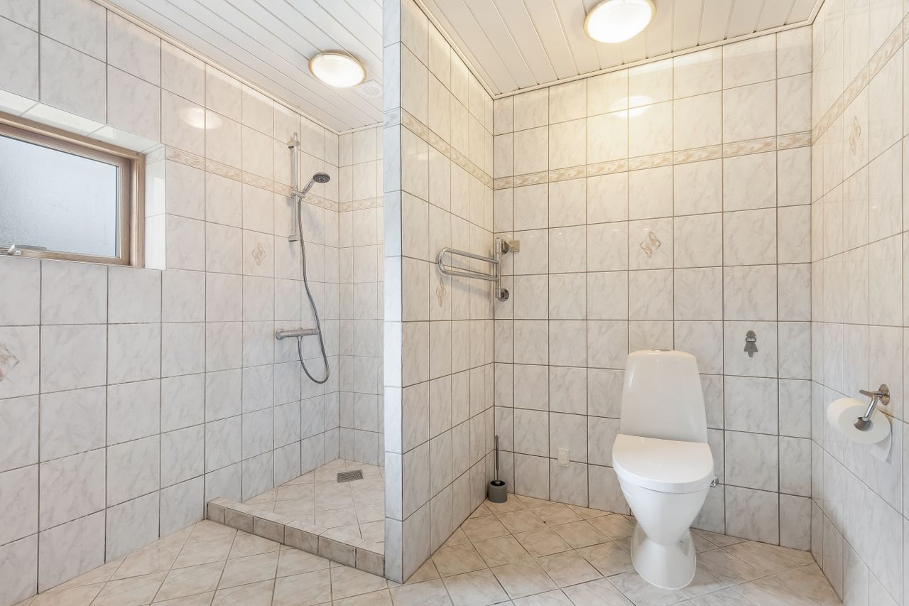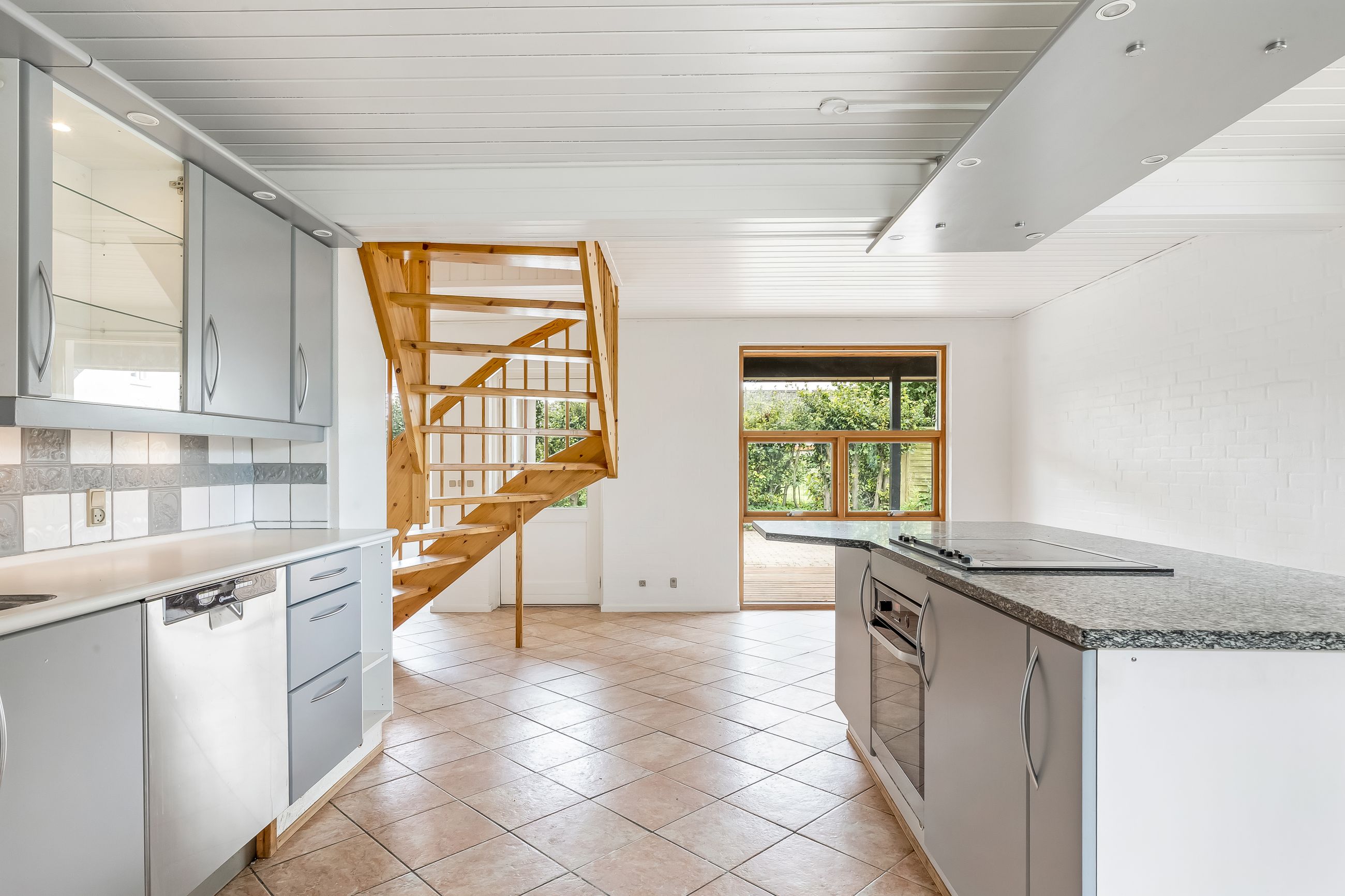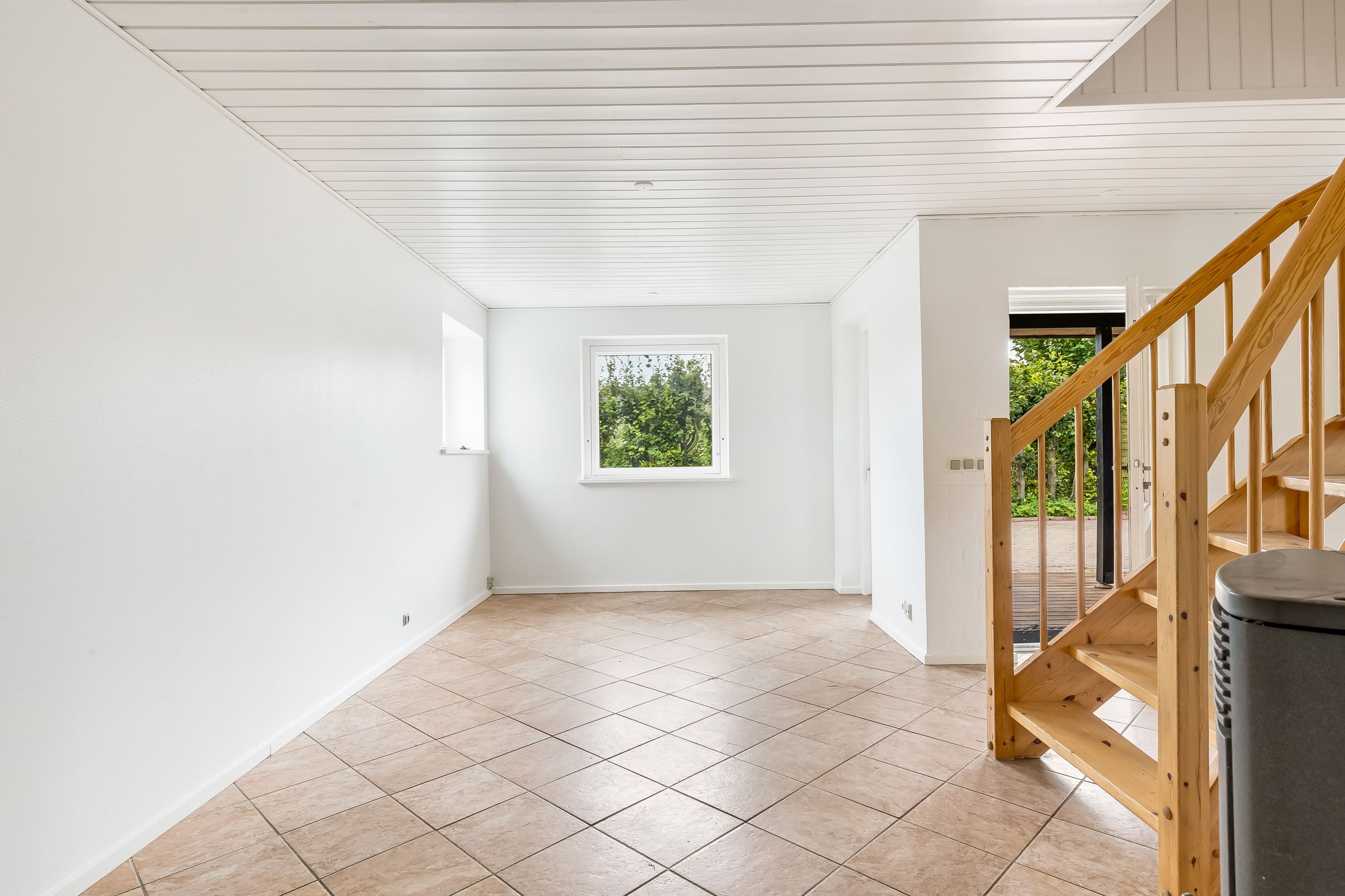 I træder ind til et lyst køkken-alrum som husets naturlige samlingspunkt. Her er en stor ø med god arbejdsplads og fin plads til lektier, madlavning og gæster i samme ombæring. Alrummet ligger i åben forbindelse med opholdsstuen, så I får et dejligt, sammenhængende opholdsrum med udgang til den overdækkede terrasse – perfekt til grill året rundt og lange sommeraftener i læ.
