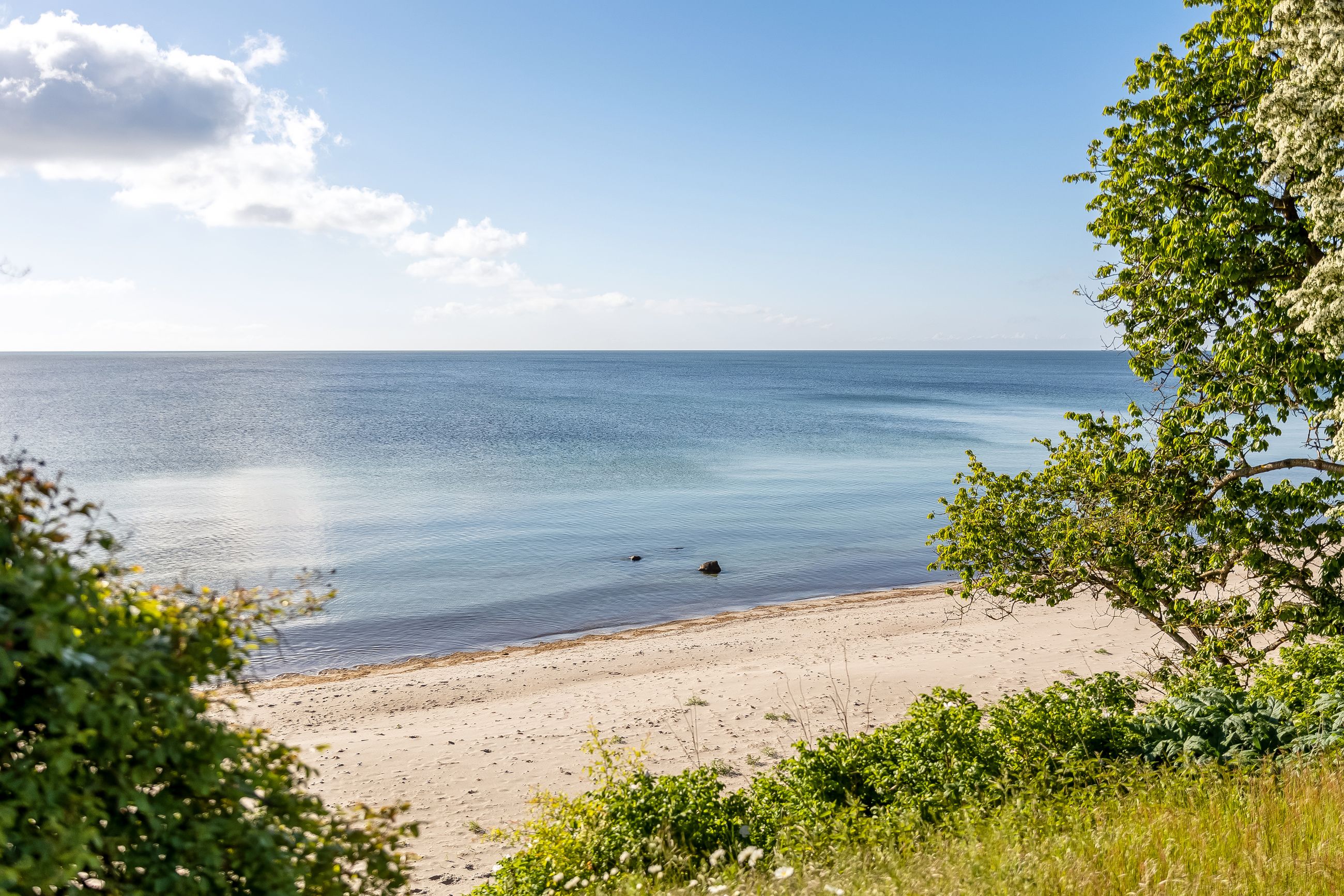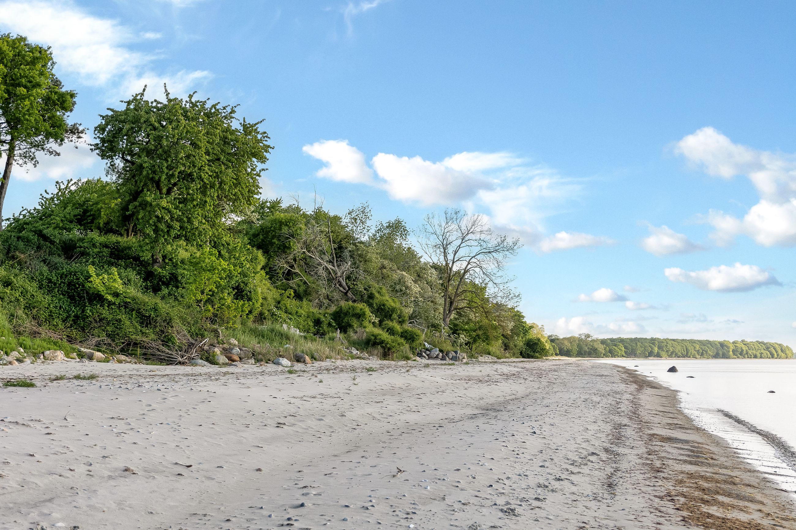 Kyststrækningen byder på kridhvide, sandede strande og fantastiske bademuligheder – helt uden de mange turister, som f.eks. på Marielyst.