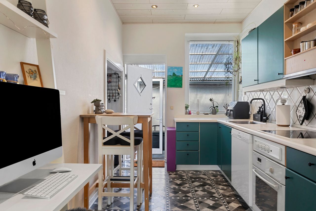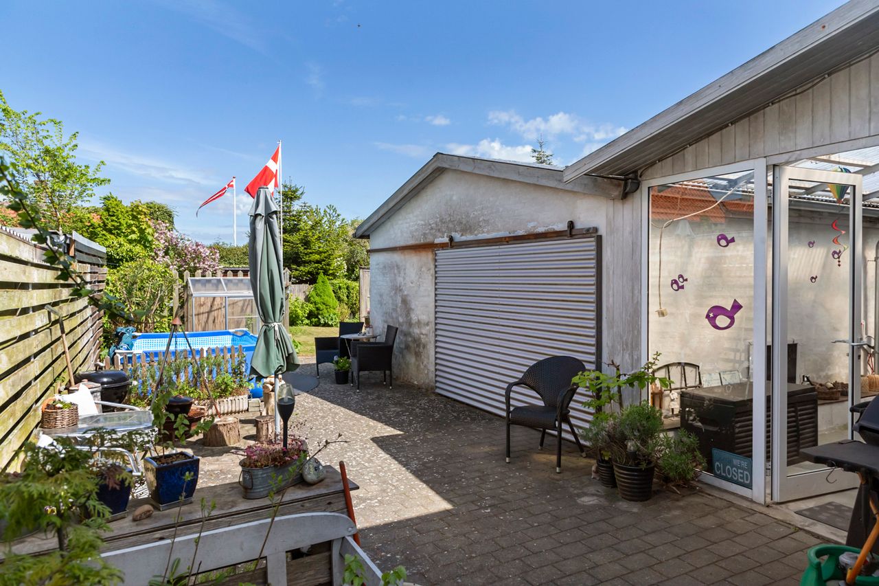 Fra køkkenet er der adgang til det tilknyttede udhus/værksted, som både gør det ud for opbevaringsrum, værksted, grovkøkken og alt det midt imellem - her er plads til både julepynt, havesager og de projekter, du endnu ikke har fået begyndt på.