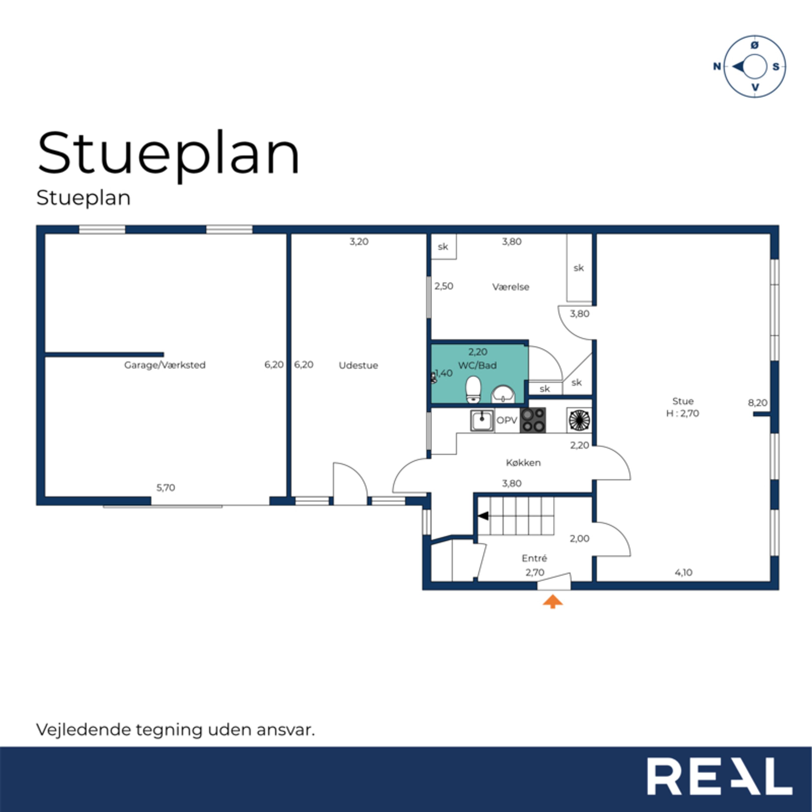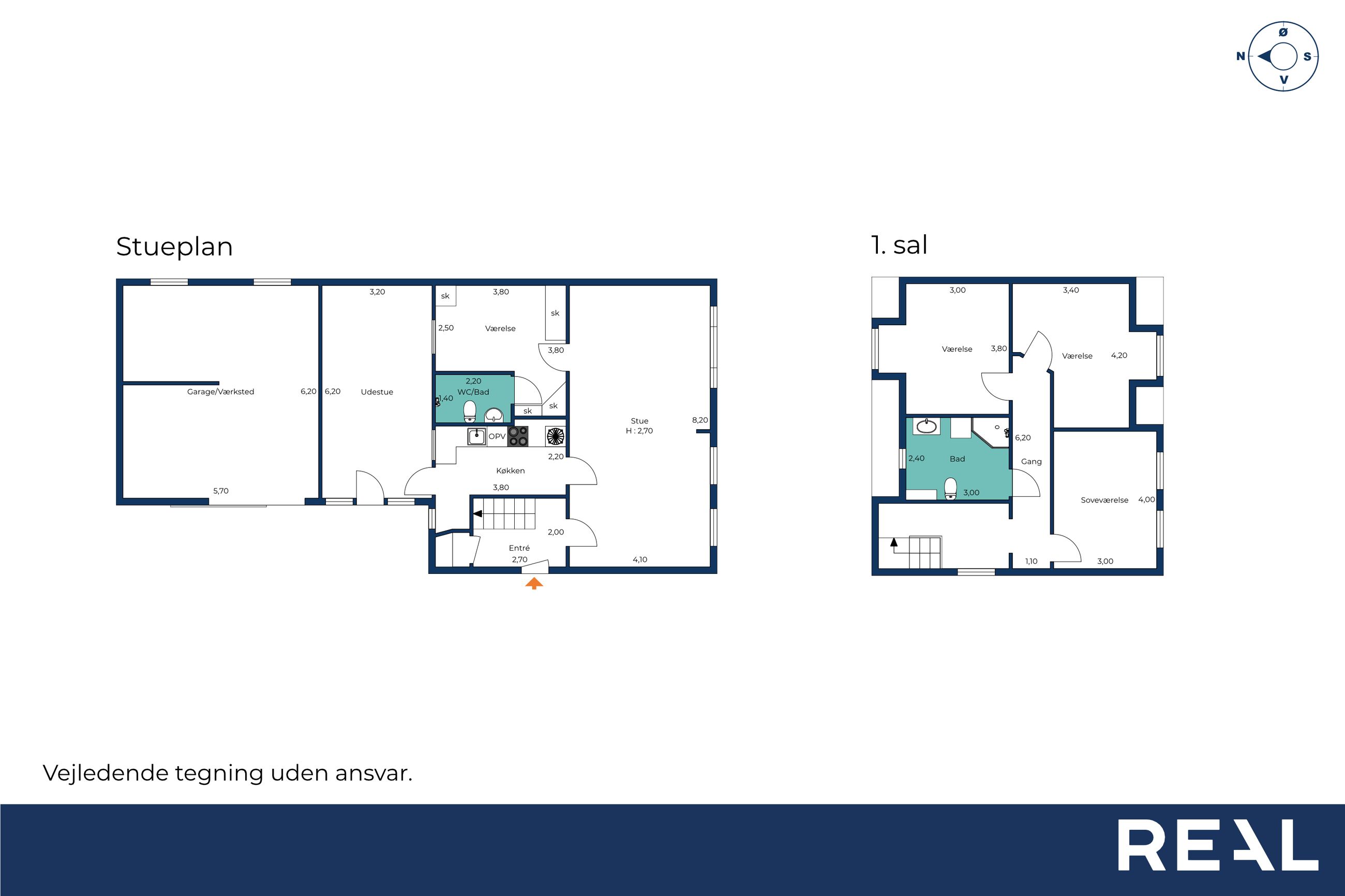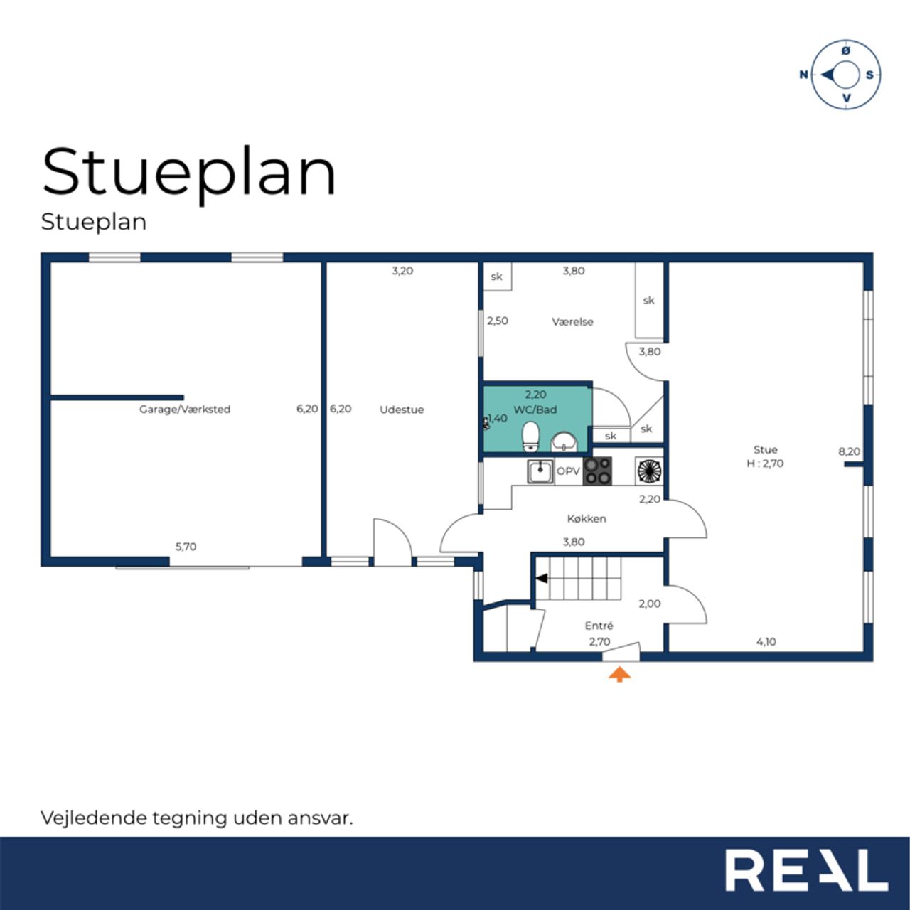 I stueplan bliver I mødt af en rummelig entré, hvor der er god plads til sko, jakker og måske et møbel med skuffer, der alligevel altid bliver rodet. Herfra går I videre ind i boligens hyggelige køkken med lille spiseplads – og på de solrige dage kan I slå døren op til udestuen, hvor kaffen smager lidt bedre og aviser bliver læst lidt langsommere. Den store opholdsstue giver plads til både sofahygge, middagsgæster og på samme etage finder I også et værelse samt et mindre badeværelse med bruseniche.