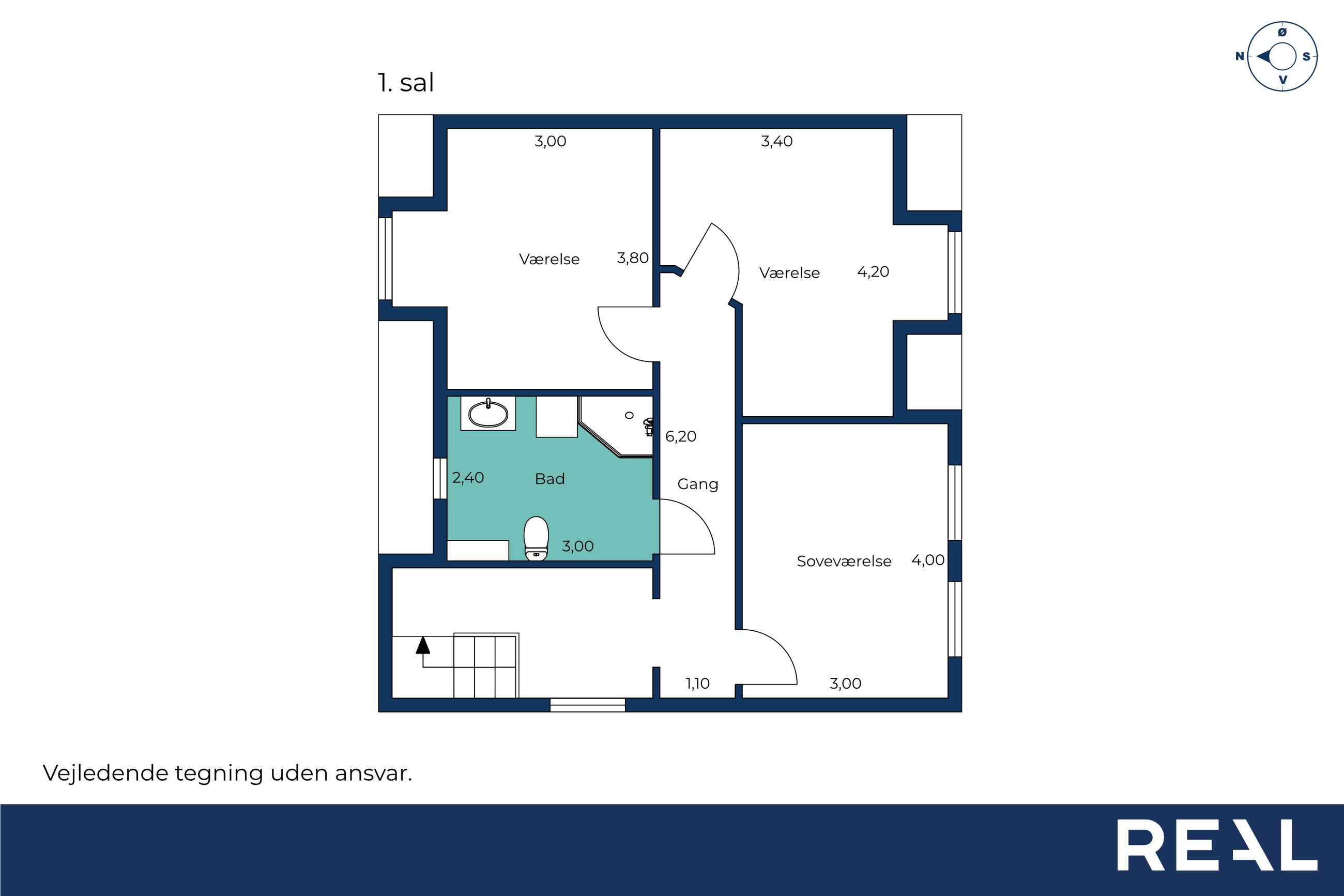 På førstesalen venter tre gode værelser, som kan bruges til børneværelser, gæster, hjemmekontor eller det kreative hobbyrum, du altid har drømt om. Heroppe finder du også husets andet badeværelse, så du kan tage et bad i fred, mens resten af familien tager sig af morgenmylderet nedenunder.