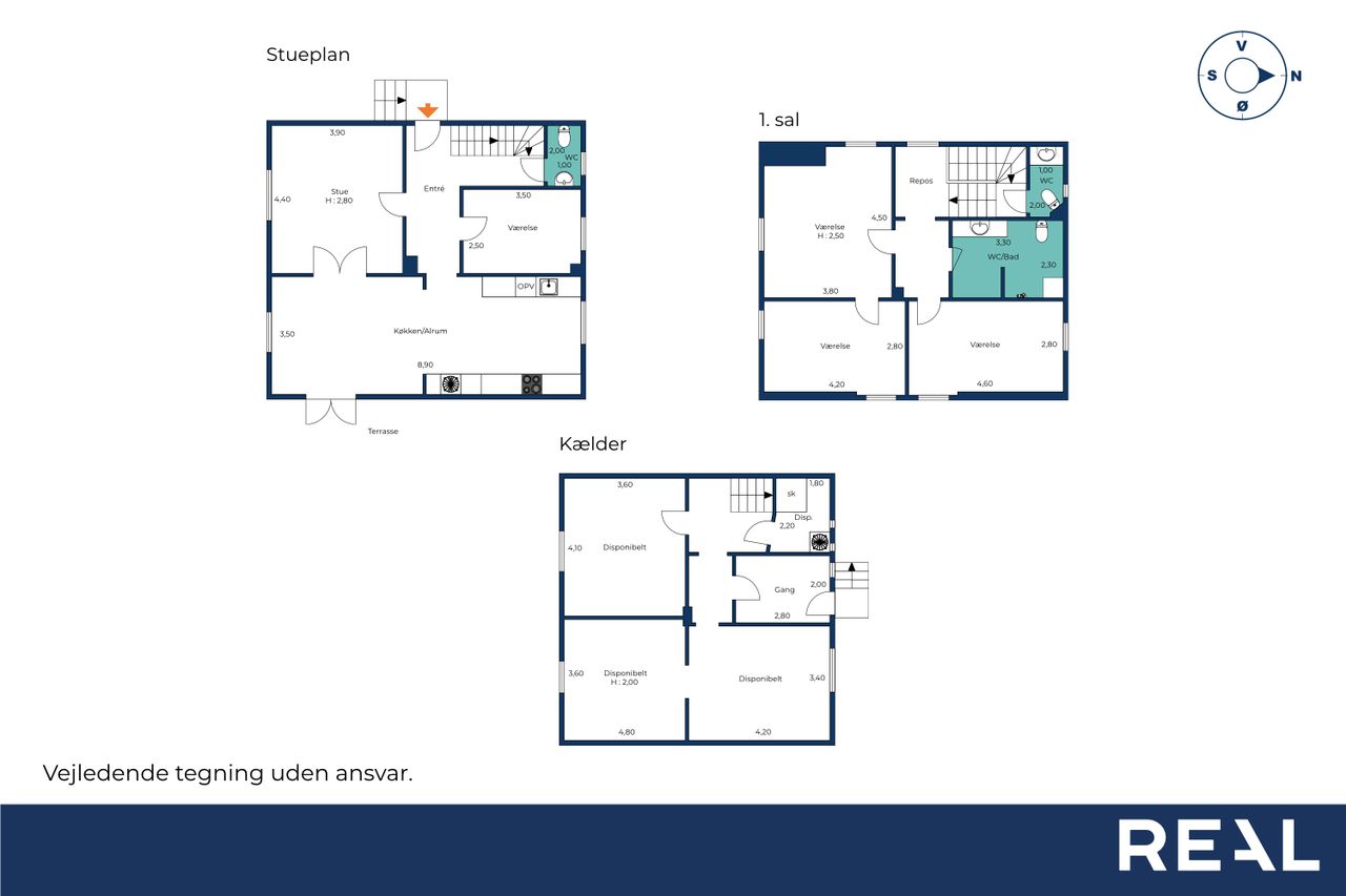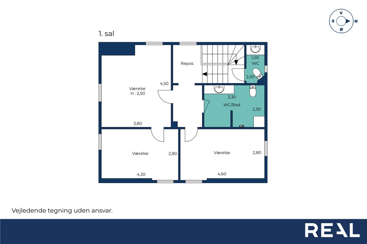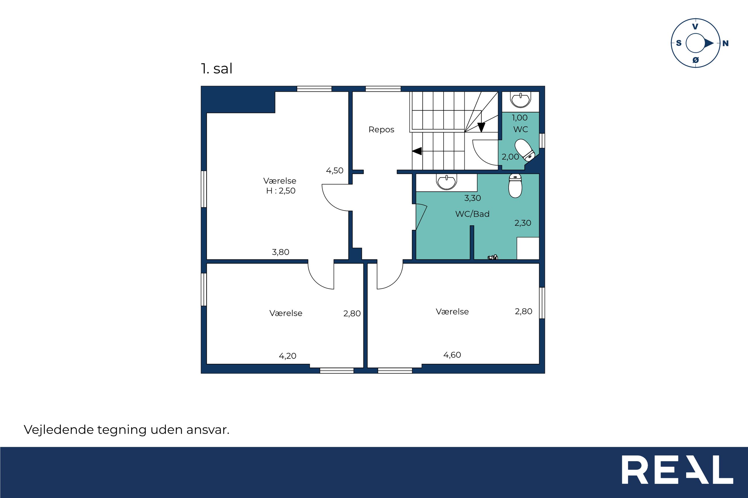 Førstesal – tre rigtige værelser