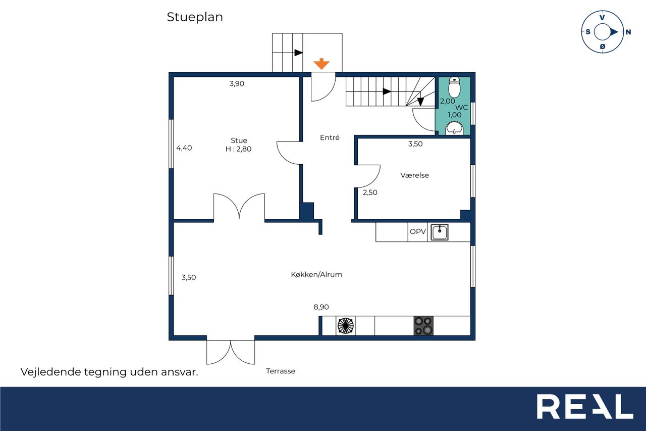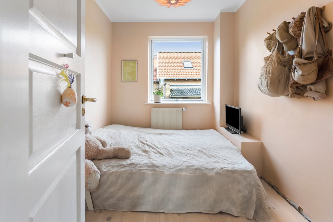 I får desuden et ekstra værelse i stueplan – perfekt som hjemmekontor, gæsteværelse eller børneværelse – samt et praktisk gæste-wc lige op af trappen, der gør myldretiden lidt mere medgørlig.