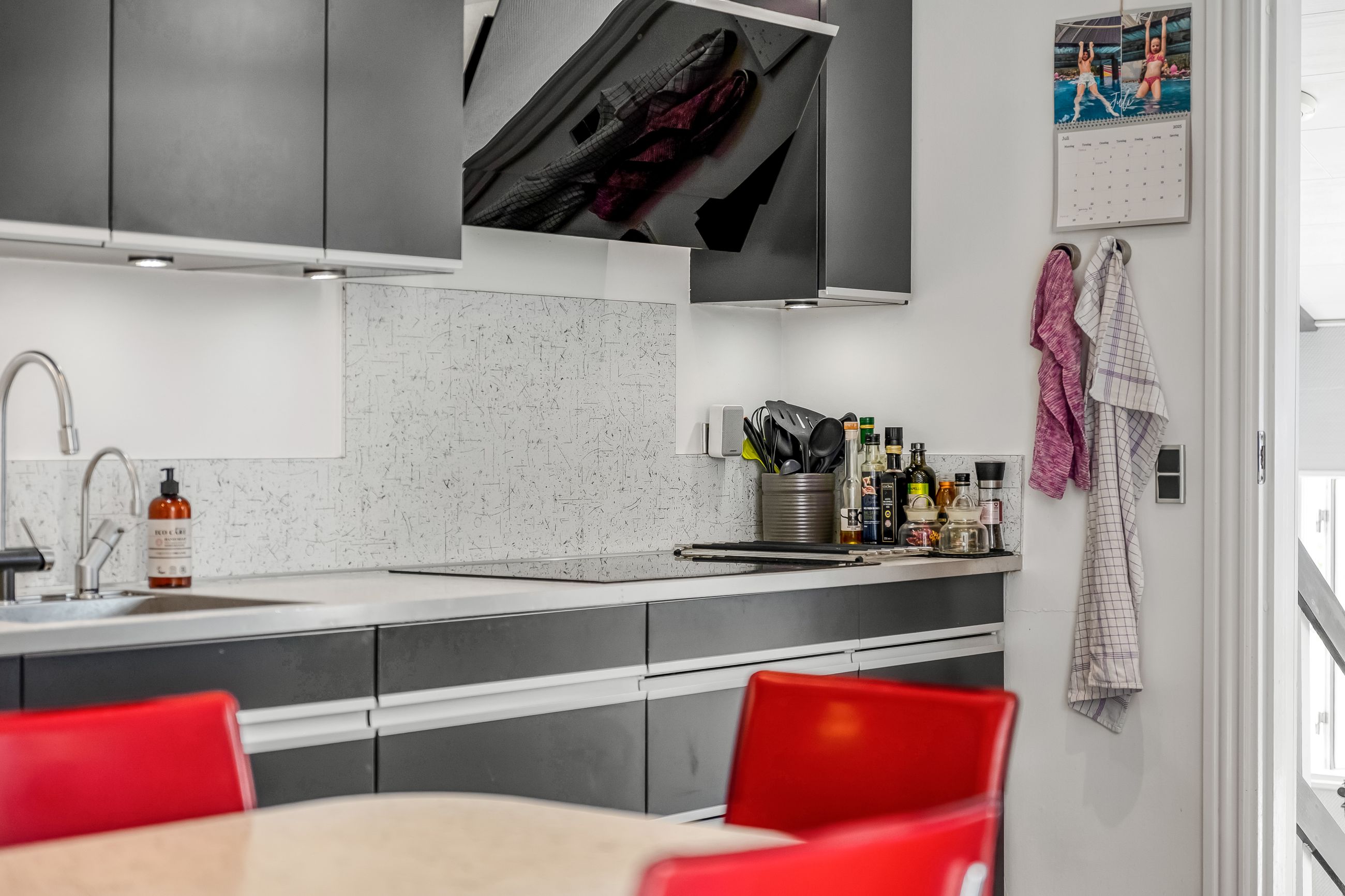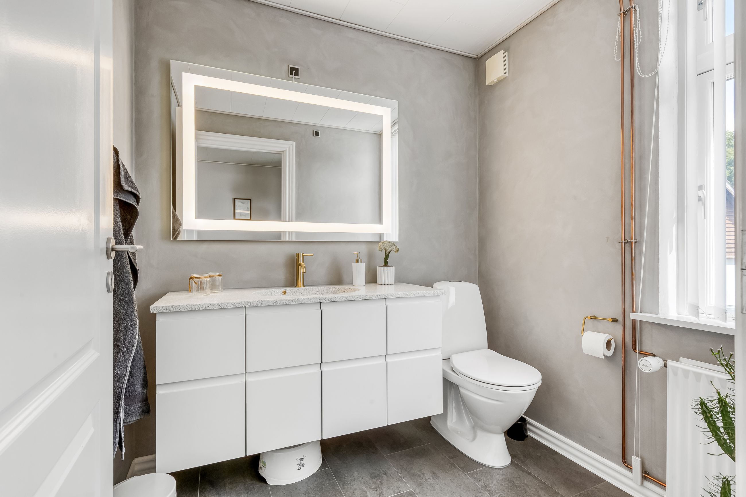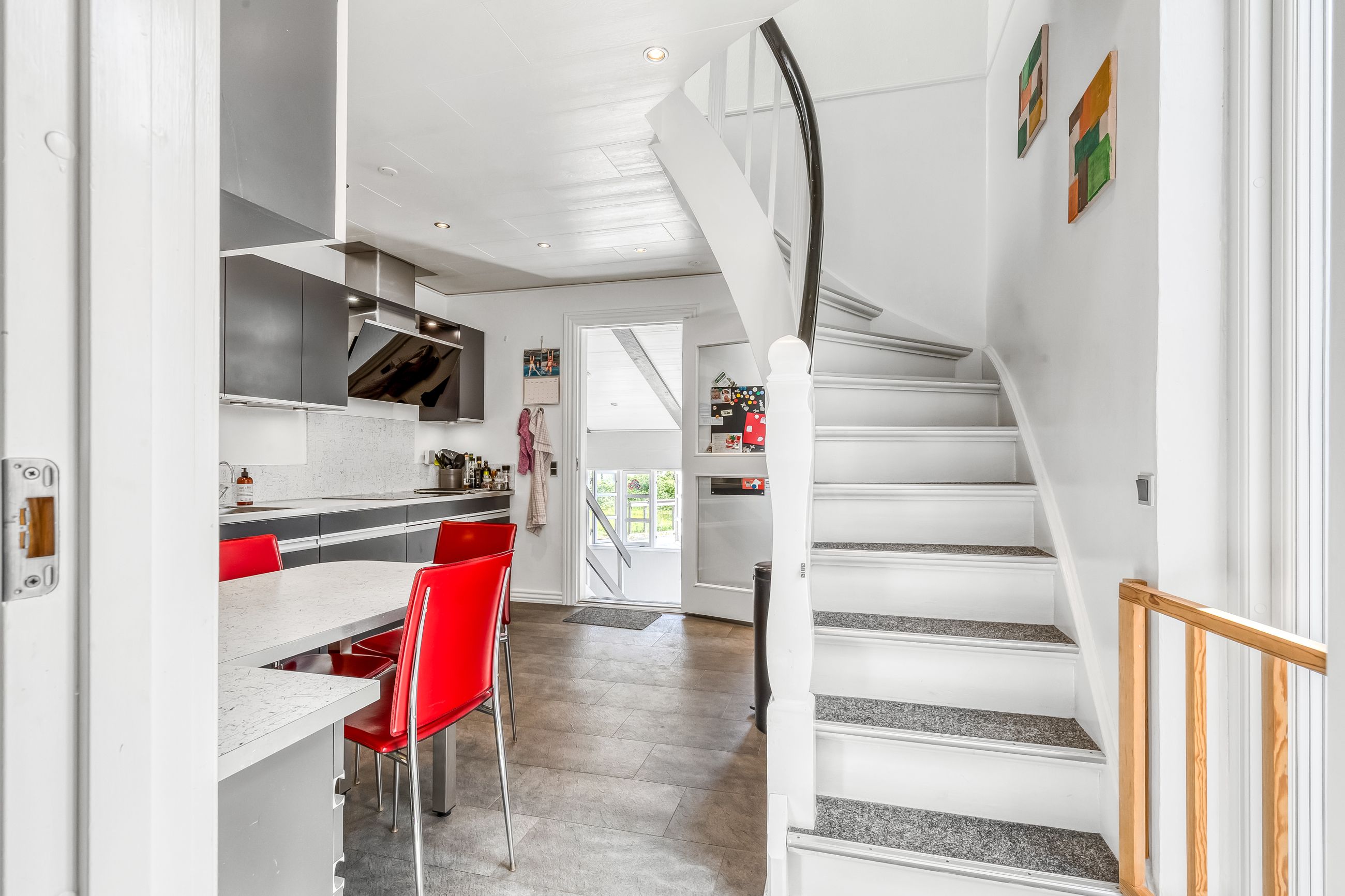 På førstesalen finder I 3 regulære værelser og et repos, perfekt indrettet til både børn, voksne eller den obligatoriske hjemmearbejdsplads (eller walk-in, hvis I er til det). Heroppe er der en hyggelig stemning, pæne gulve og en fin udsigt over nabolagets rolige omgivelser.