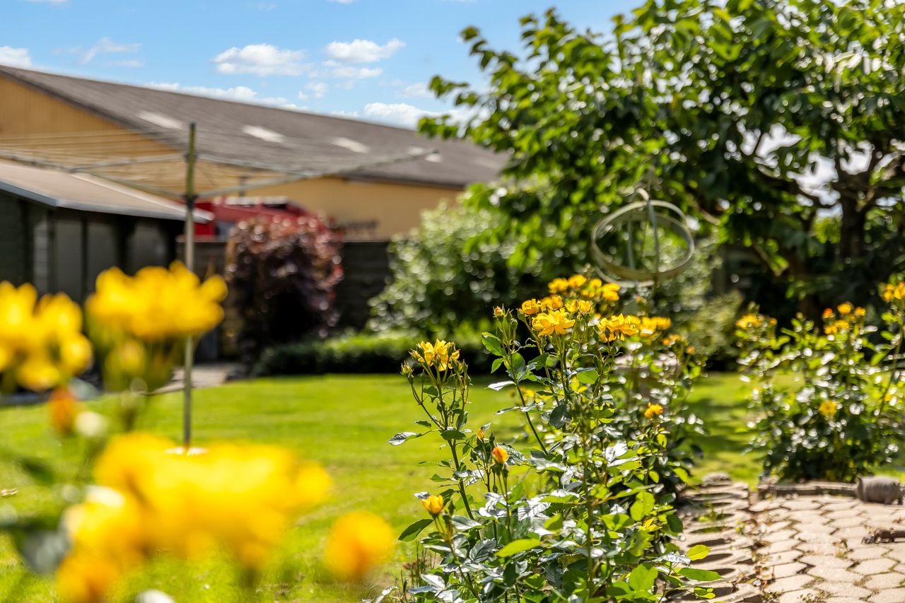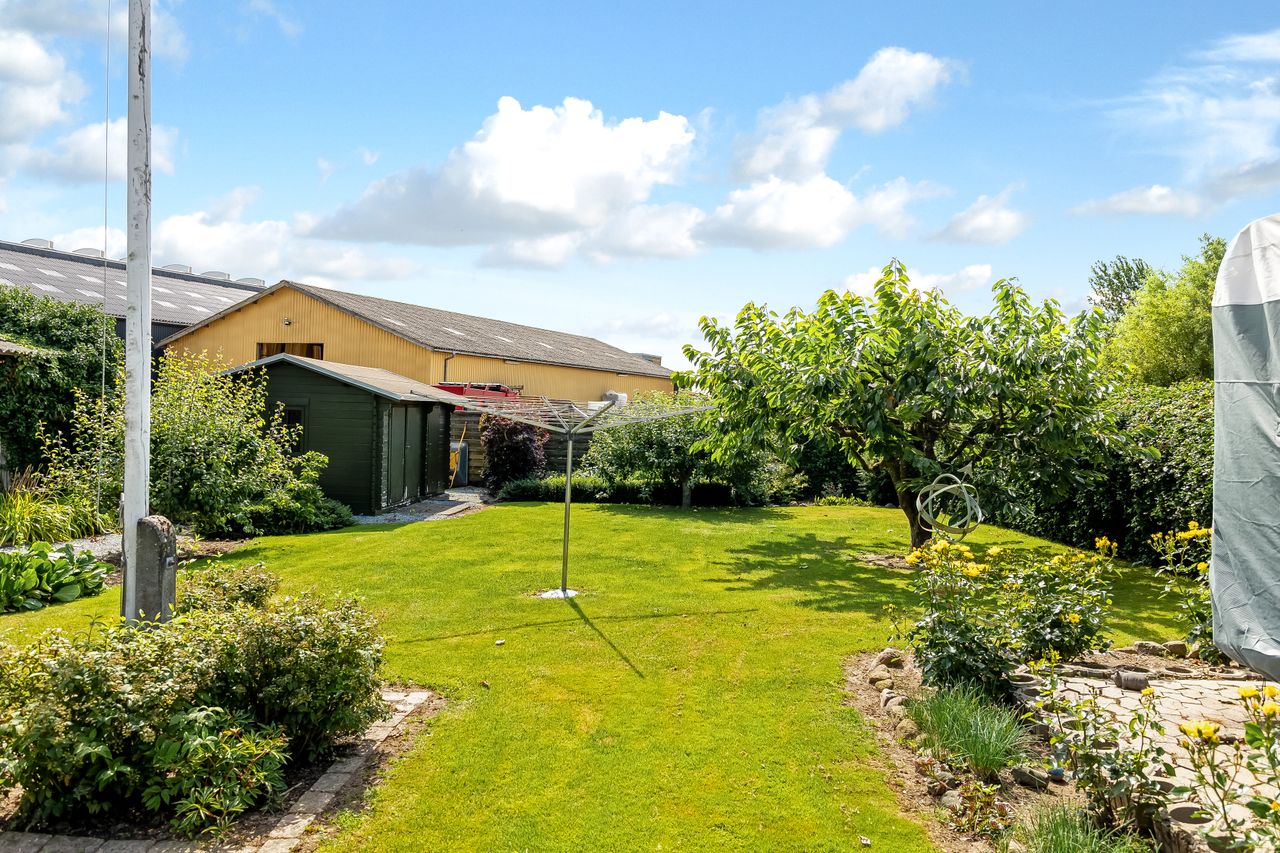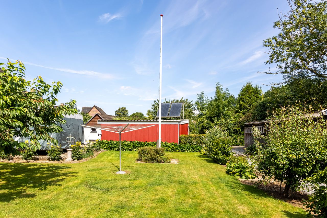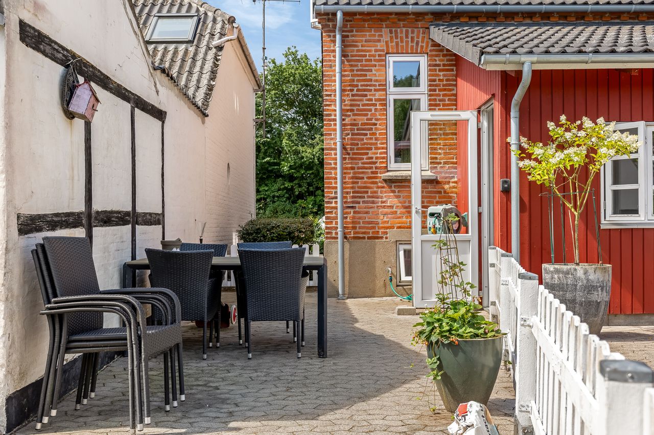 Og så er der haven. Her har både børn og sommerfugle tumlet rundt, og der er stadig rigelig plads til begge dele. Solen rammer terrassen fra middag til aften, så her er perfekte forhold til grill, kolde drikke og lange samtaler. Der er frugttræer, grønne omgivelser og en fred, man ellers kun finder ude på landet og det hele er omkranset af hæk, så privatlivet er i top.