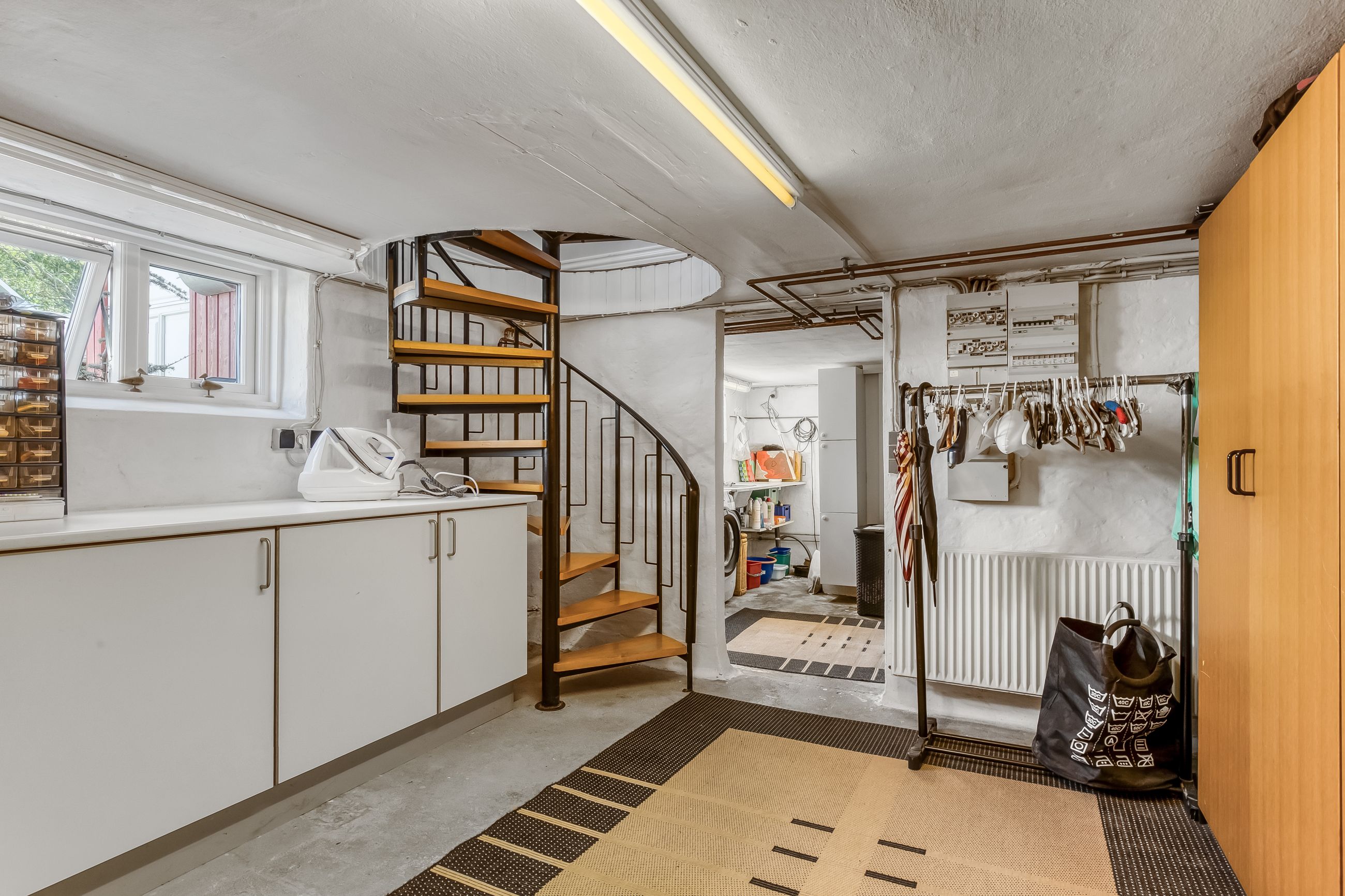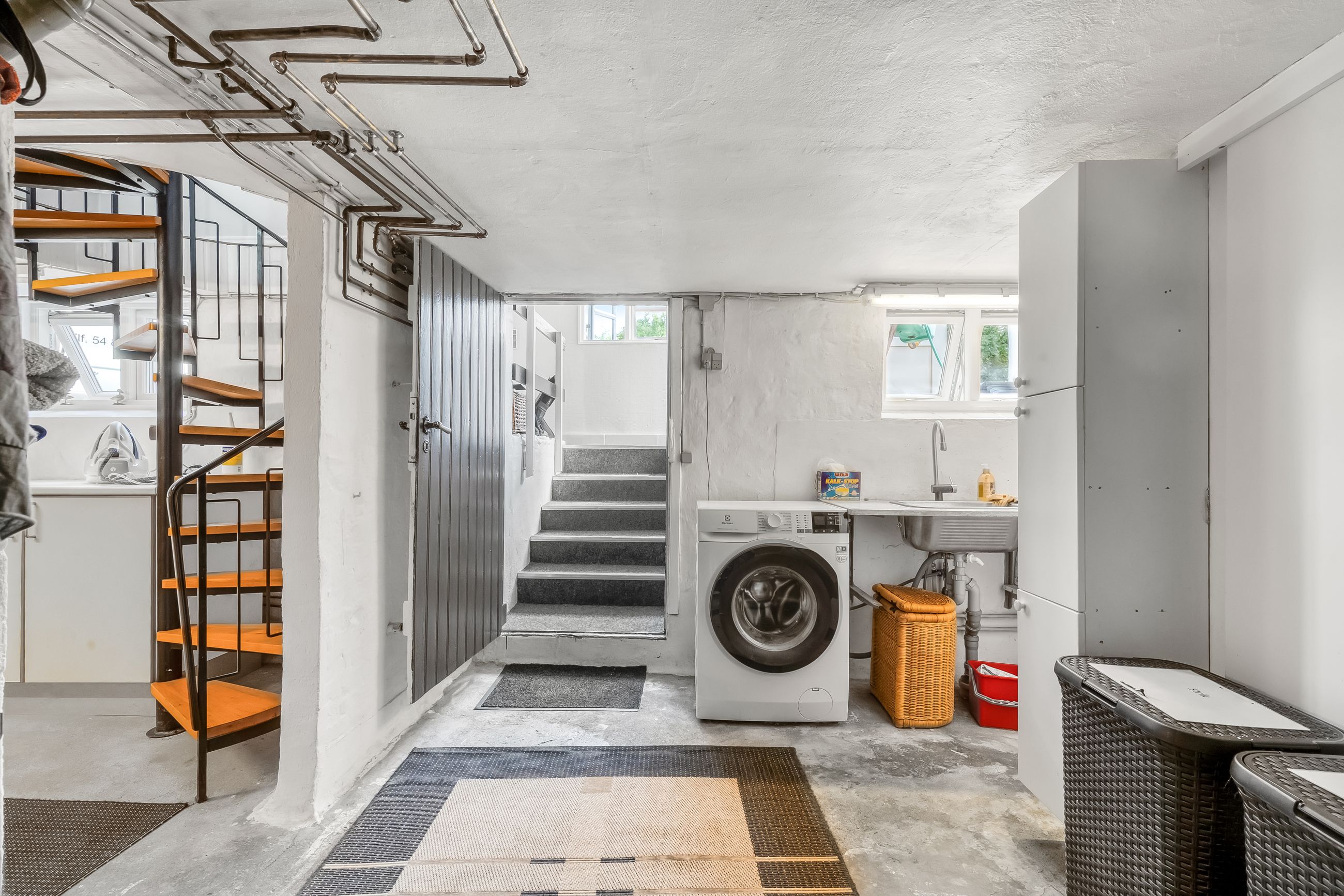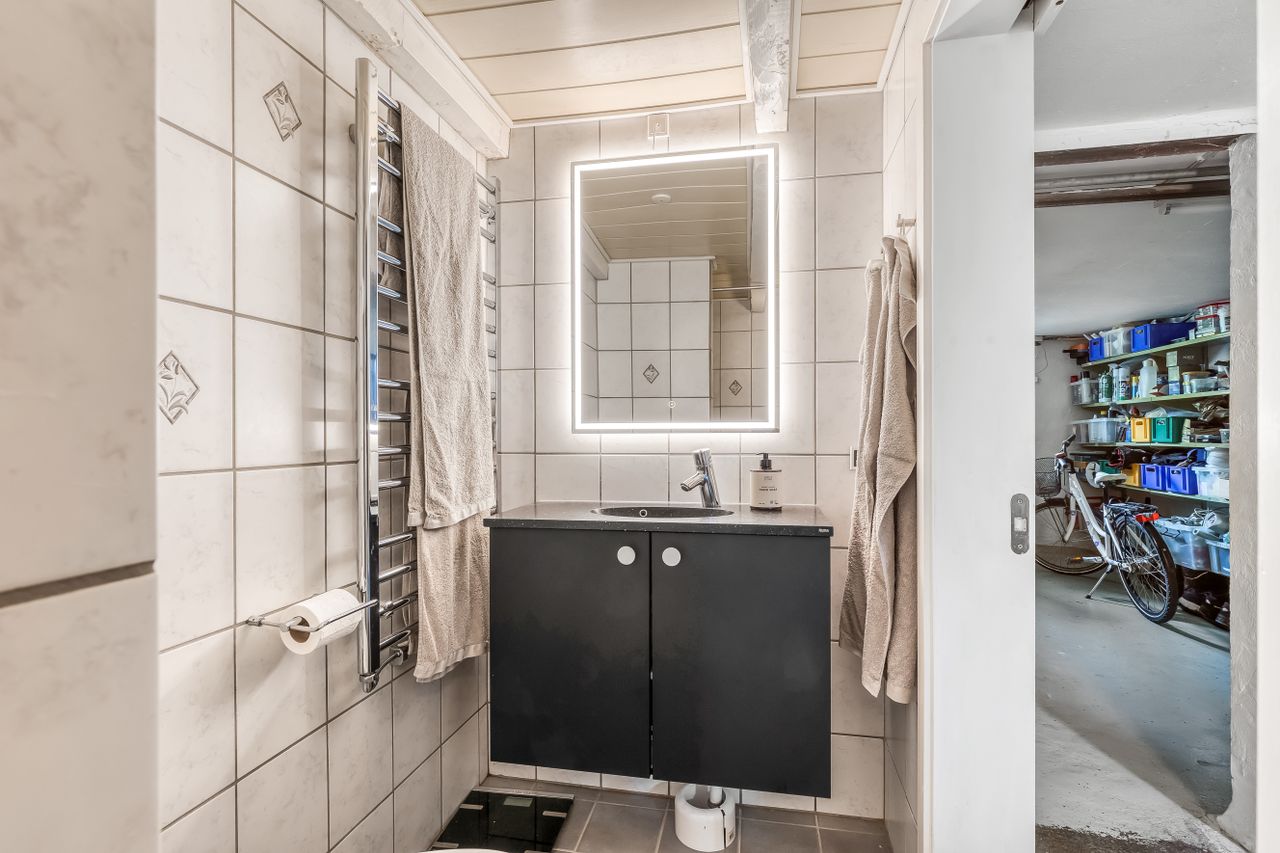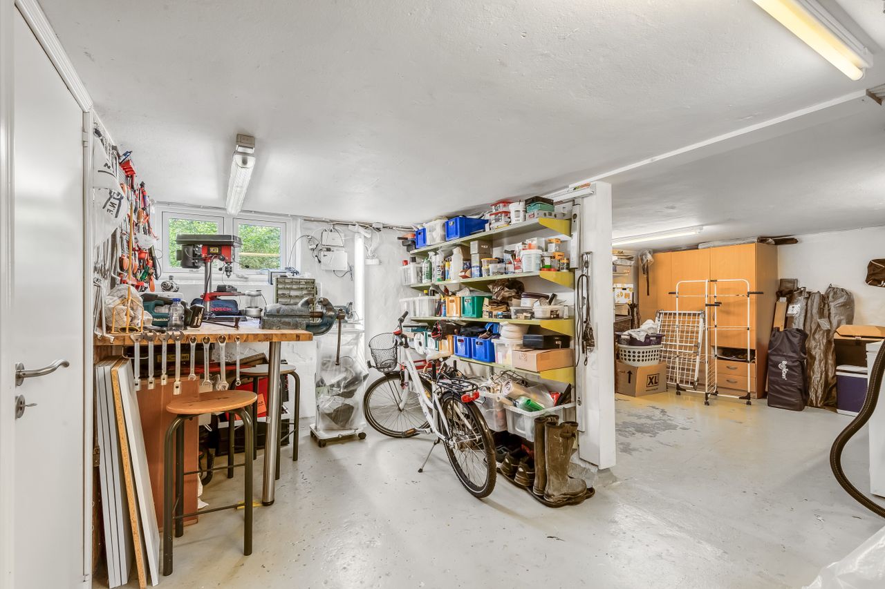 Kælderen er alt andet end kedelig. Her er et badeværelse med bruseniche, et praktisk bryggers og flere disponible rum, hvor kun fantasien sætter grænser: hjemmebiograf, hobbyværksted, vinkælder eller bare ro og orden til alt det, der ikke må flyde ovenpå.