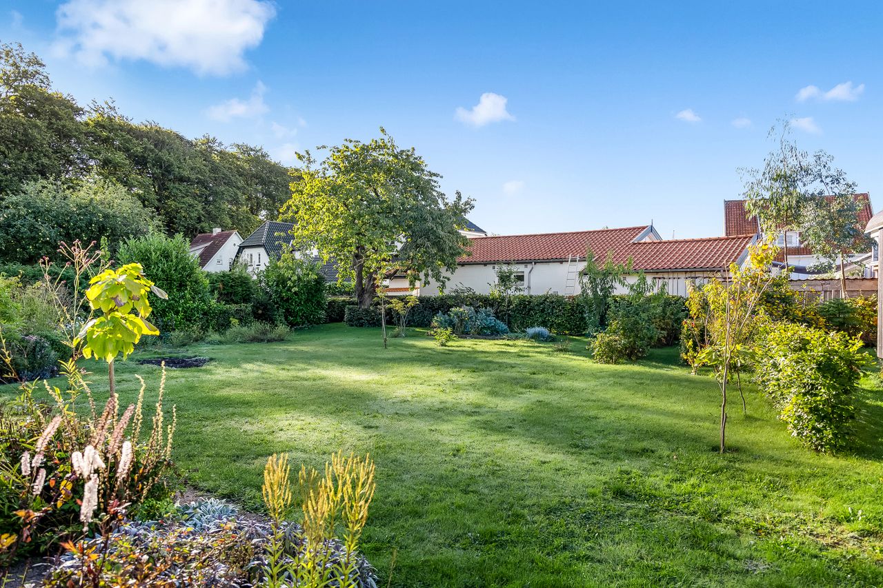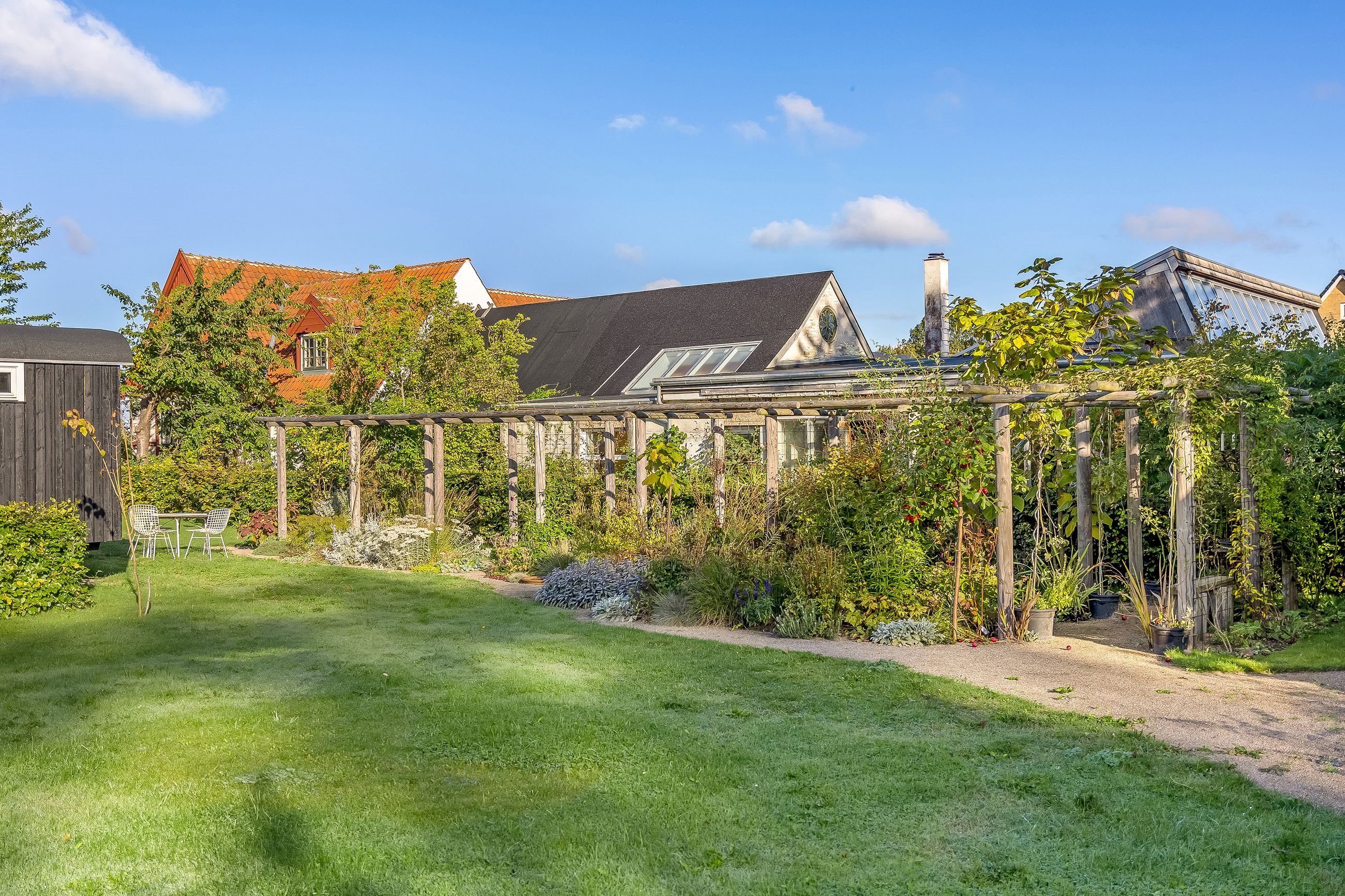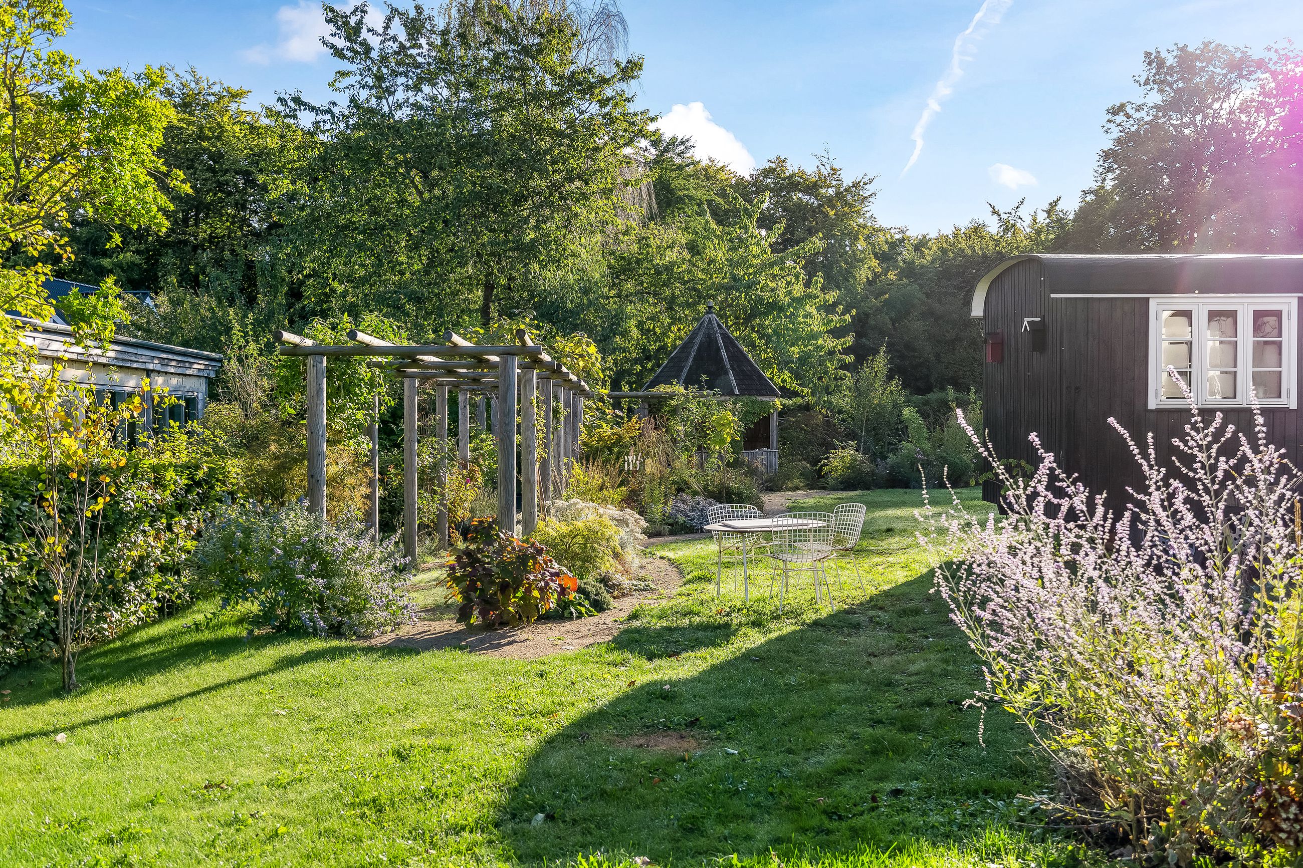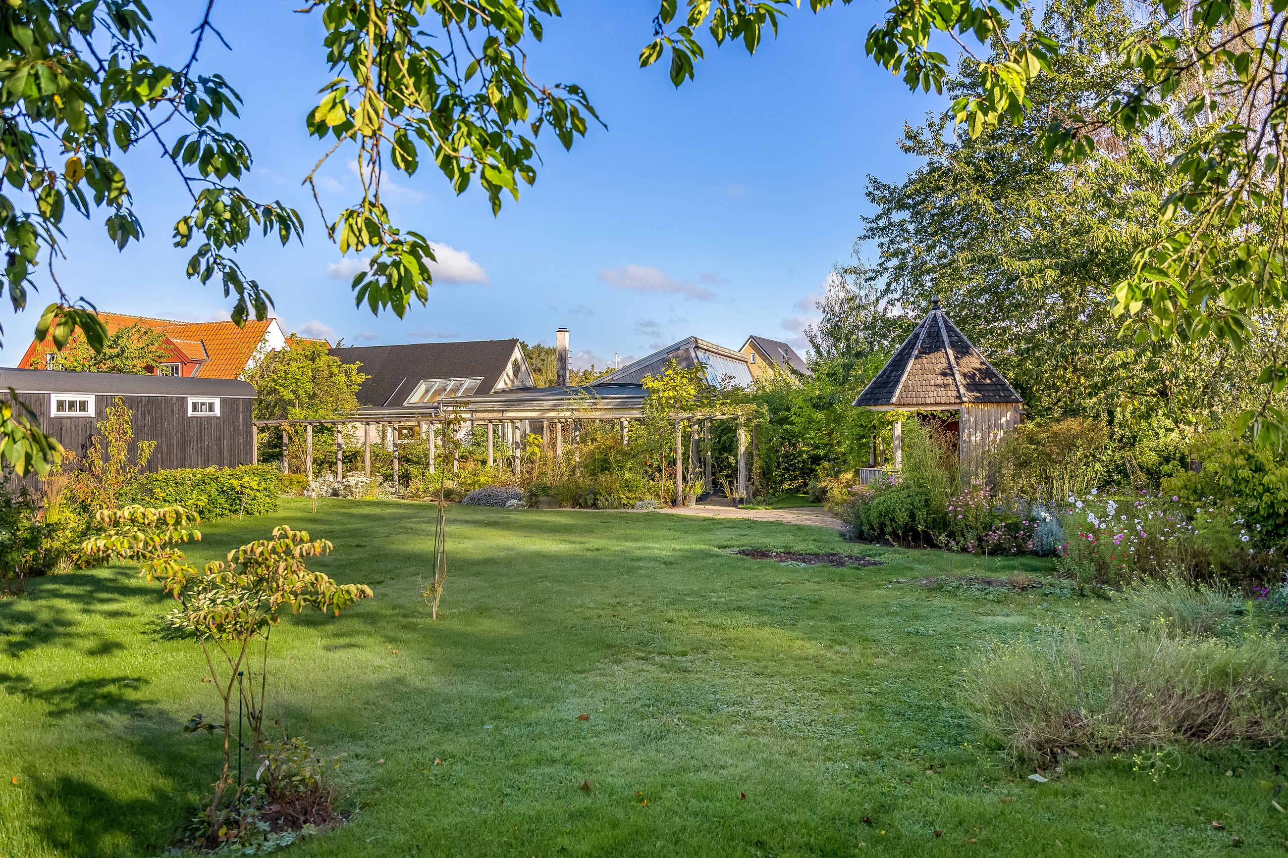 Haven er allerede et lille eventyr: smukke staudebede, grøn plæne med god dybde, hyggelige stier og en charmerende pavillon, hvor eftermiddagskaffen (eller fredagsboblerne) smager ekstra godt. Her kan I skabe præcis det hjem, I ønsker – om det er et moderne lavenergihus med store vinduespartier, en klassisk villa eller et enkelt étplanshus med direkte udgang til store terrasser.