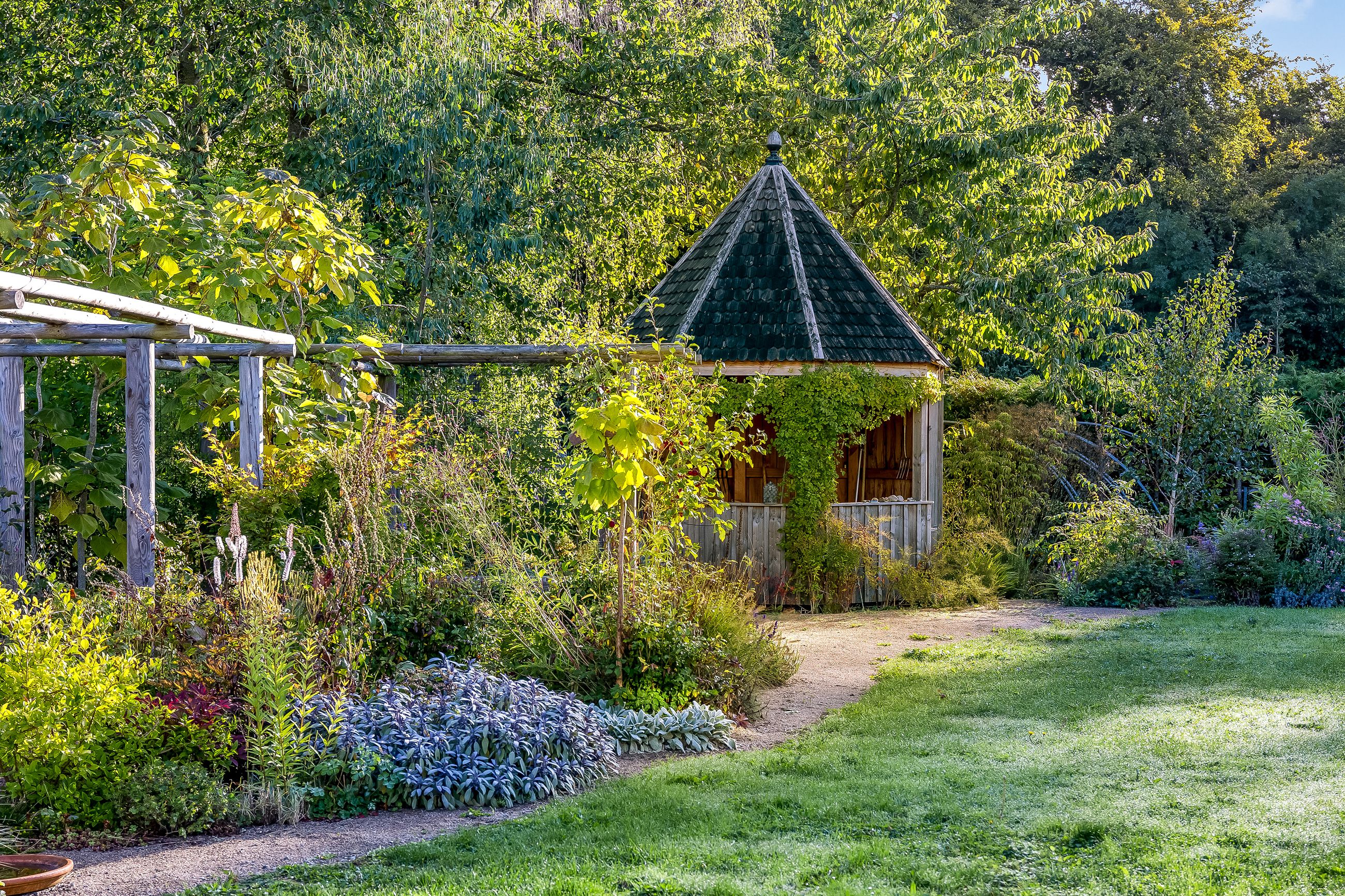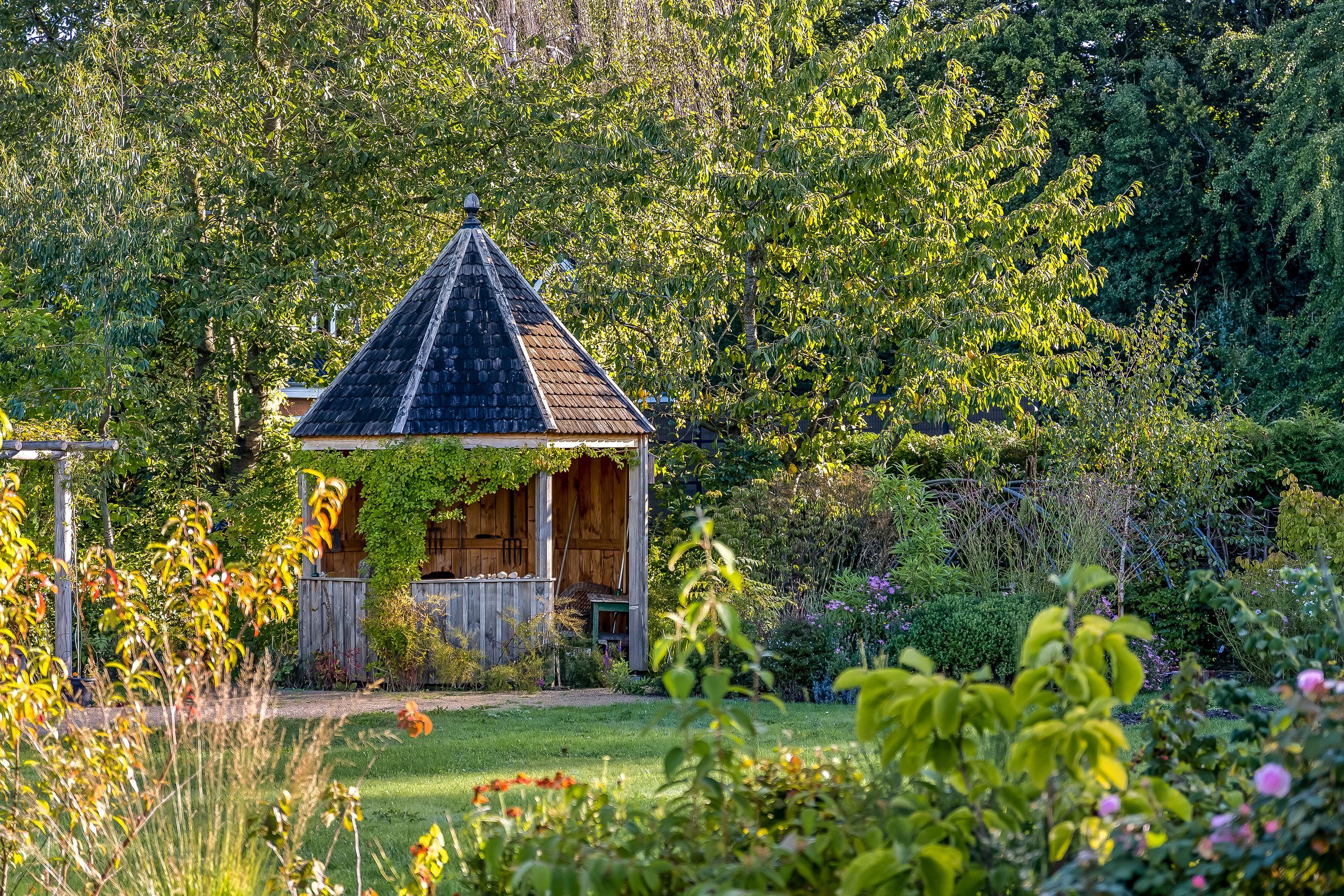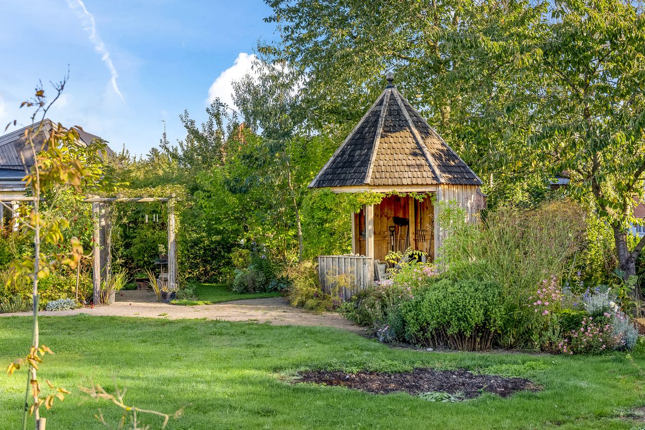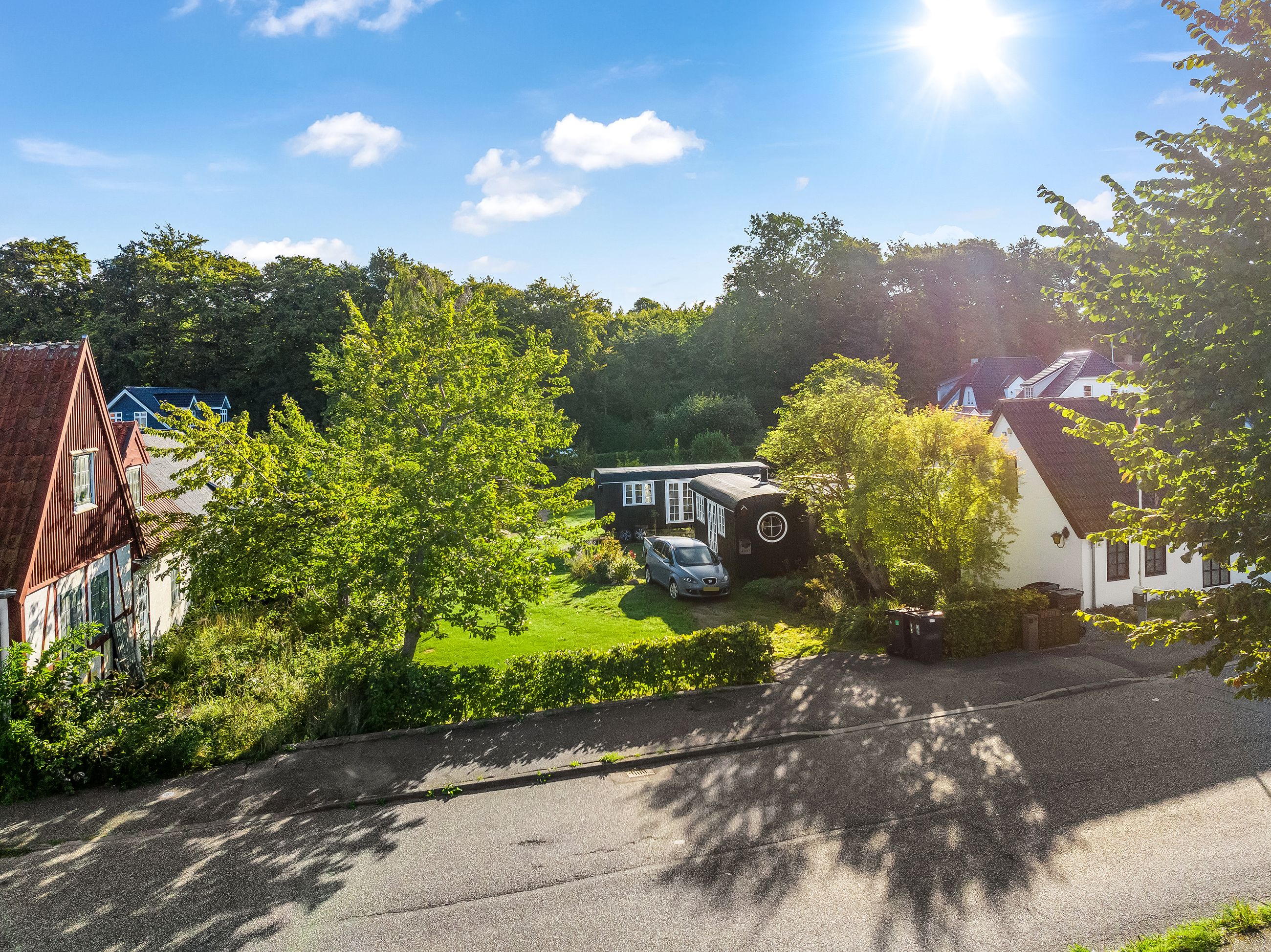 Haven er allerede et lille eventyr: smukke staudebede, grøn plæne med god dybde, hyggelige stier og en charmerende pavillon, hvor eftermiddagskaffen (eller fredagsboblerne) smager ekstra godt. Her kan I skabe præcis det hjem, I ønsker – om det er et moderne lavenergihus med store vinduespartier, en klassisk villa eller et enkelt étplanshus med direkte udgang til store terrasser.