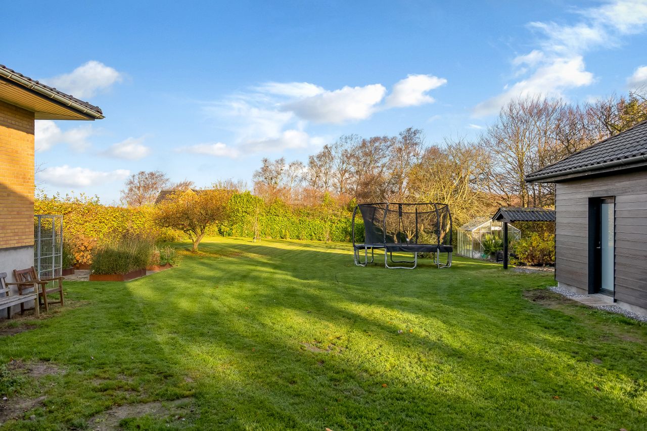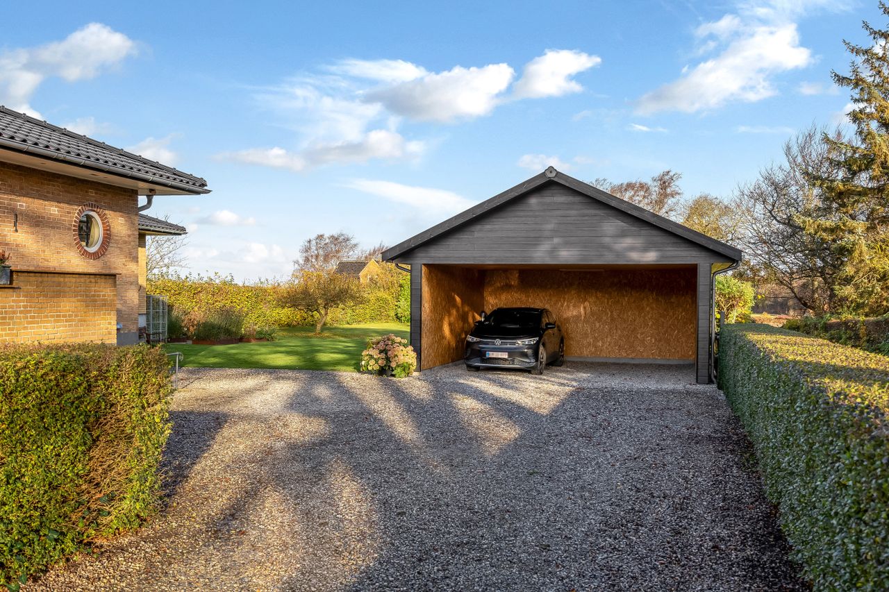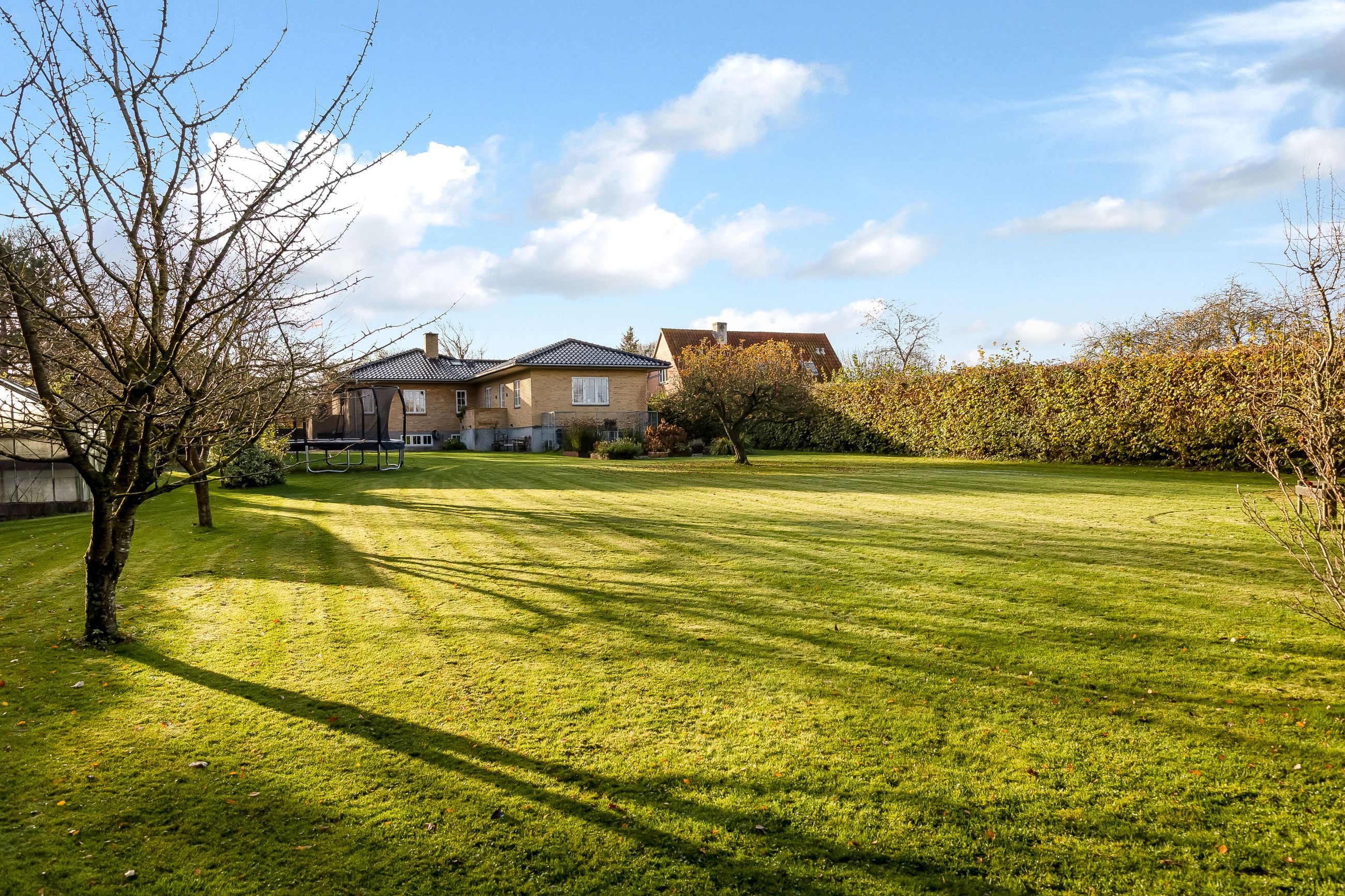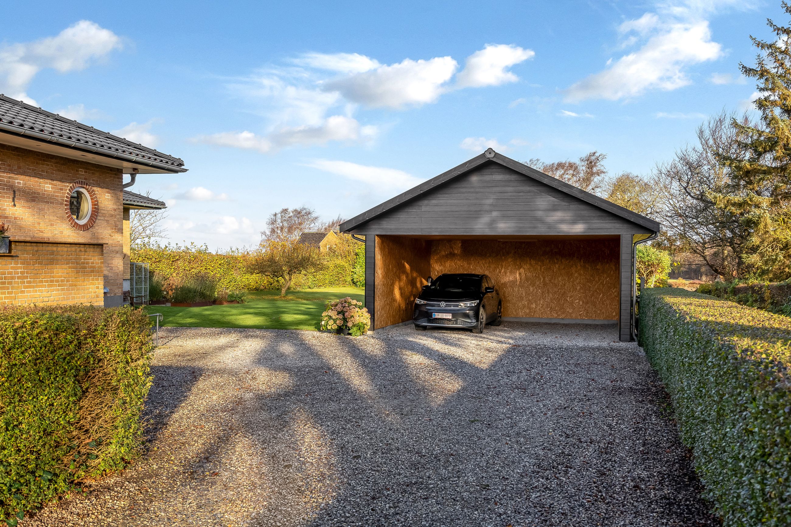 Grunden på 2.758 m2 er ikke bare stor – den er også gennemtænkt. Indkørslen leder jer elegant op til huset og den flotte, nyere garage/carport, og resten af haven breder sig ud som en grøn scene, hvor årstiderne kan spille med fuldt orkester.