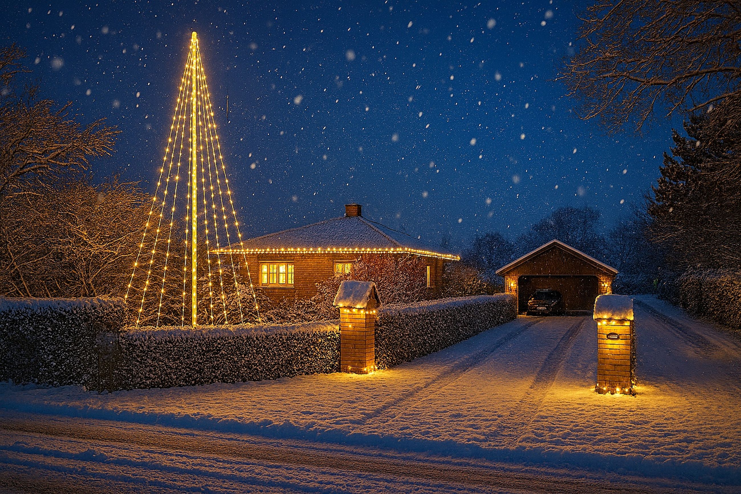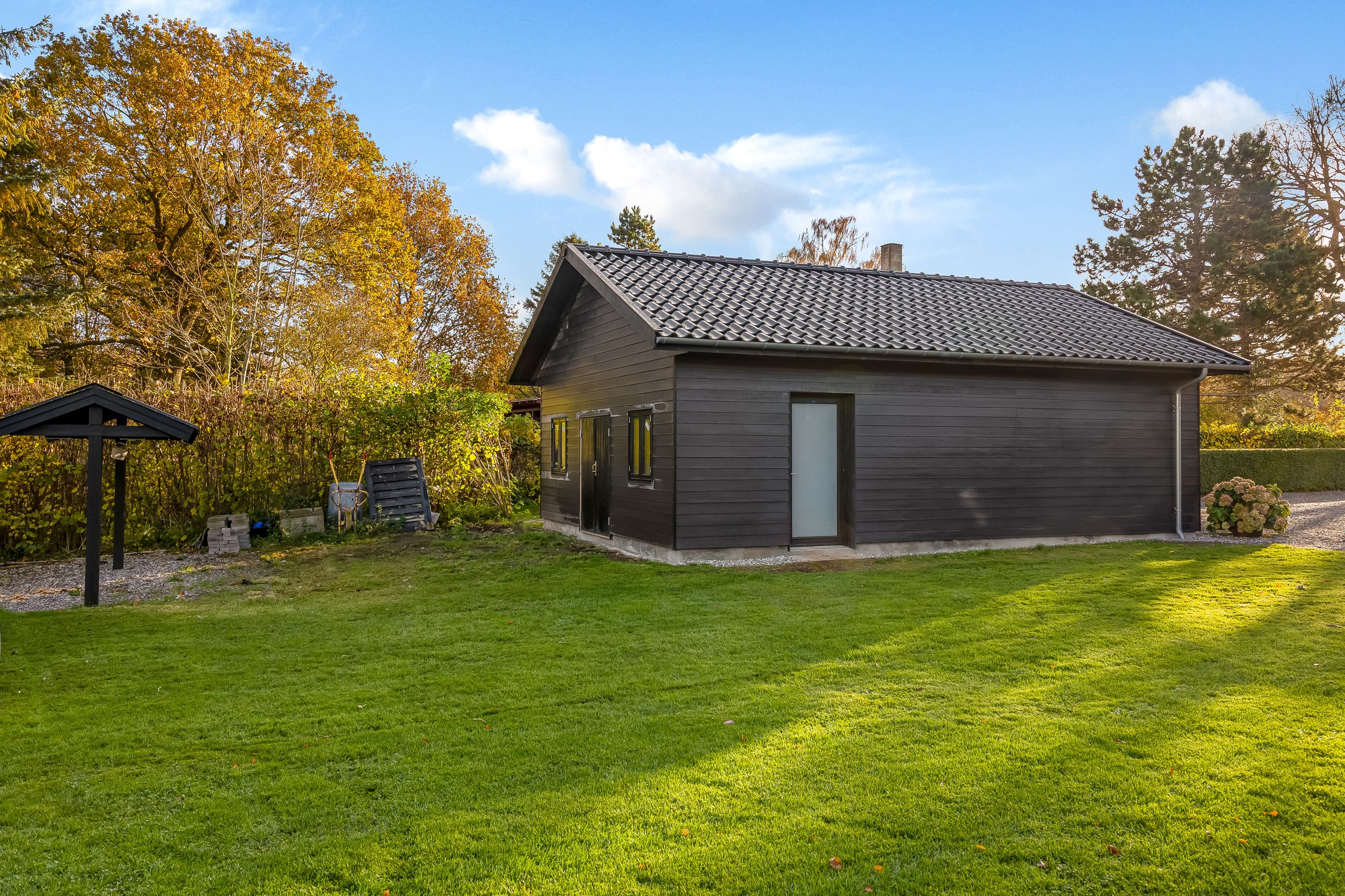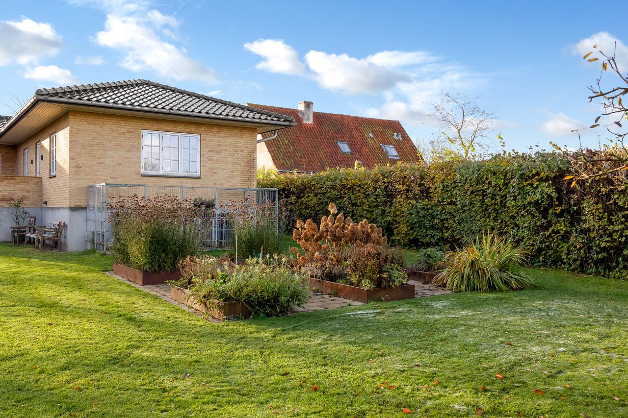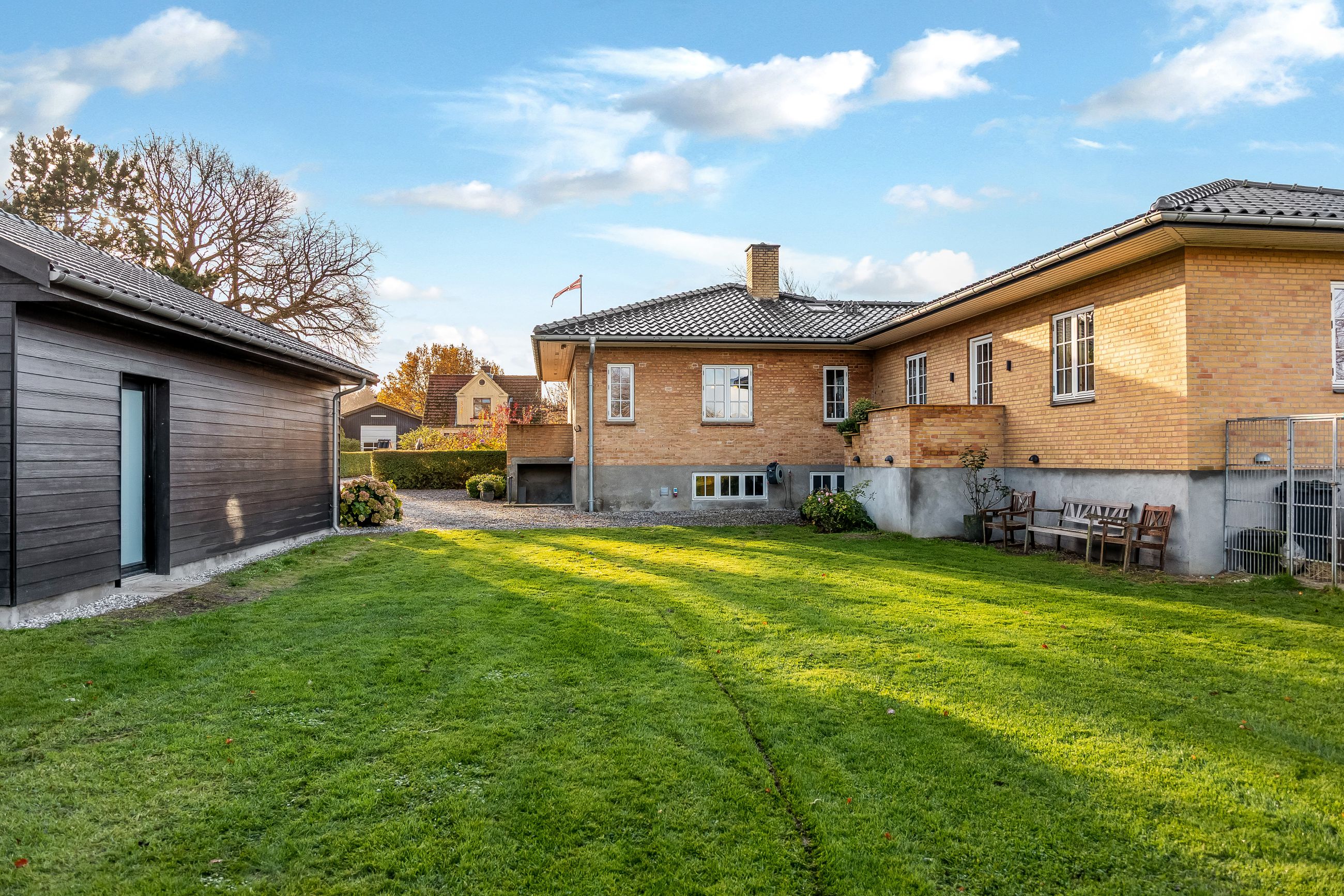 Grunden på 2.758 m2 er ikke bare stor – den er også gennemtænkt. Indkørslen leder jer elegant op til huset og den flotte, nyere garage/carport, og resten af haven breder sig ud som en grøn scene, hvor årstiderne kan spille med fuldt orkester.