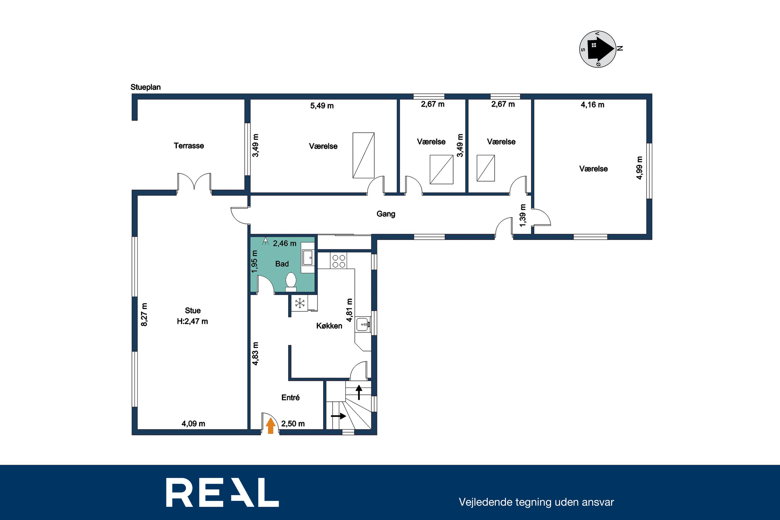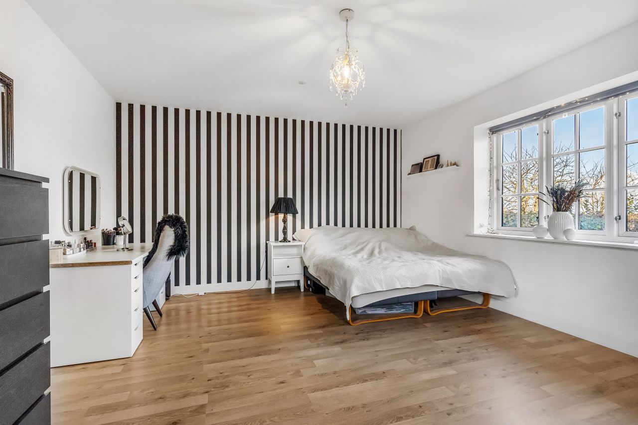 Hele 4 værelser i stueplan, så I kan indrette jer fleksibelt med soveværelse, børneværelser, gæsteværelse og kontor – alt efter, hvor I er i livet.