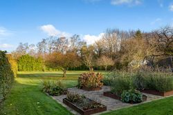 Rigtig pæn og nem beplantning med frugttræer, buske, smukke højbede og blomsterbede, der skaber læ, struktur og farver gennem hele sæsonen. Der er selvfølgelig også drivhus til dine tomater, agurker, eller hvad du ønsker at dyrke.