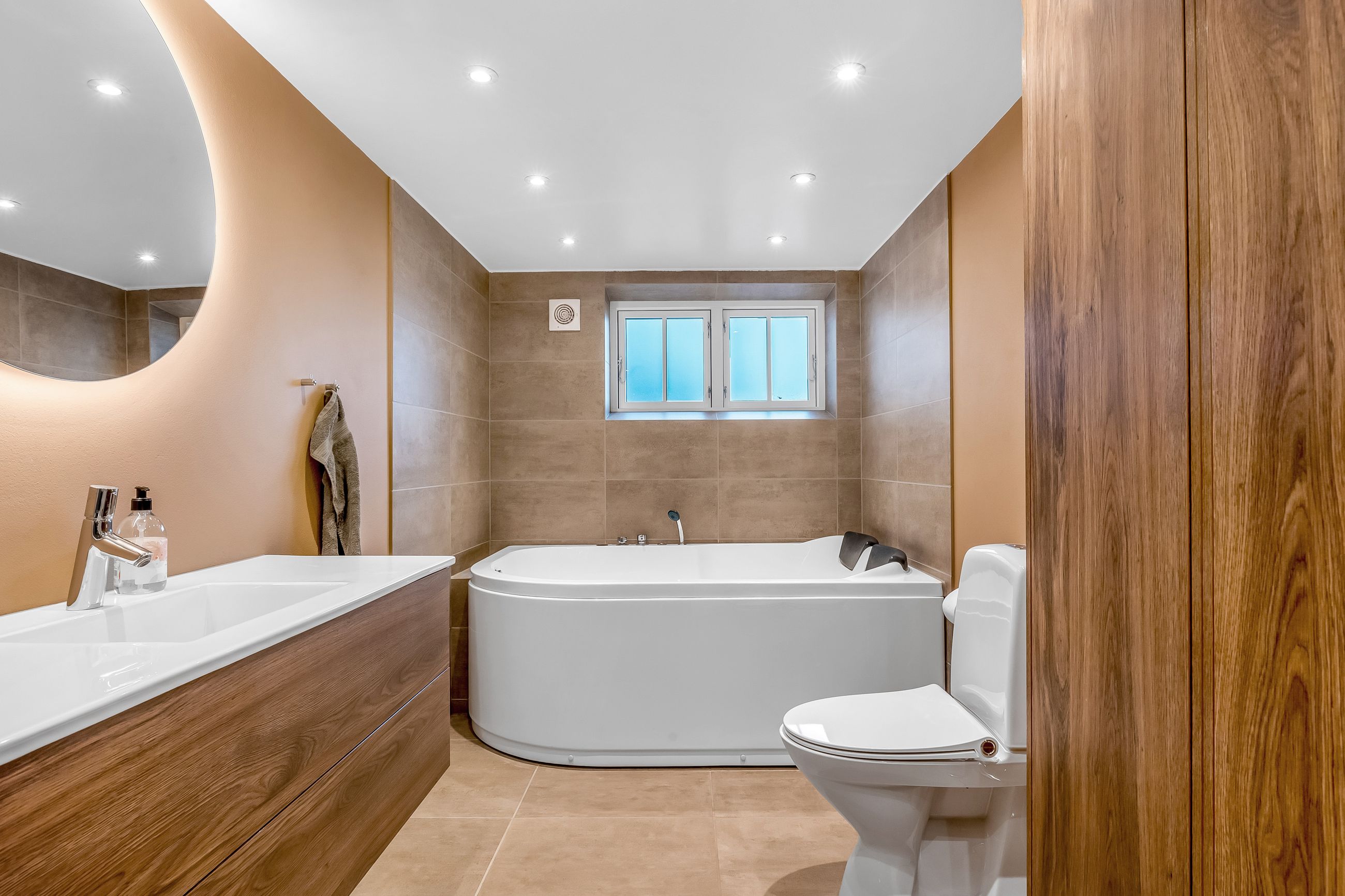 Her får I et flot moderne badeværelse med både brus og stort spabad, lækre fliser og indbydende inventar – det rene wellness-rum til de kolde vinteraftener eller lange sommerbade, når man kommer hjem fra stranden. 2 gode disponible rum med faste skabe, pæne trægulve og fornuftig loftshøjde – oplagt til hobby, hjemmegym, kreativt værksted, stor garderobe eller teenage-/gæsterum. Der er gulvvarme i badeværelse og værelserne!