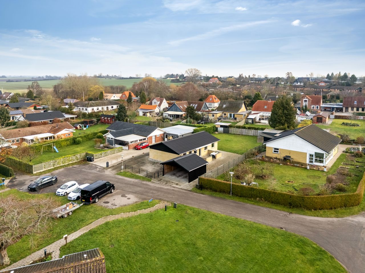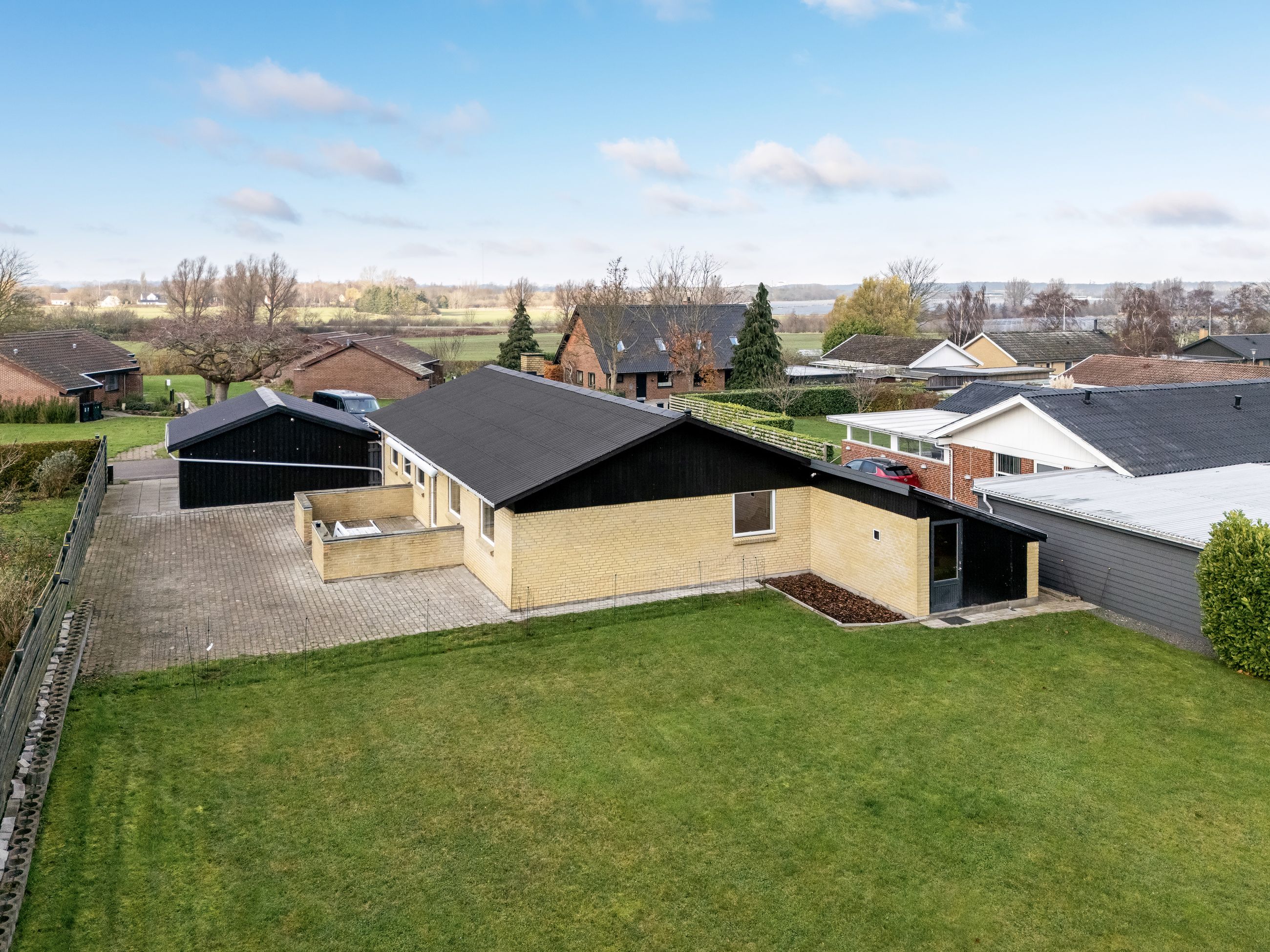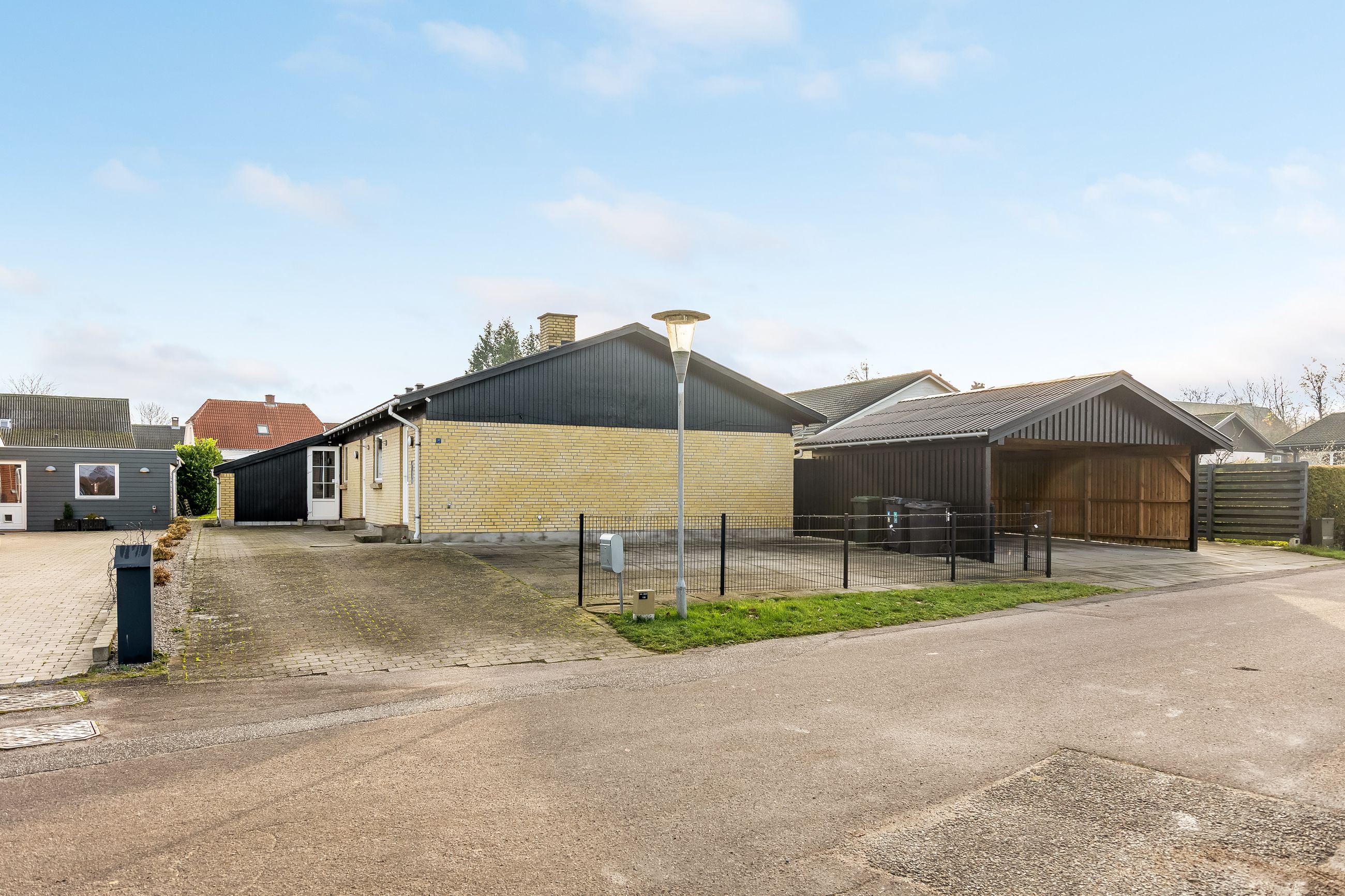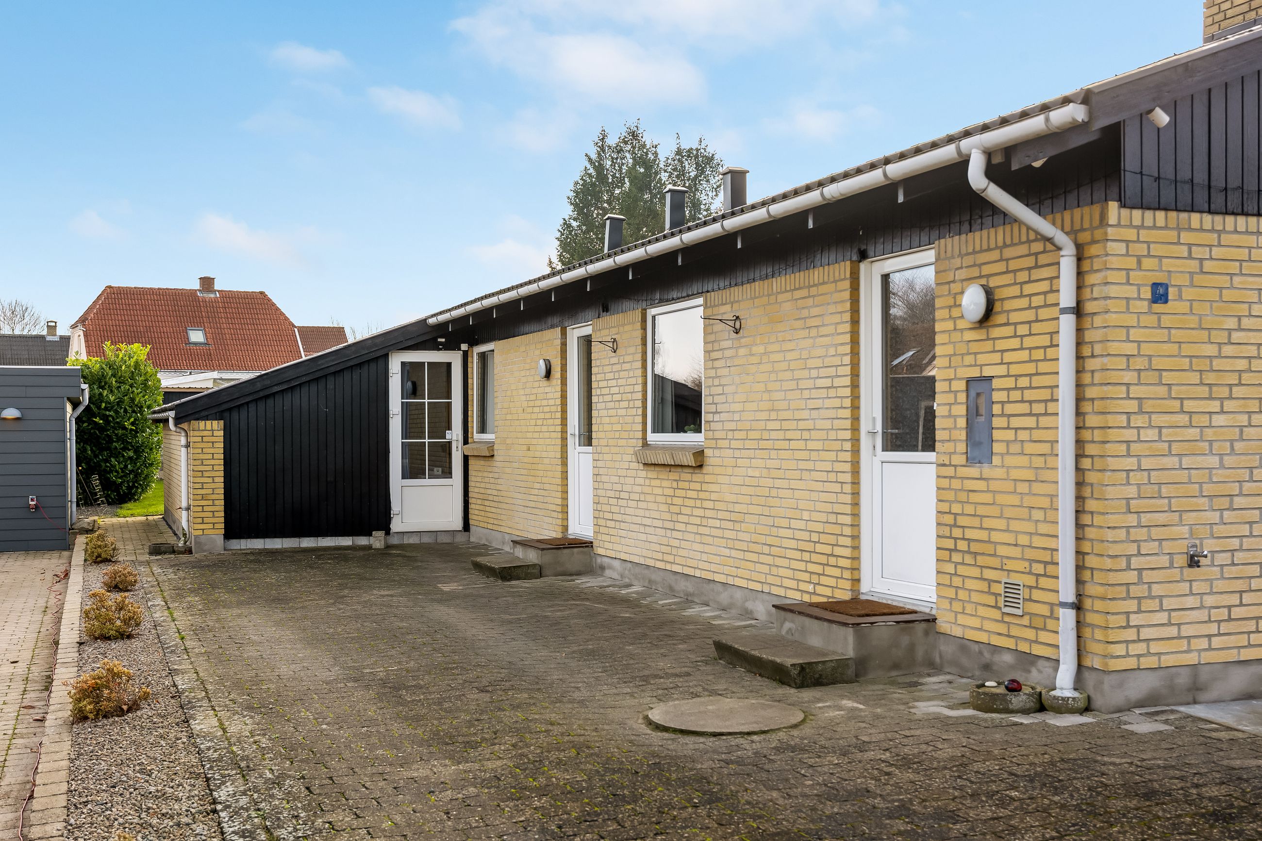 Udenfor får I rigtig meget med i pakken: Foran huset ligger en stor indkørsel og en flot dobbeltcarport fra 2021 på ca. 25 m2 så både biler, cykler og barnevogn står tørt. Derudover er der udhus/disponible rum på ca. 25 m2 i forlængelse af huset som kan bruges til værksted, hobby, opbevaring – eller det hele på én gang.