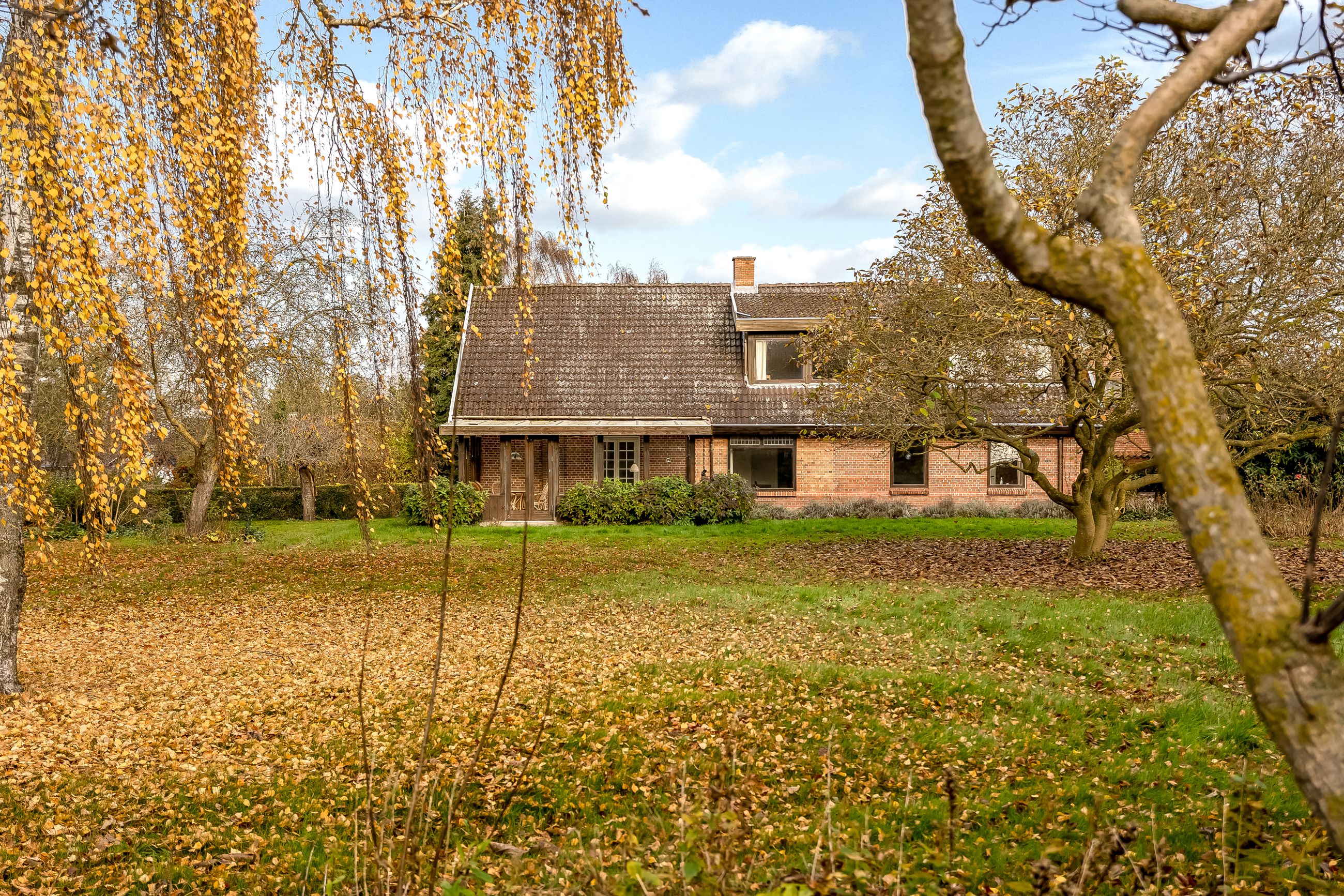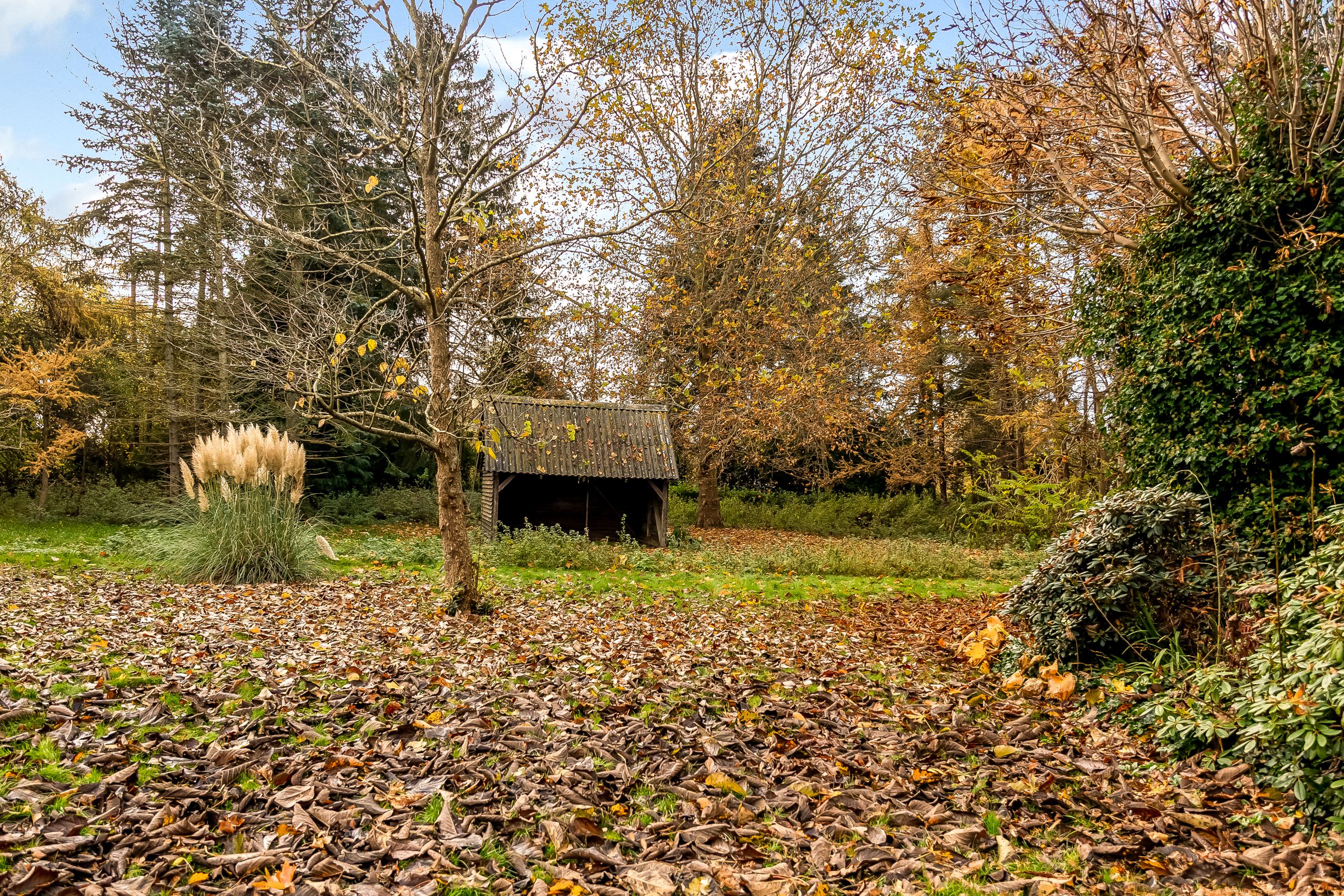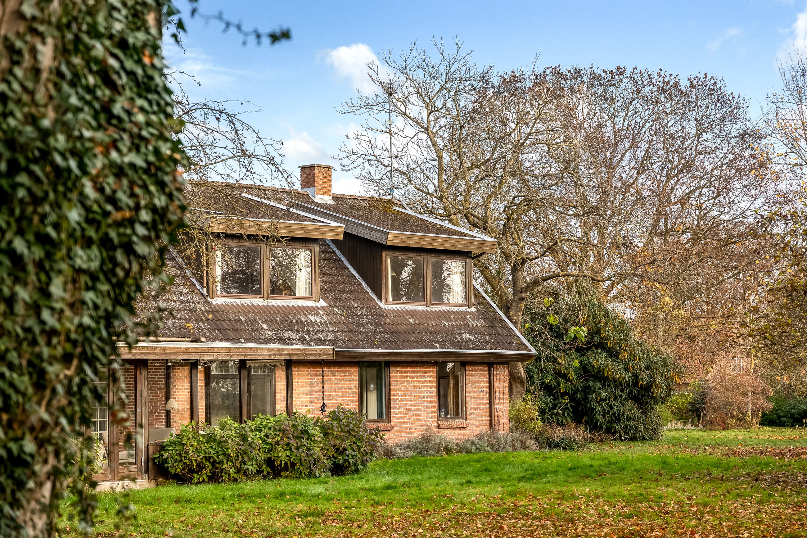 Når I drejer ind i grusindkørslen, mødes I af stuehuset mod vejen, indrammet af gamle træer, frugttræer og grønne hække. Bagved åbner grunden sig som en blanding af park, have og naturgrund med sø, pavillon og vilde hjørner, hvor børnene kan forsvinde ud i legen.