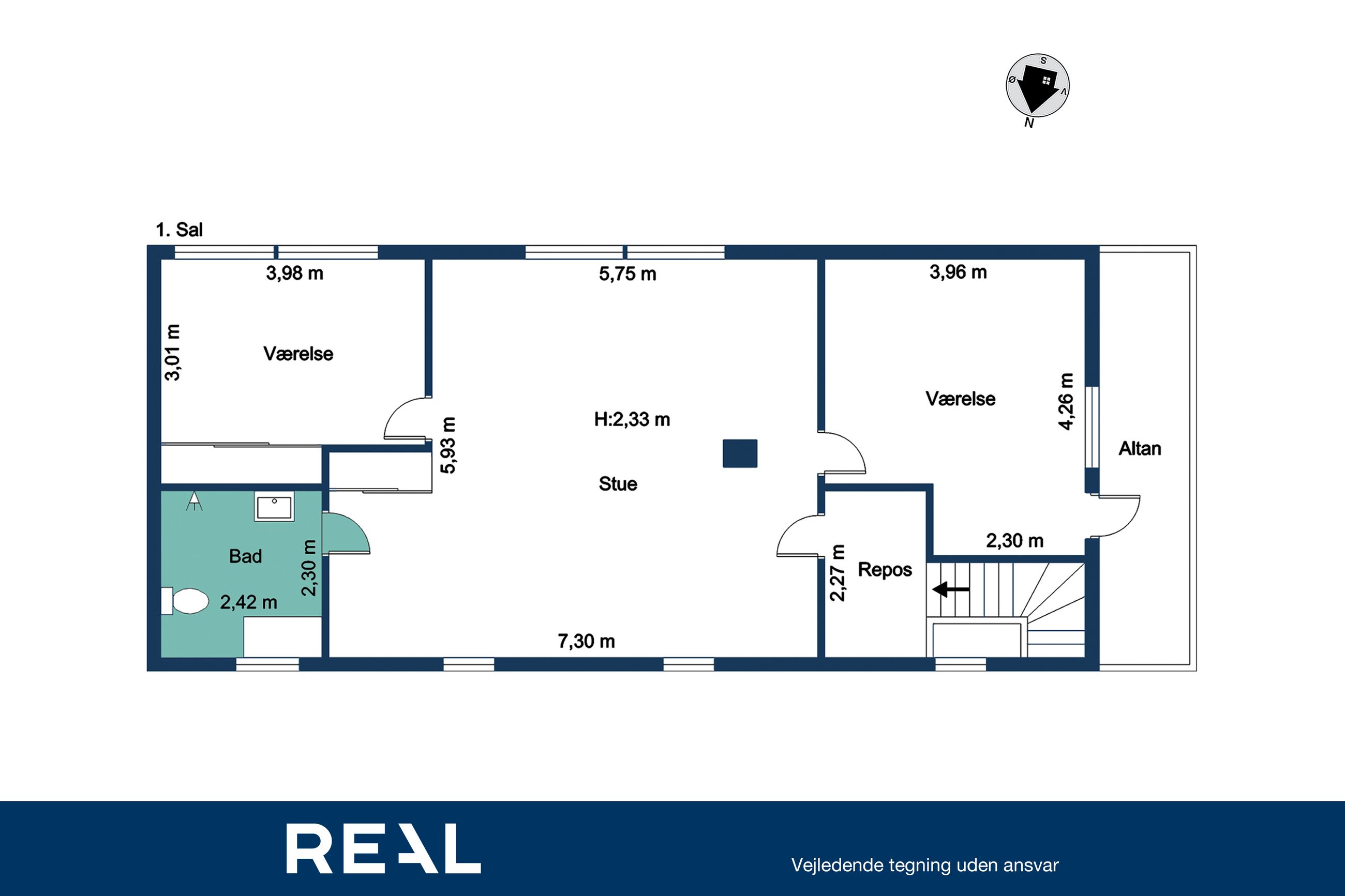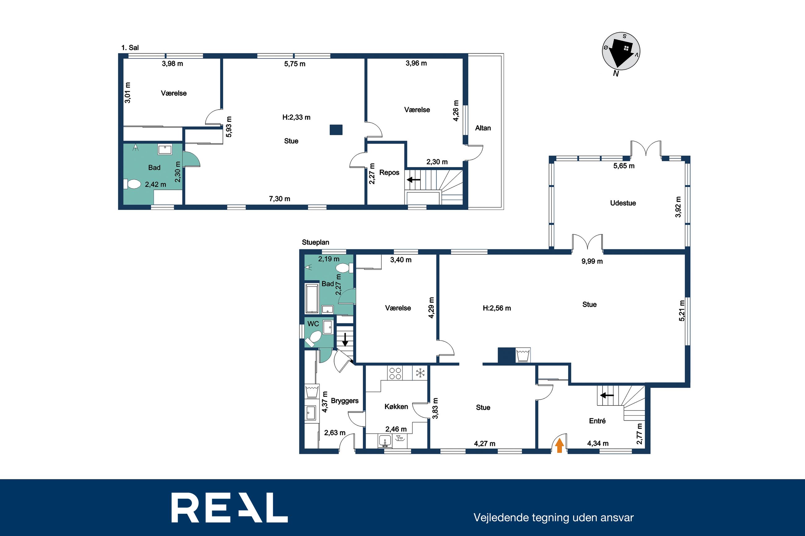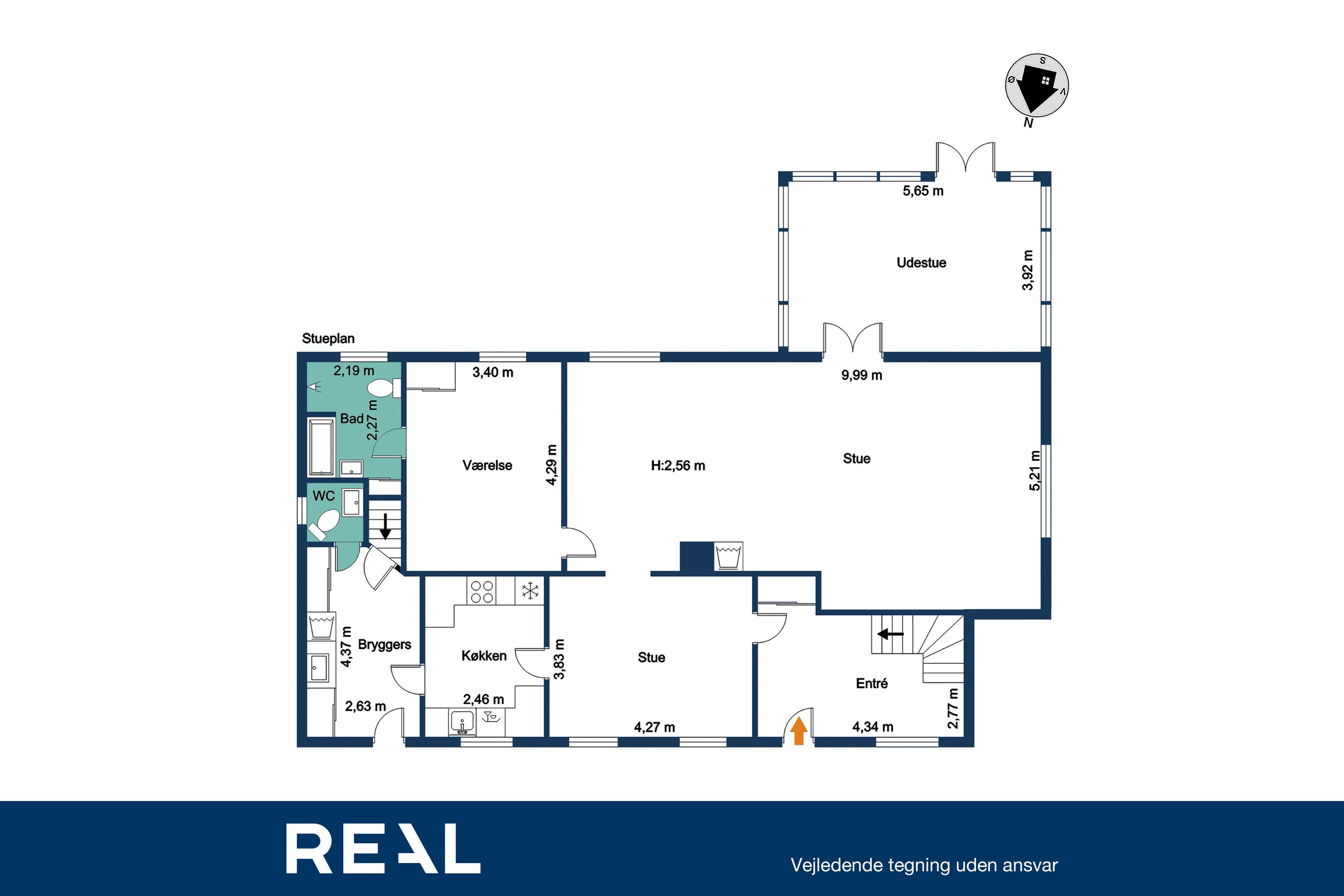 Ekstra stue/spisestue mod gårdspladsen – oplagt som legeområde til børnene, langbord til gæster eller kombineret spise- og opholdsstue. Eller et ekstra værelse?