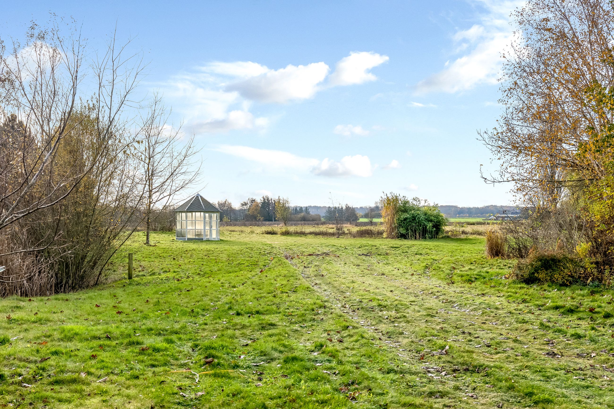 Midt i det grønne står den hyggelige hvide pavillon, der nærmest skriger på eftermiddagskaffe, brætspil og tæpper på kølige sommeraftener. Herfra har I udsigt ud over jeres eget lille landskab – og måske kommende hestefolde.
