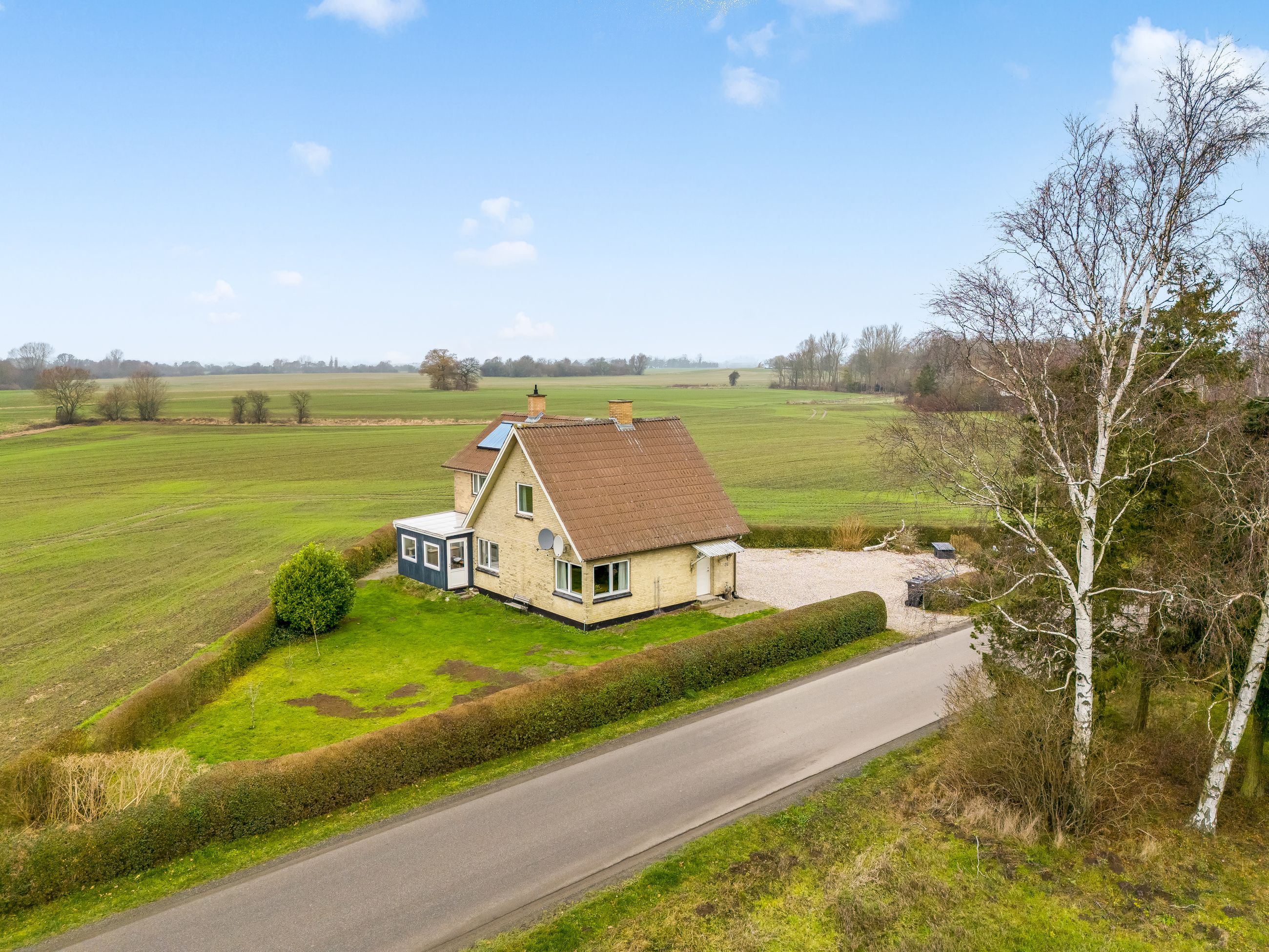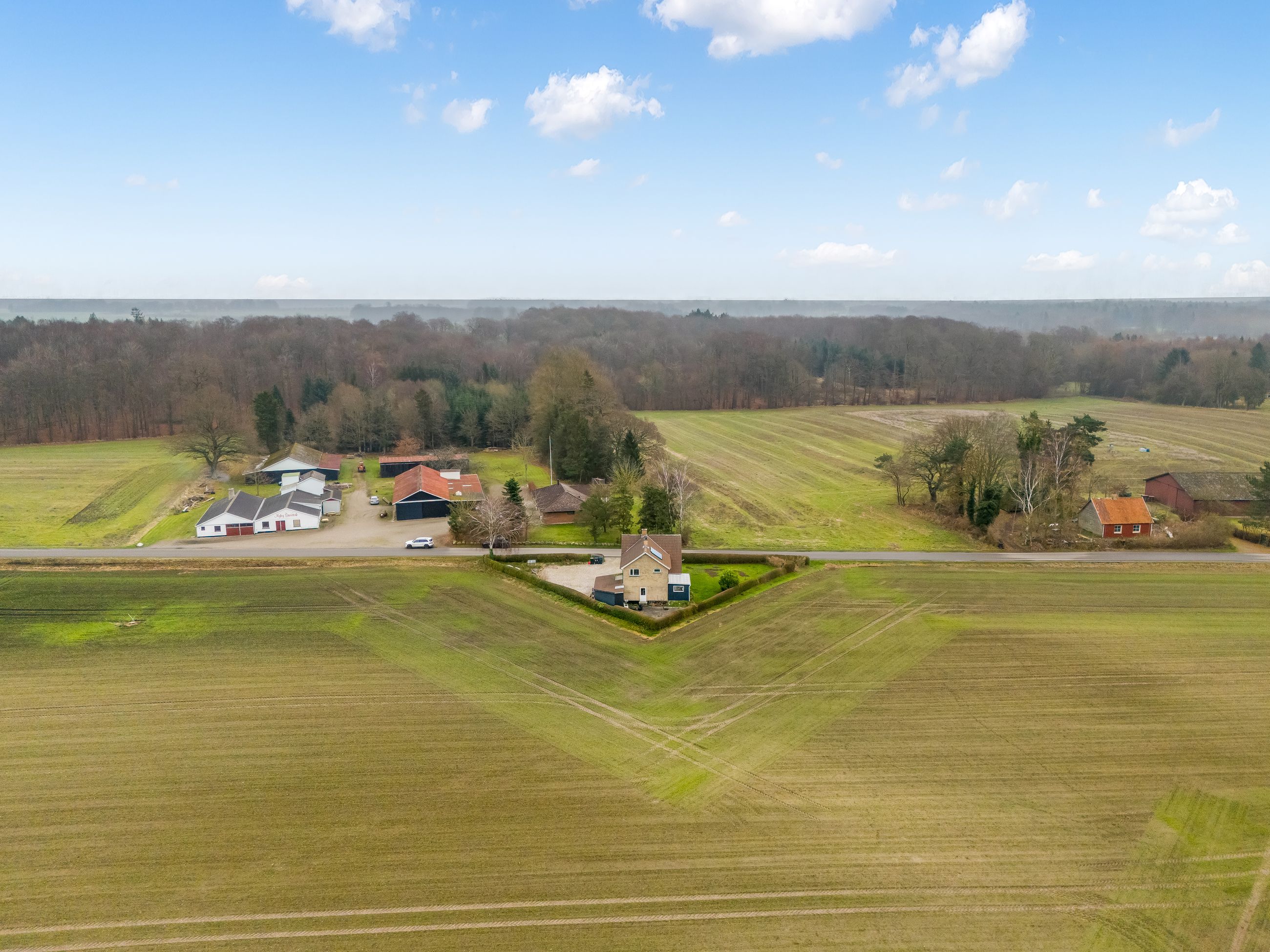 Huset ligger midt i det åbne landskab på Midtfalster, omgivet af marker hele vejen rundt og med skovbryn få hundrede meter fra ejendommen. Her er en helt særlig ro, hvor du hver dag kan følge årstidernes skiften på markerne, se råvildt i aftenskumringen og nyde de mest betagende solnedgange, der farver himlen i varme orange nuancer. Alligevel er hverdagen praktisk indrettet: Der er kun ca. 10 minutters kørsel til Nykøbing F., og herfra er der ikke langt til indkøb, skole og station i Eskilstrup. Motorvejen mod Rødby og København nås efter cirka 5 km. Hannenov Statsskov ligger kun få minutter fra huset, og du har desuden både Virket Lyng og skovbørnehaven Søruphus i nærområdet.