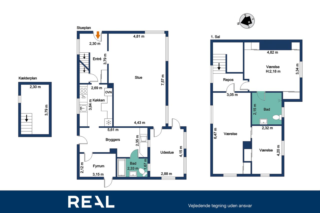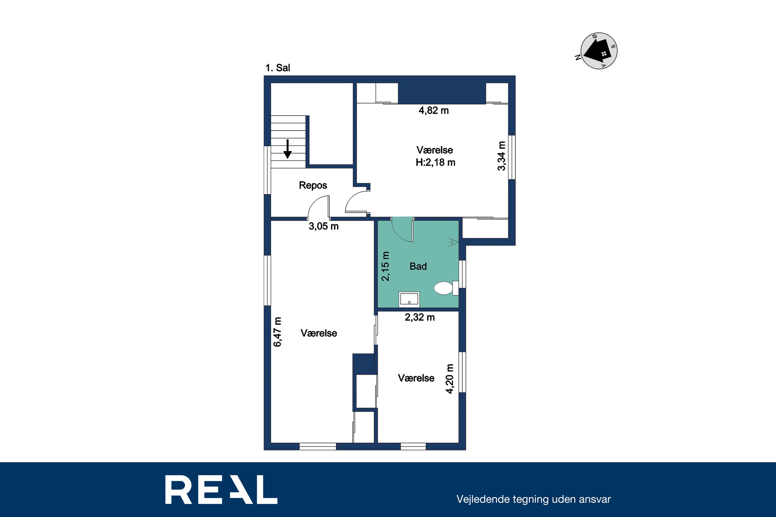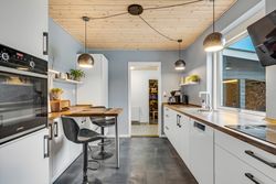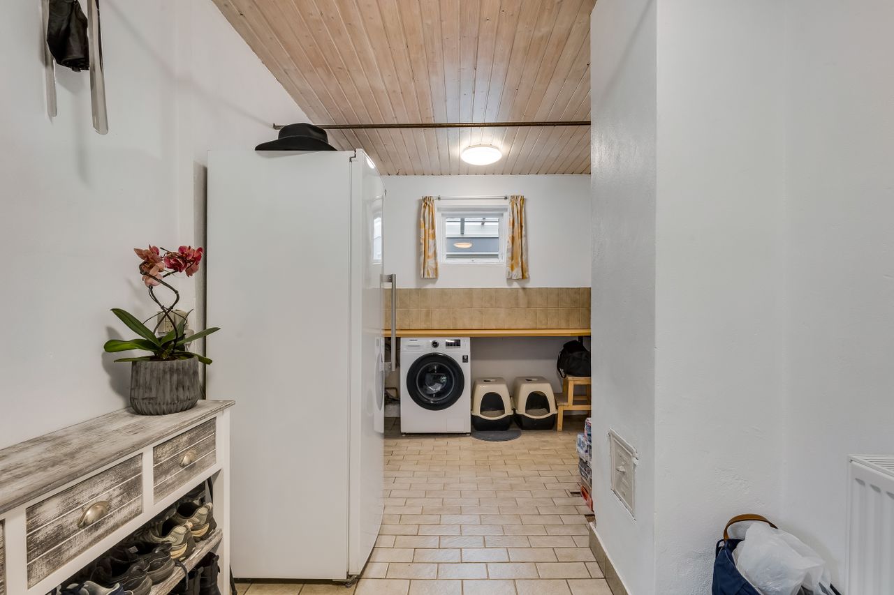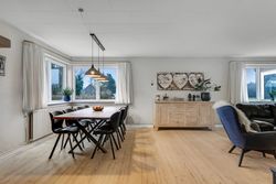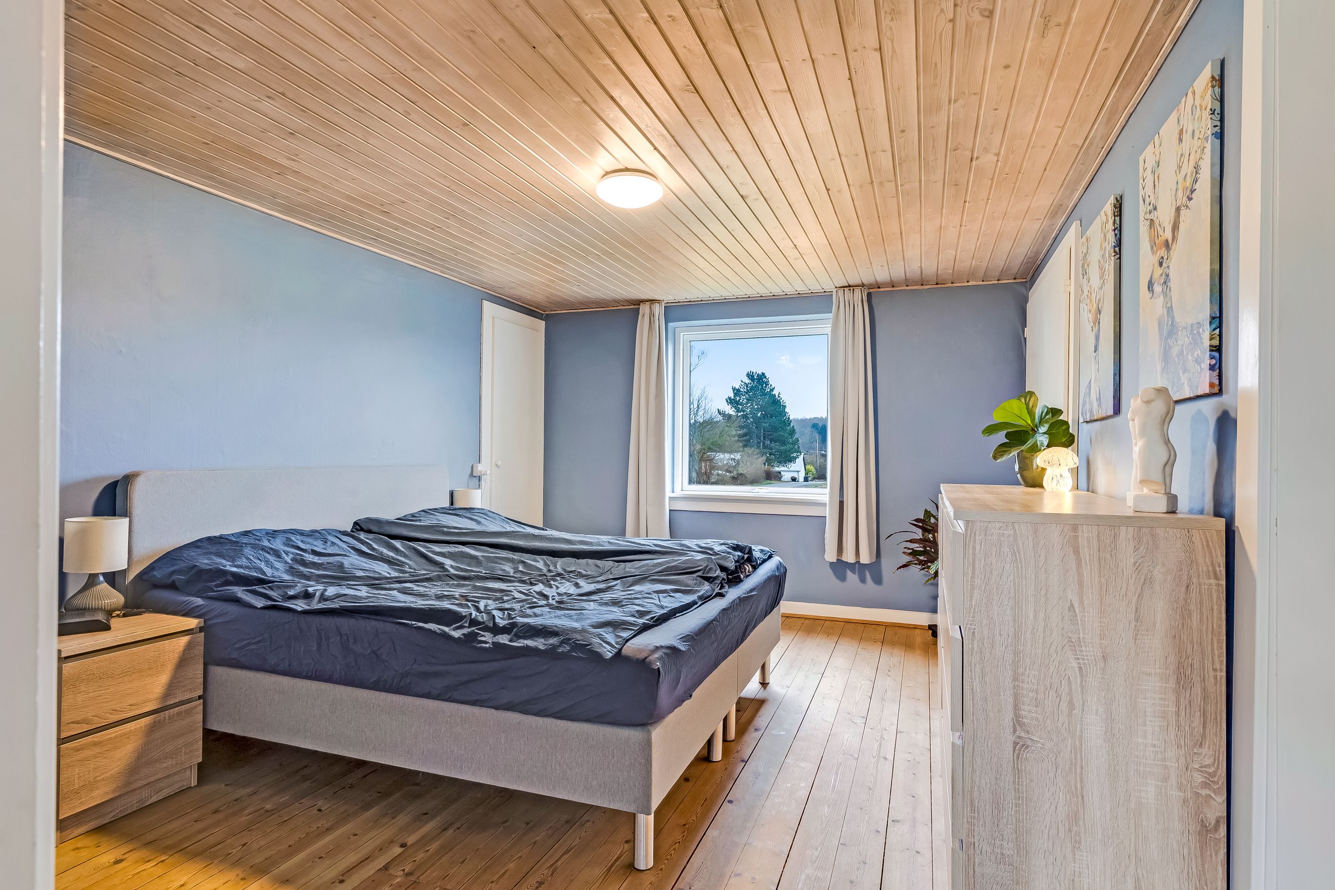 På første sal venter en repos, tre gode værelser og endnu et badeværelse. Indretningen giver fine muligheder, uanset om du drømmer om børneværelser, kontor og gæsteværelse til helårsbrug, eller om huset primært skal fungere som flexbolig med plads til familie og venner i weekender og ferier.