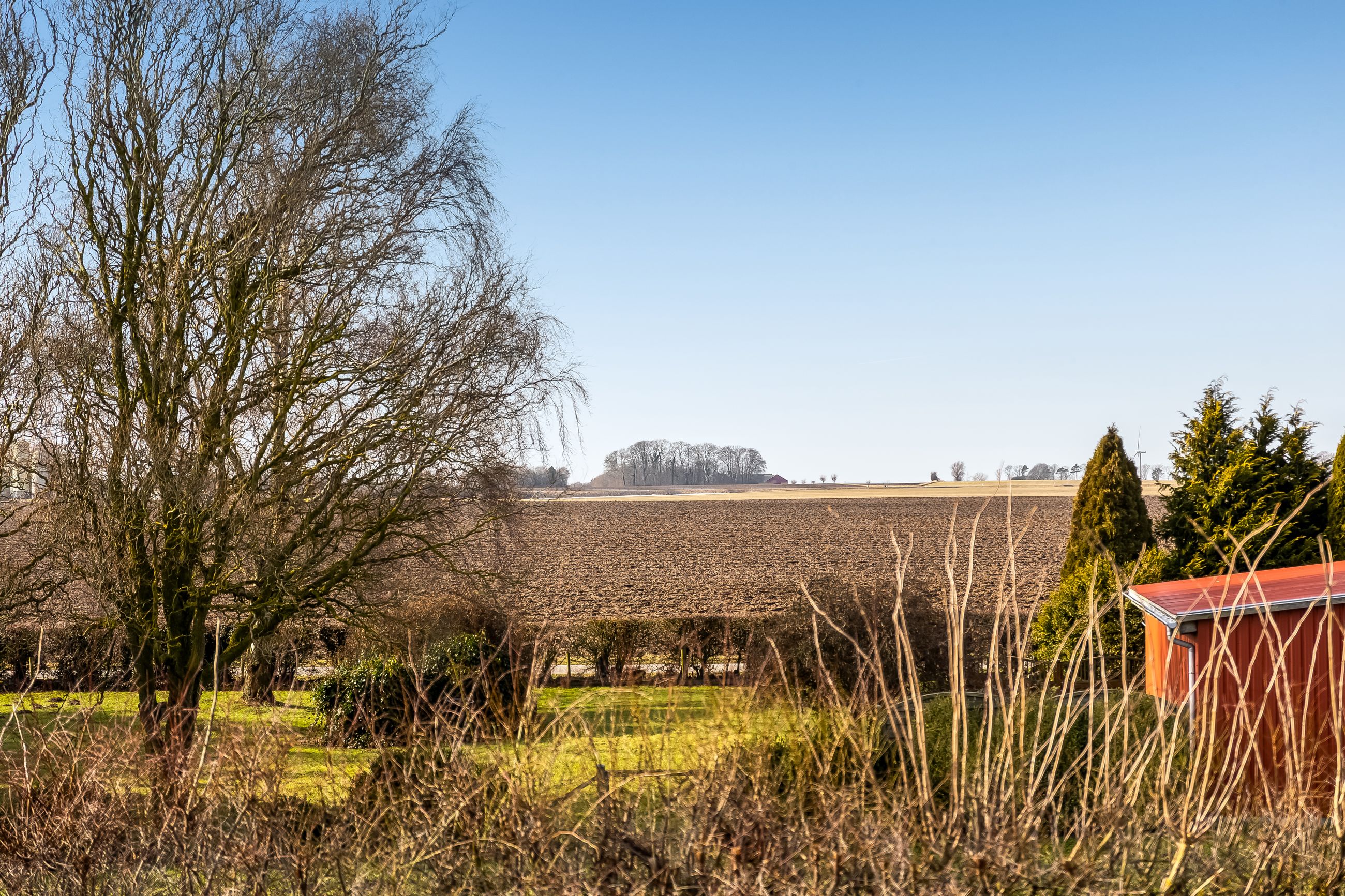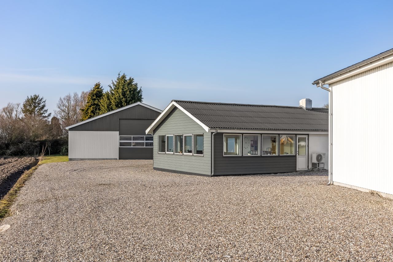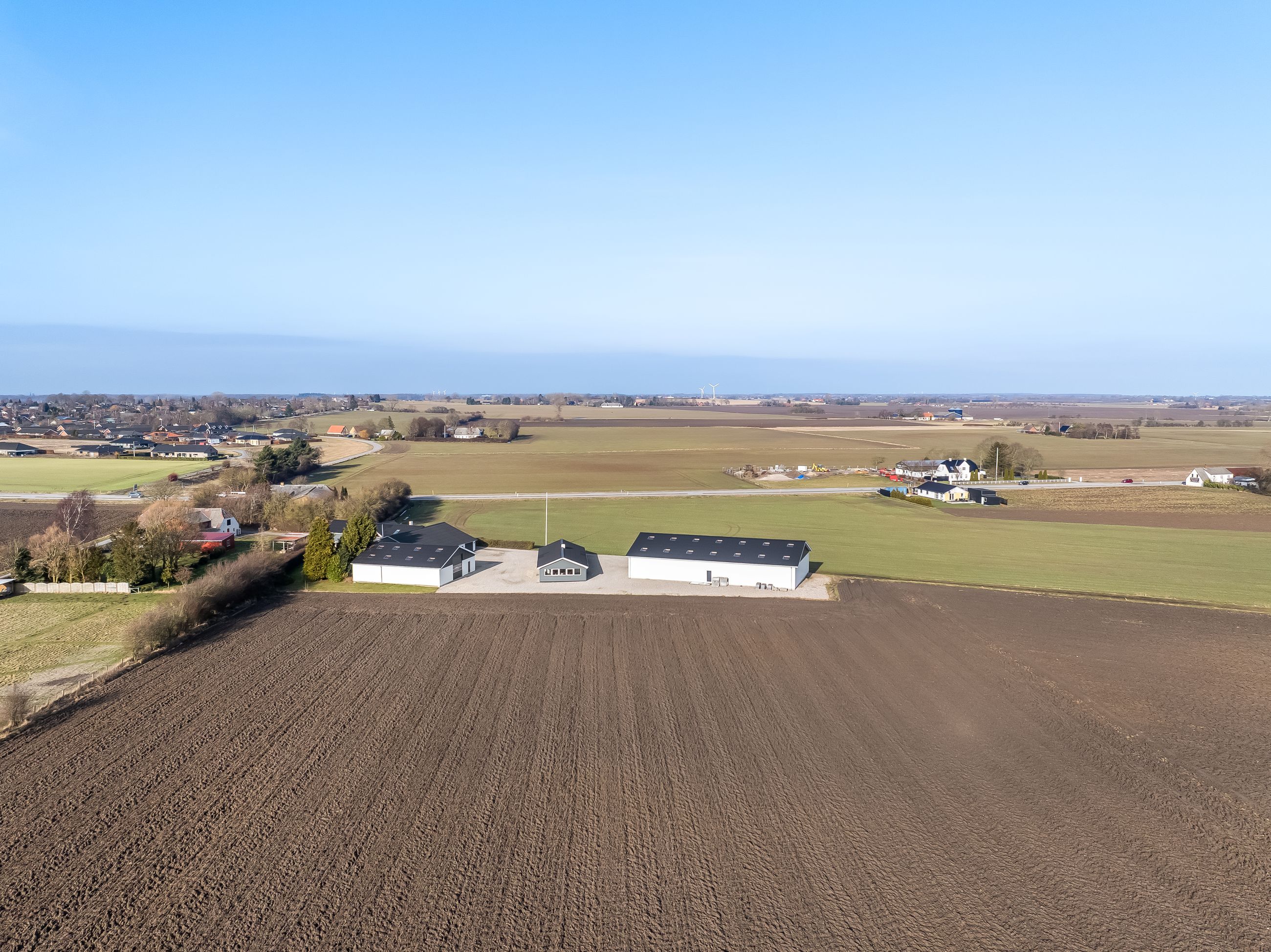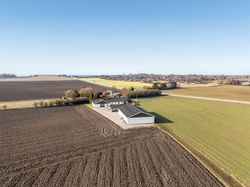 Allerede ved ankomsten mærker man roen. Åbne marker omkring jer, himmel så langt øjet rækker og en grund på 3.705 m2, der giver luft, frihed og masser af plads til både privatliv og aktivitet.