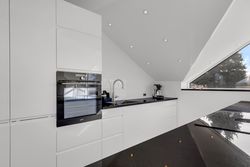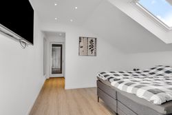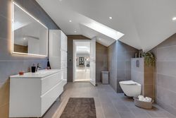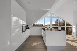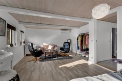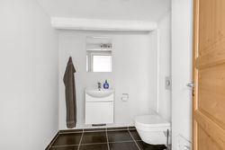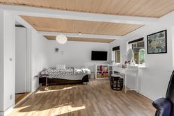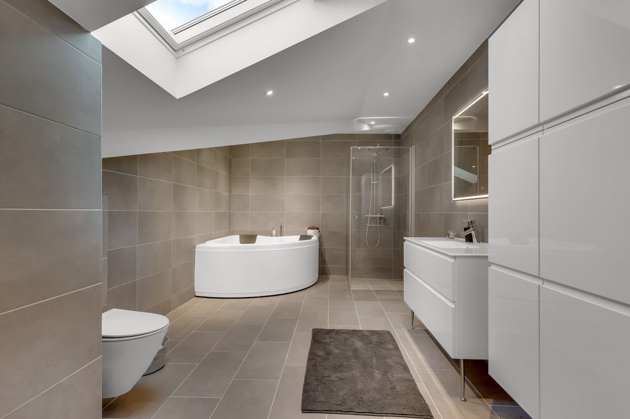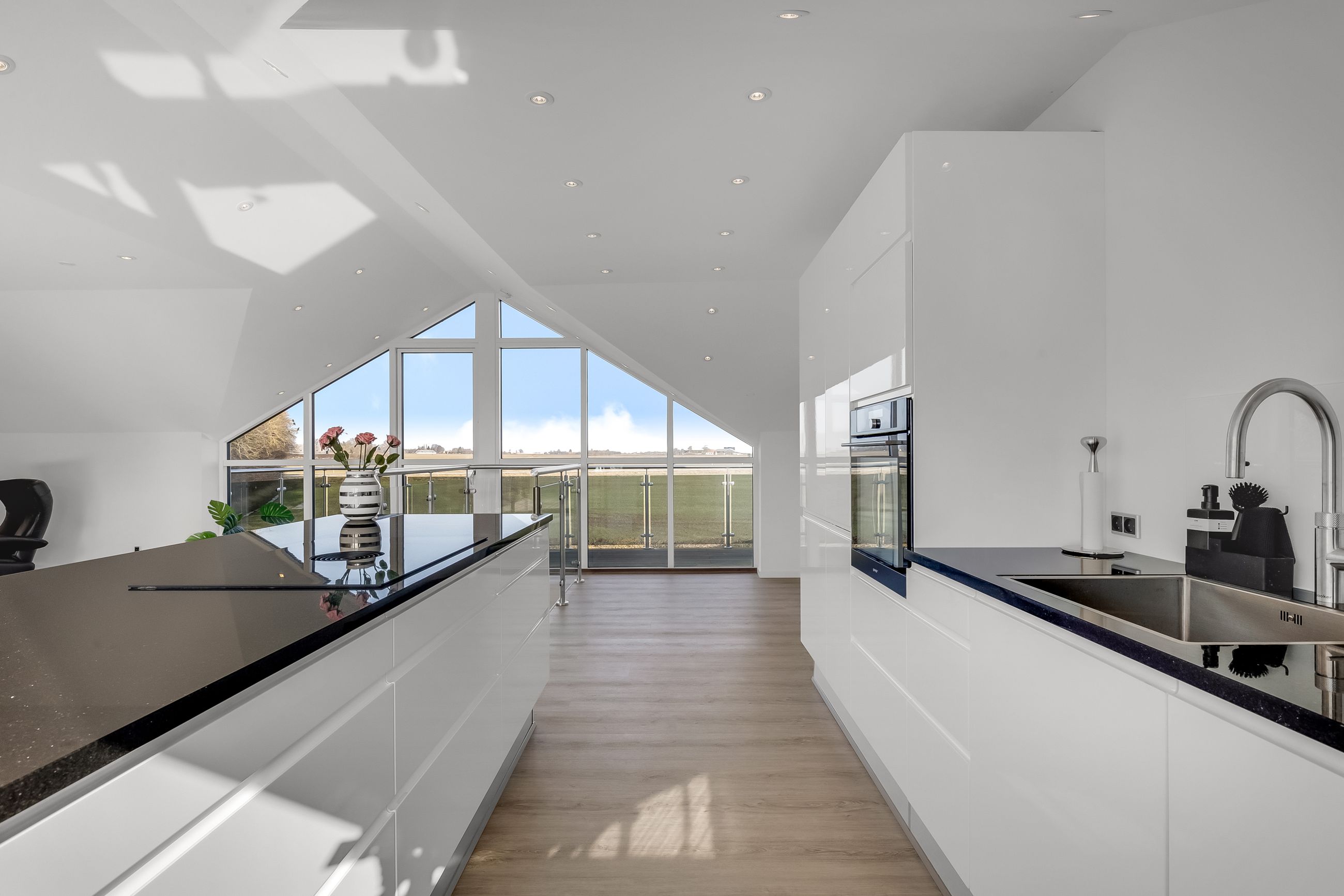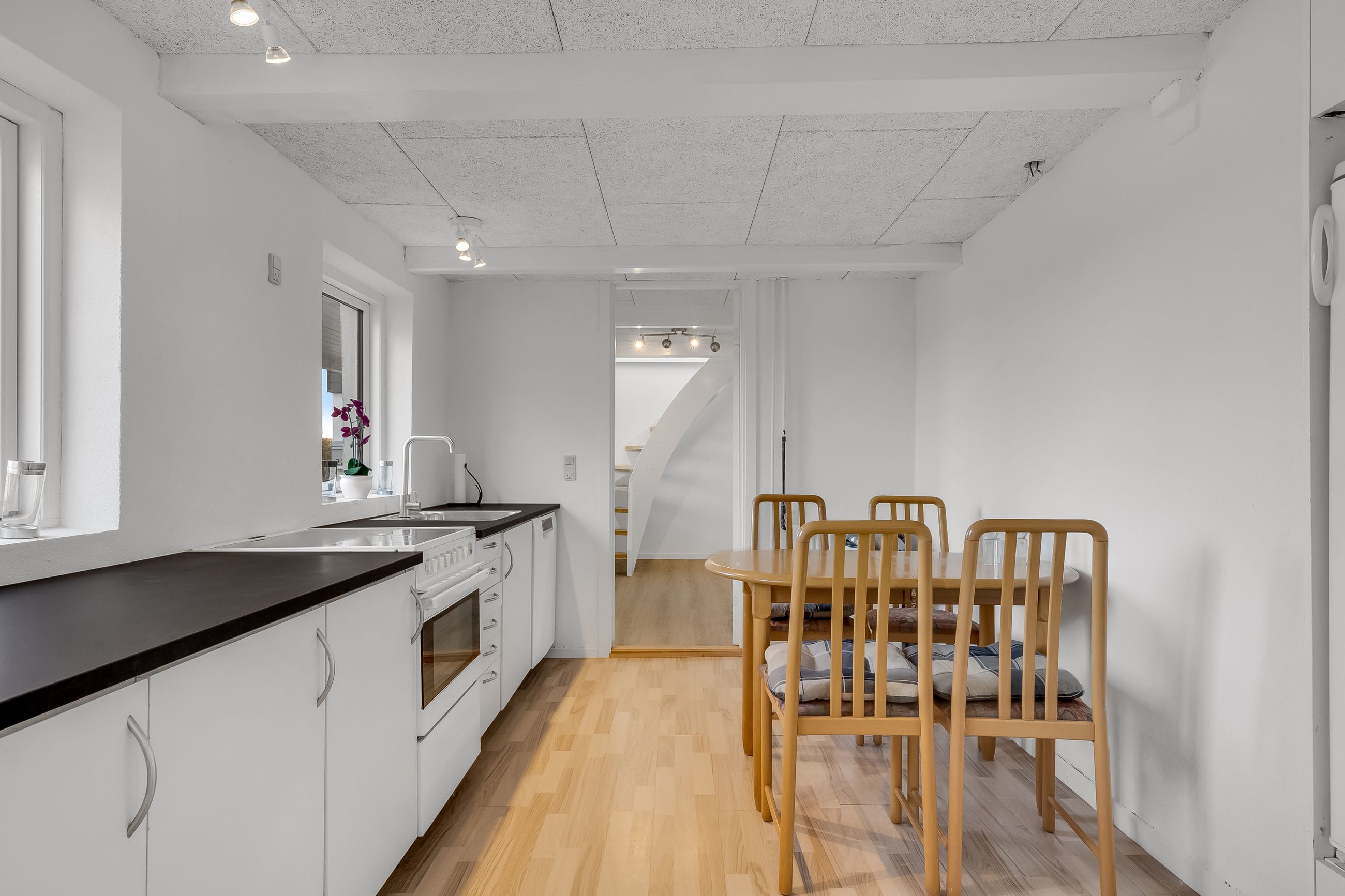 Køkkenet ligger i åben forbindelse med alrum og stue og danner et naturligt samlingspunkt i hjemmet – et rum hvor hverdagen leves og gæster samles. Forældresoveværelset med walk-in samt badeværelset med både bruseniche og hjørnebadekar skaber en følelse af privat oase. Alt er lavet i absolut topklasse håndværk og materialer.