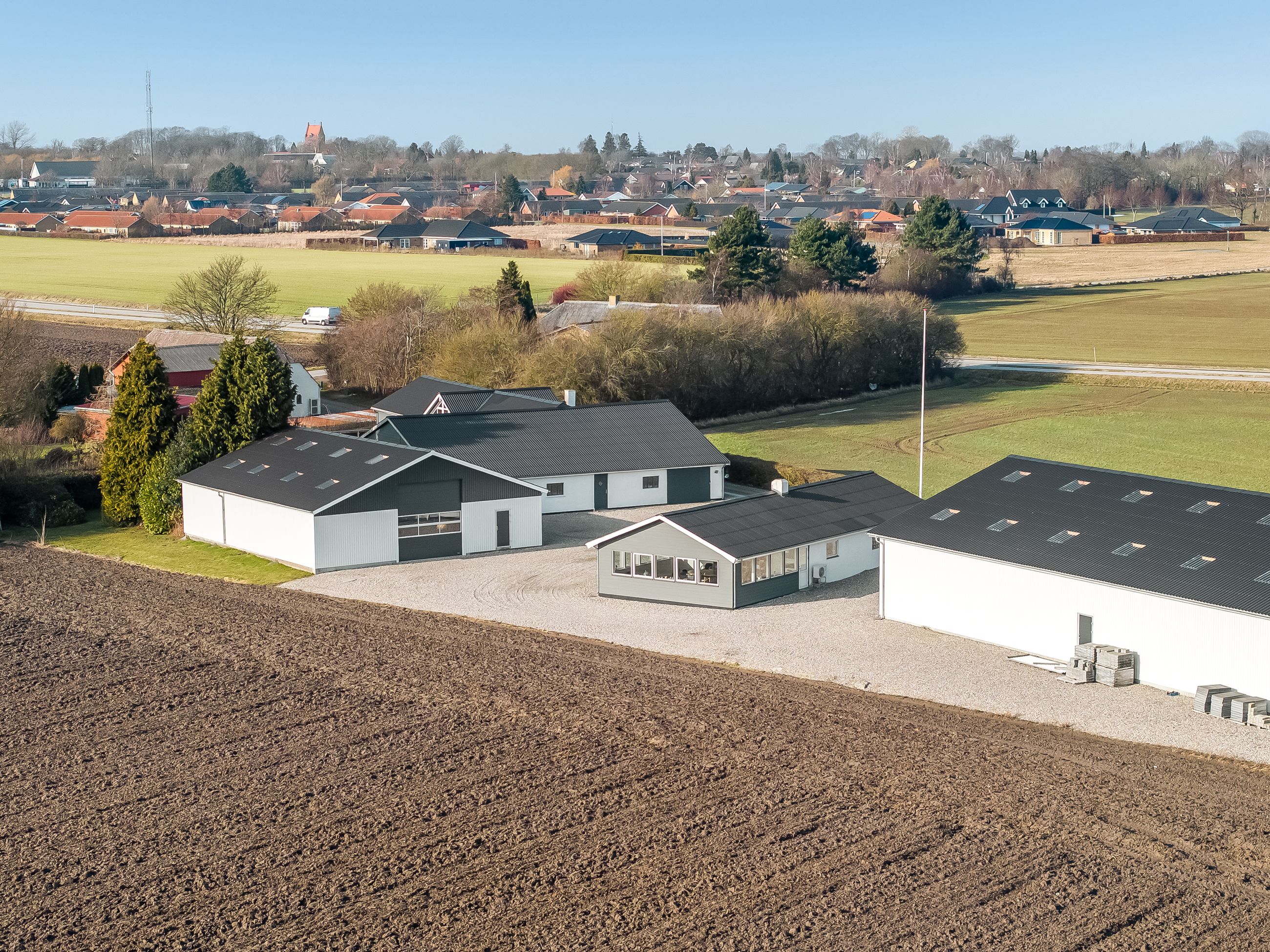 Fra ejendommen er der gennem årene drevet en succesfuld totalbyg-virksomhed, og rammerne til erhverv er derfor allerede etableret. Her findes flotte kontorfaciliteter samt gode personaleforhold, som gør ejendommen oplagt til virksomheder, der ønsker at kombinere bolig og drift på samme adresse.