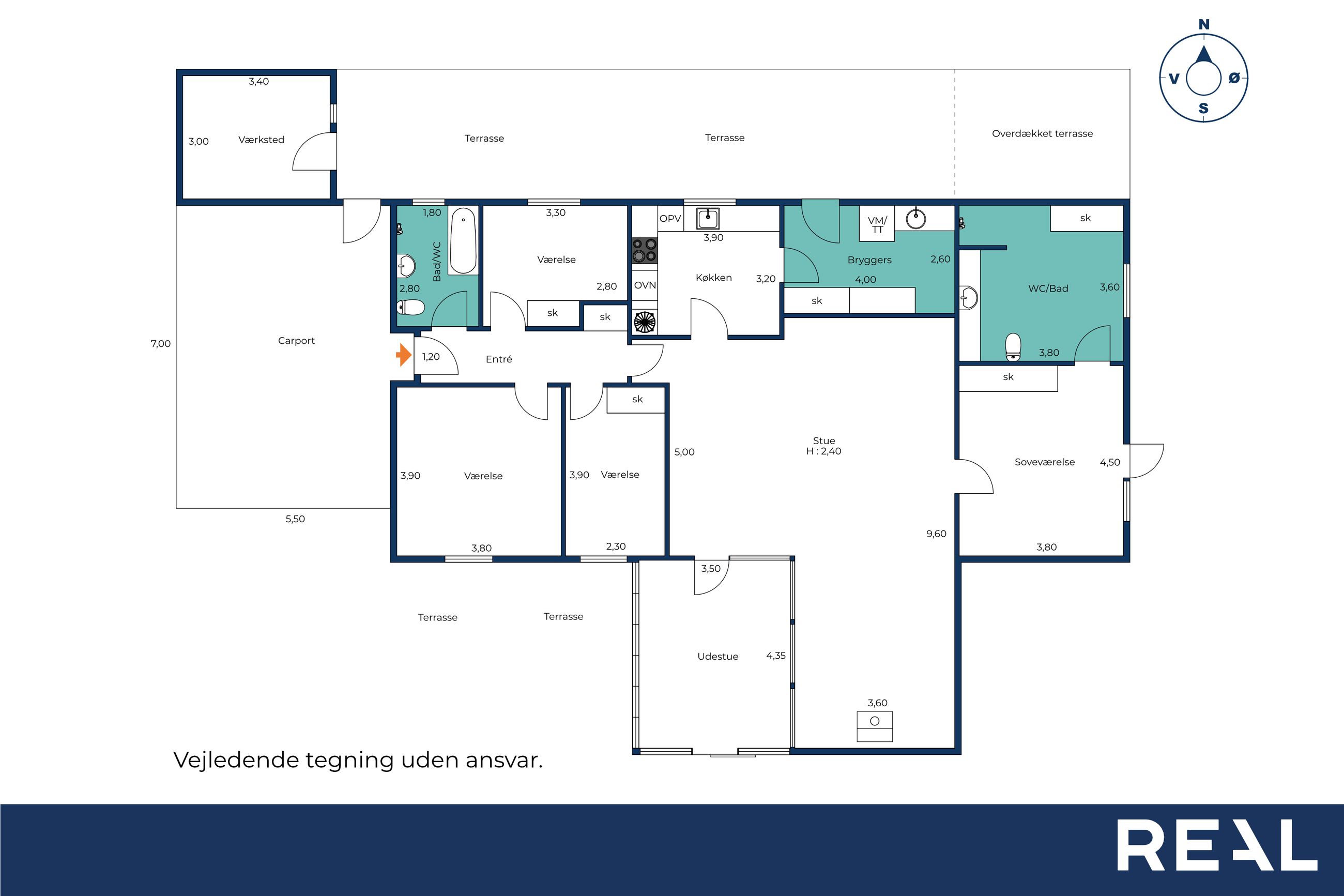 Derudover får I et praktisk bryggers med plads til vask og hverdagens logistik, samt en udestue, der forlænger sæsonerne og giver et ekstra rum til kaffe, planter og små pauser i solen.
