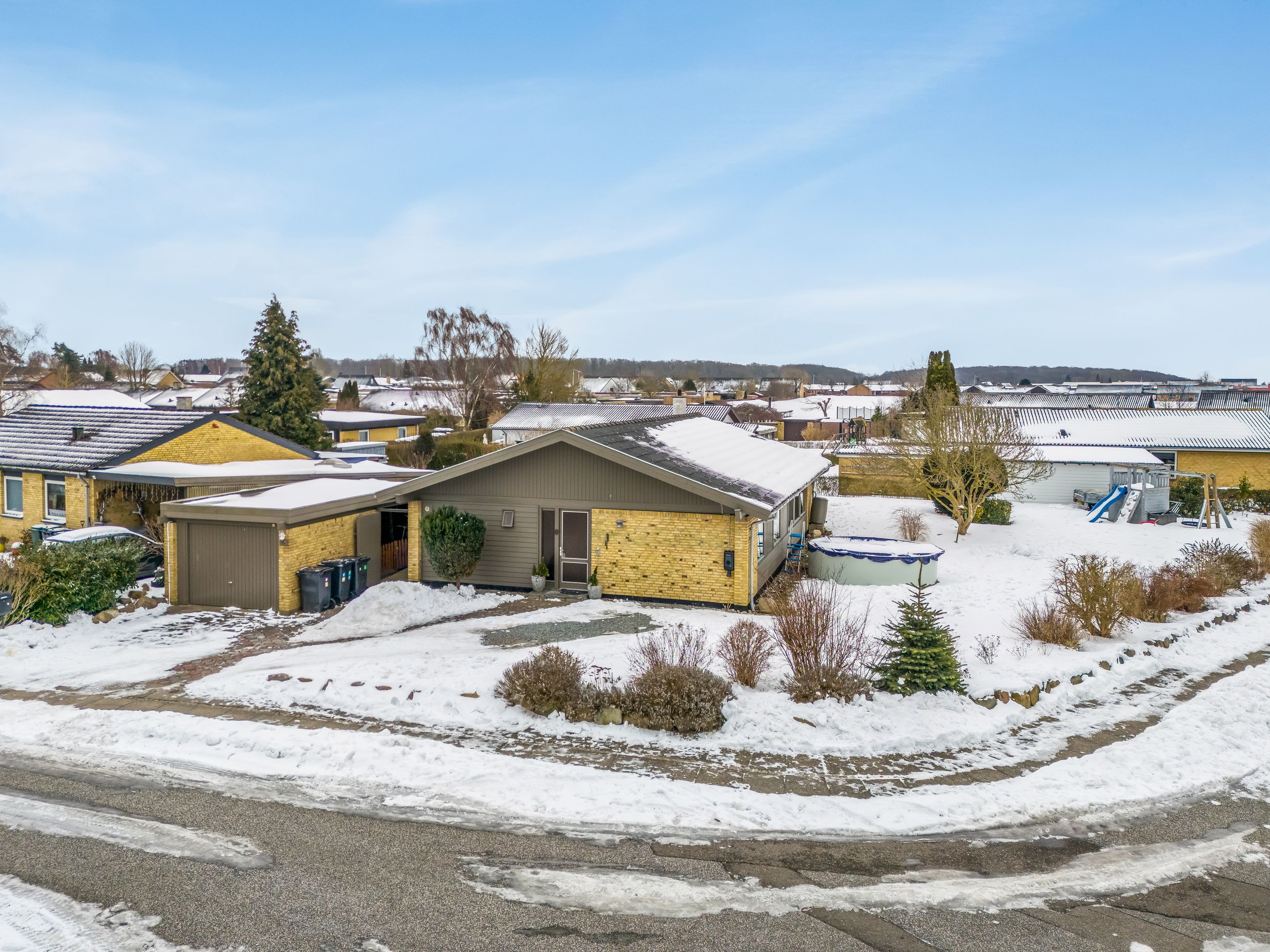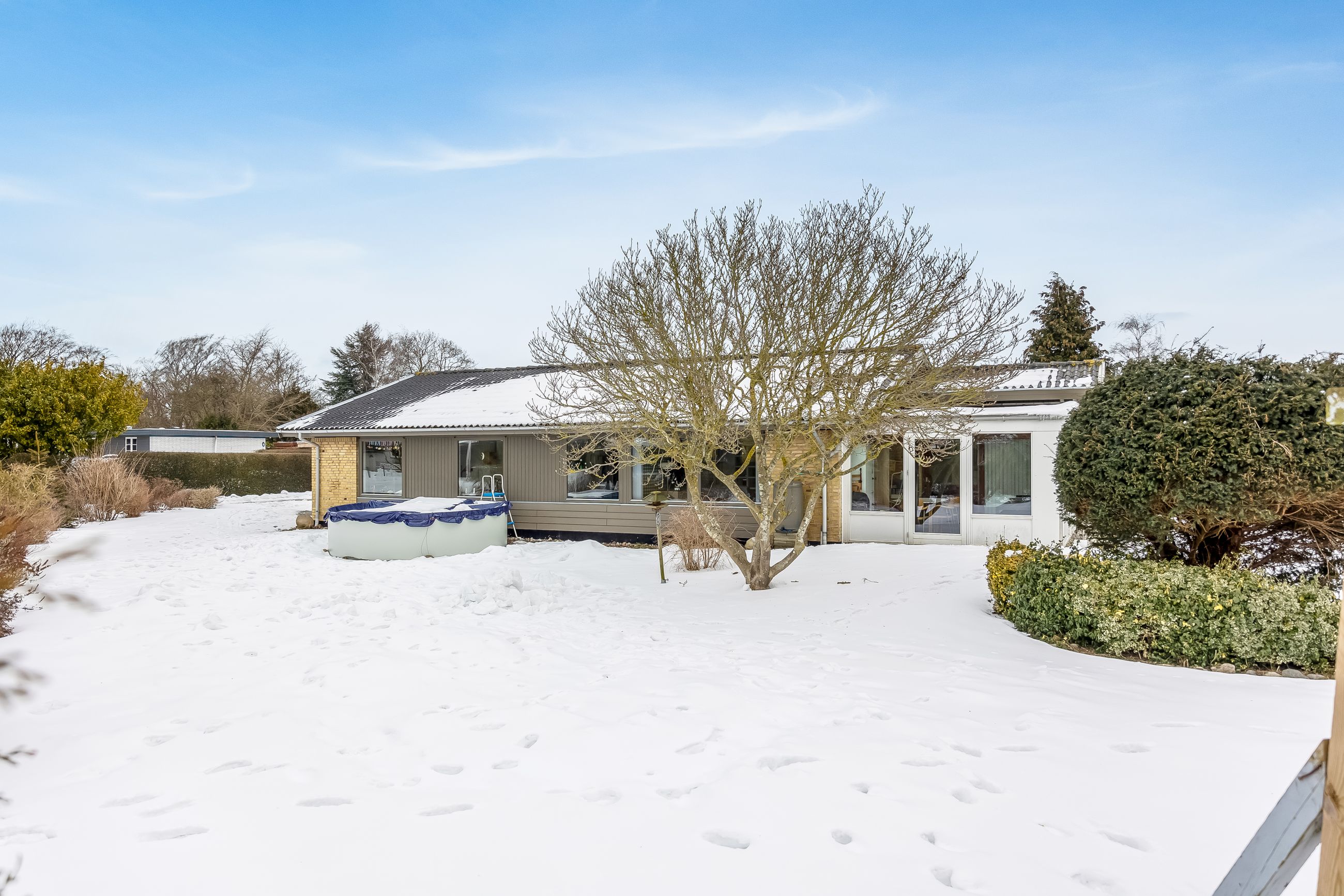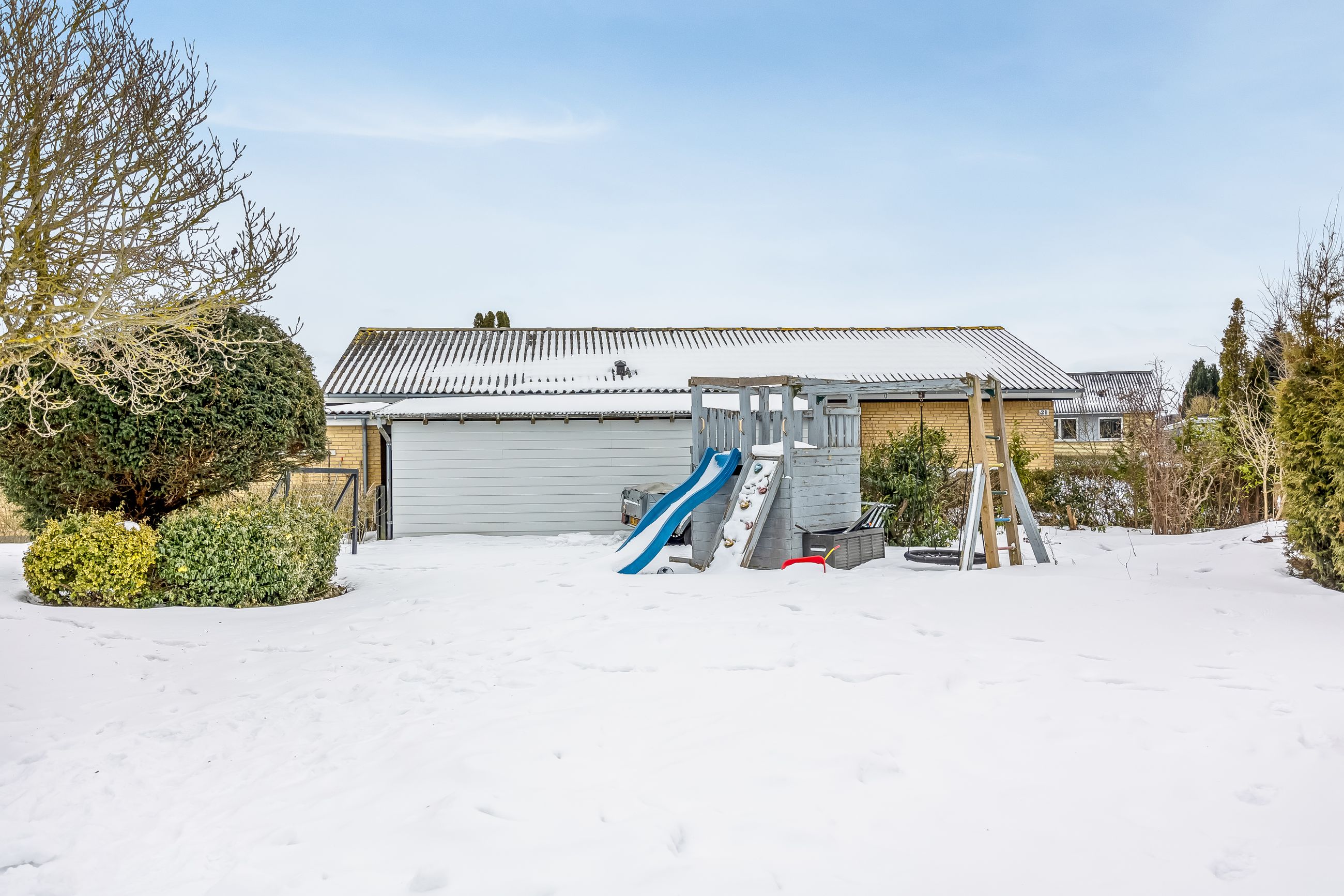 Haven er stor, privat og lige til at tage i brug. Her er plads til trampolin, boldspil, gemmeleg og sommergrill. Det er haven, hvor børnene får røde kinder – og hvor forældrene kan sidde på terrassen og følge med.