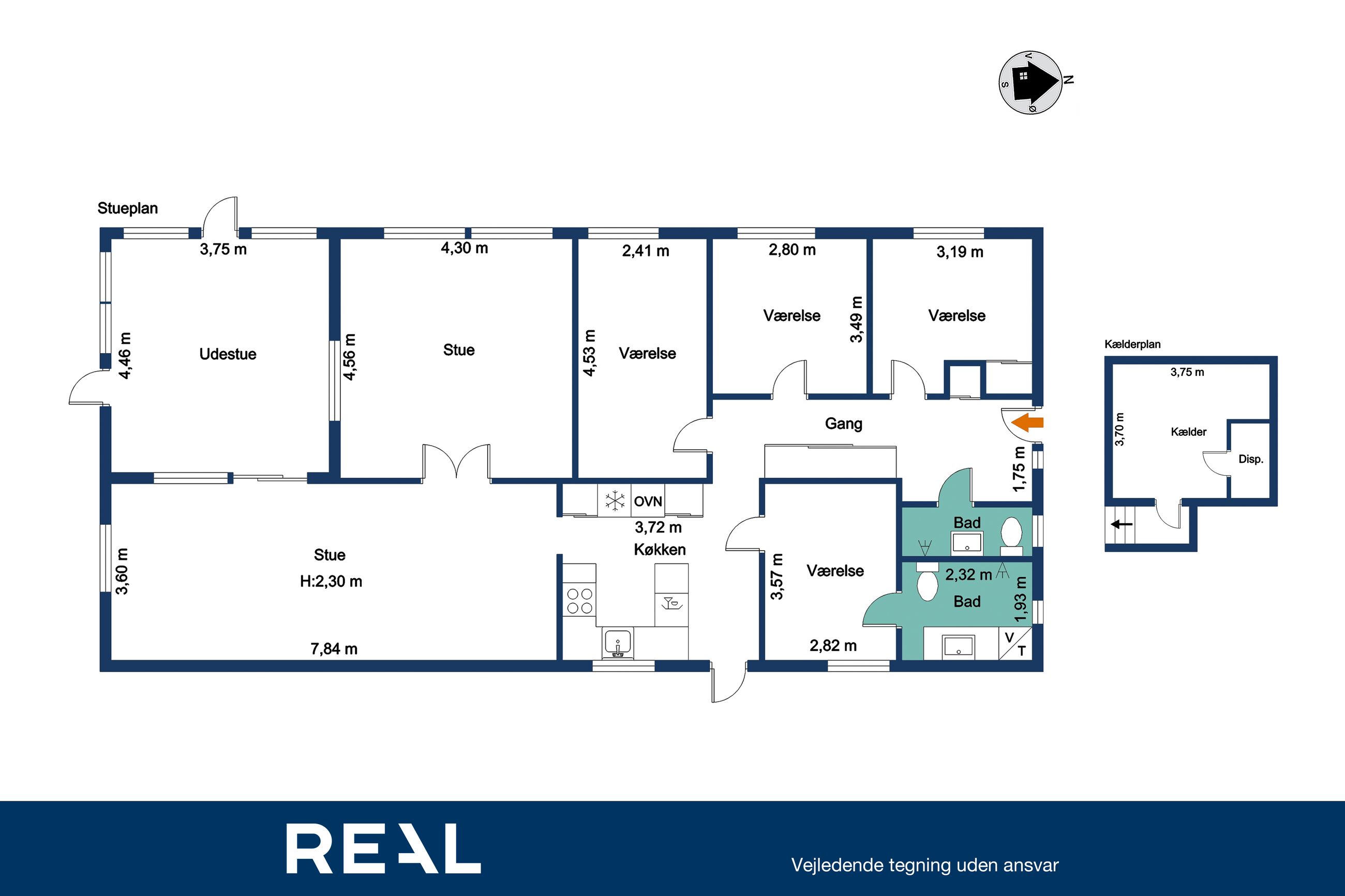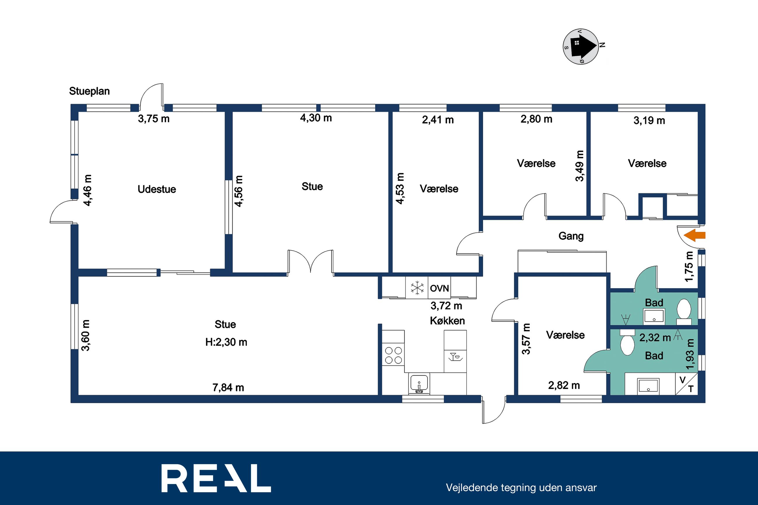 ✔ 4 værelser og 2 badeværelser